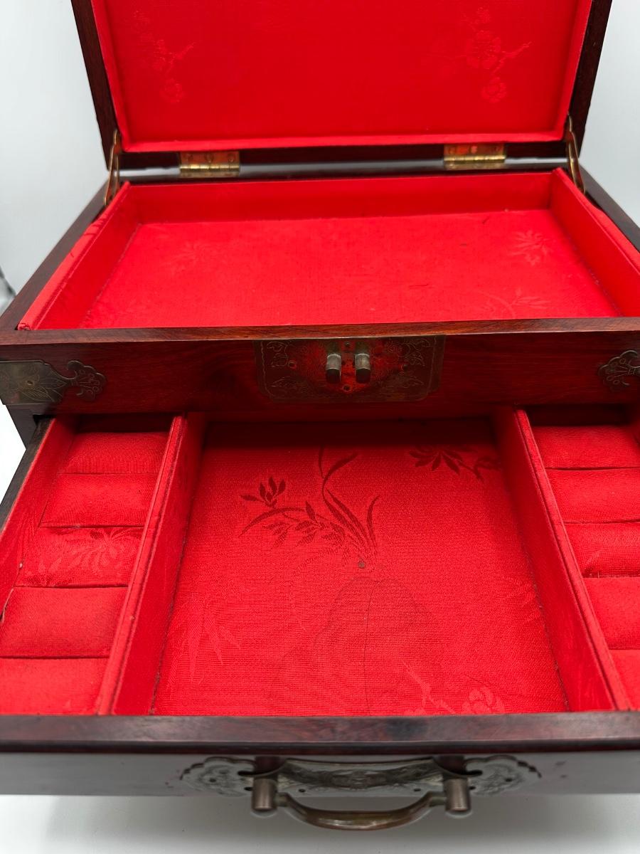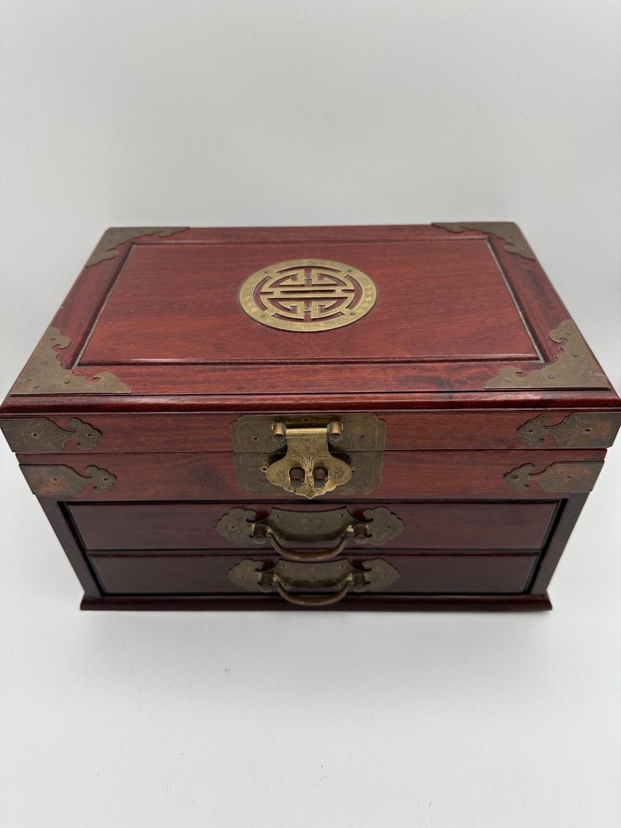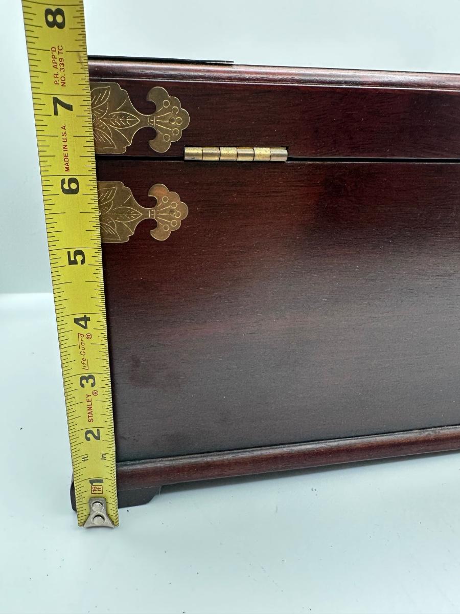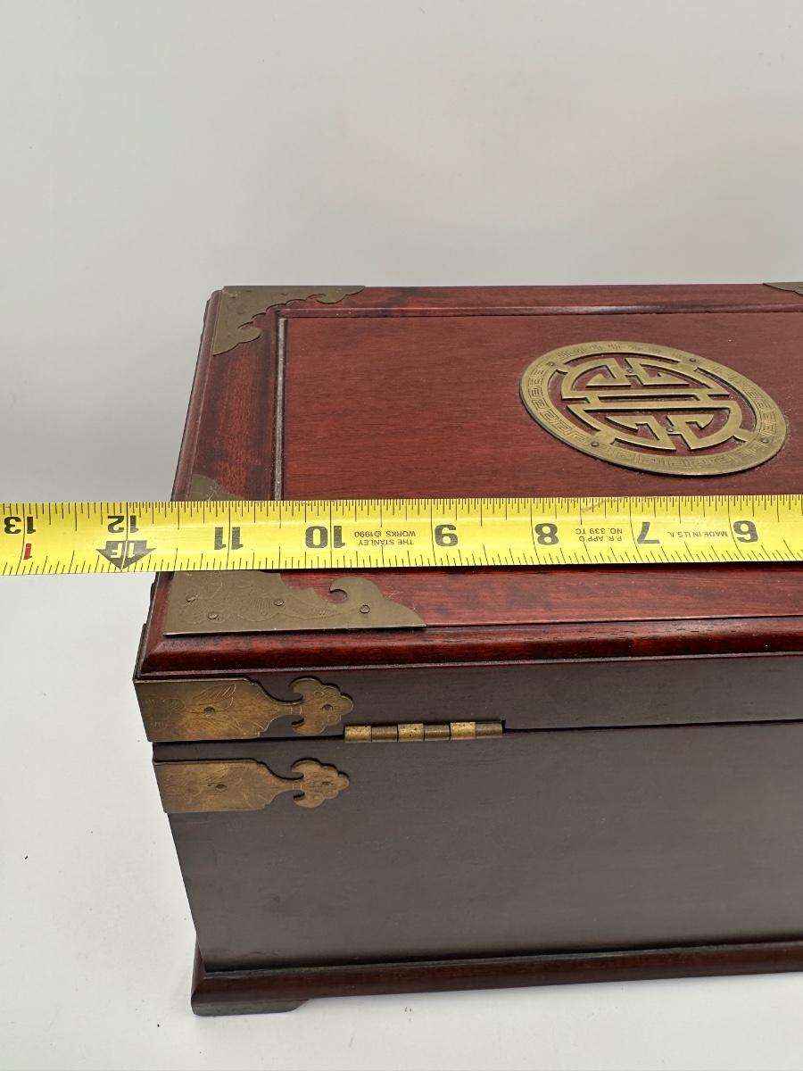 Large Chinese Brass & Wood Jewelry Box (See Details)