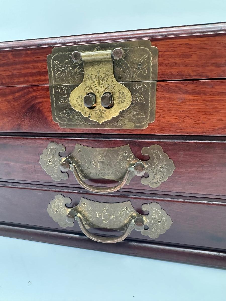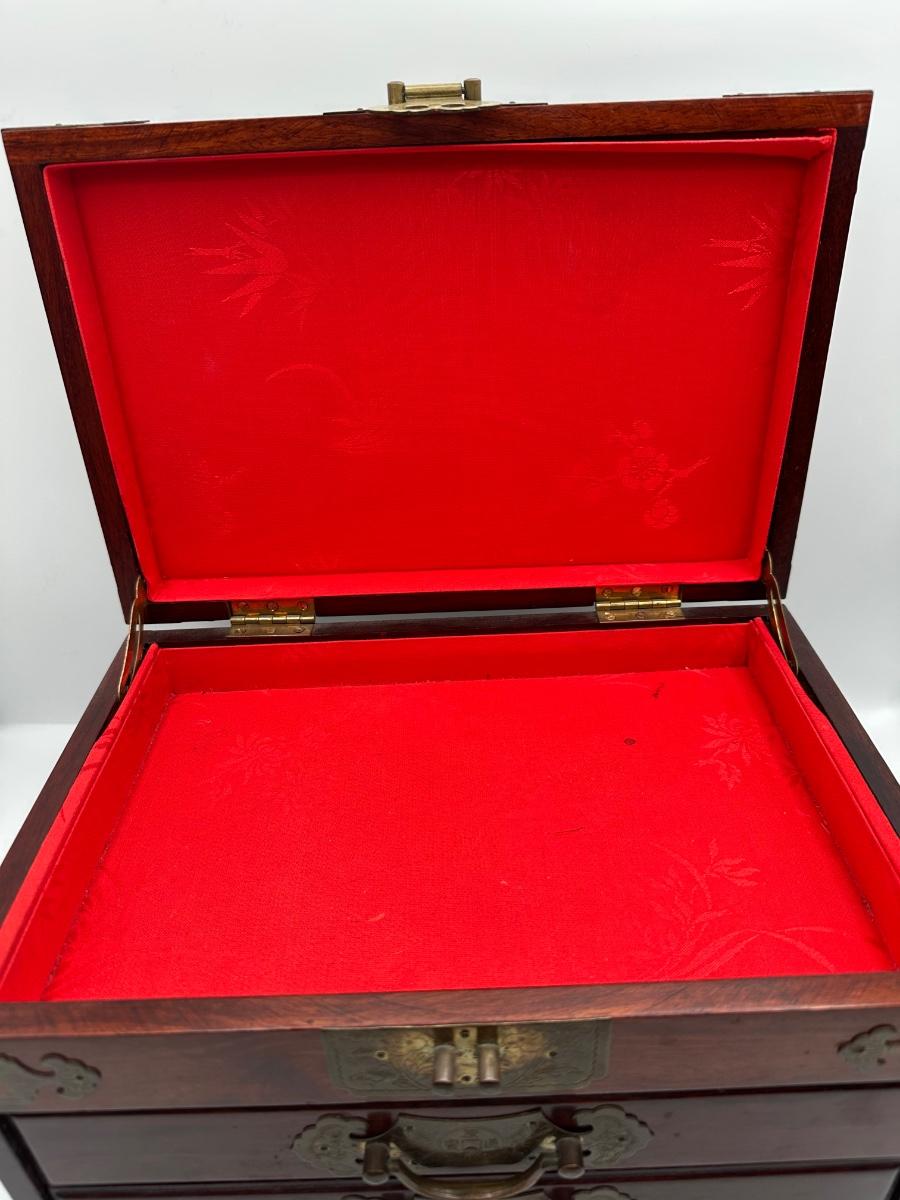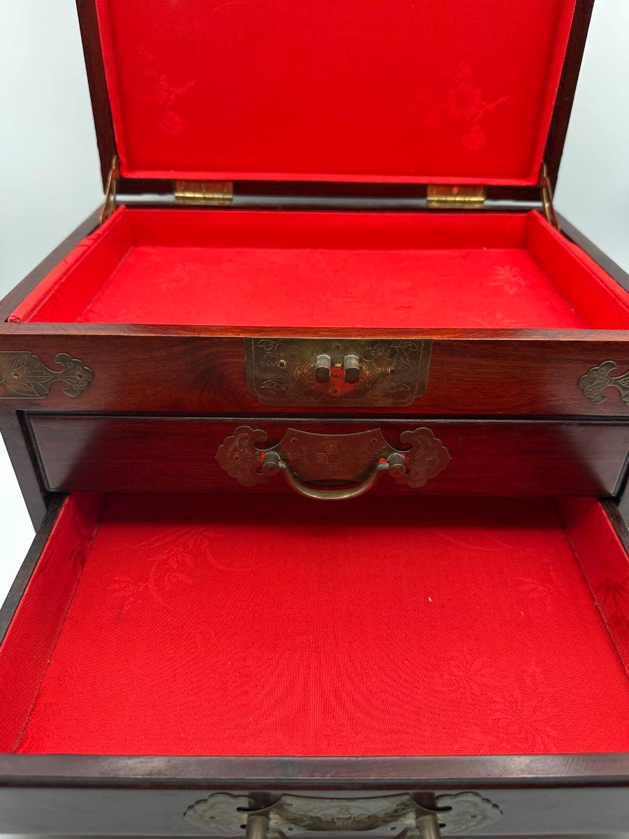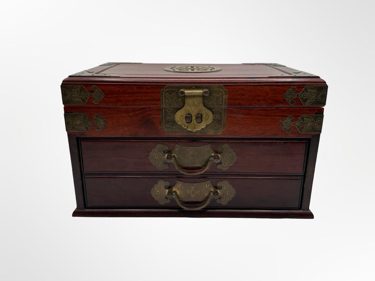 Large Chinese Brass & Wood Jewelry Box (See Details)