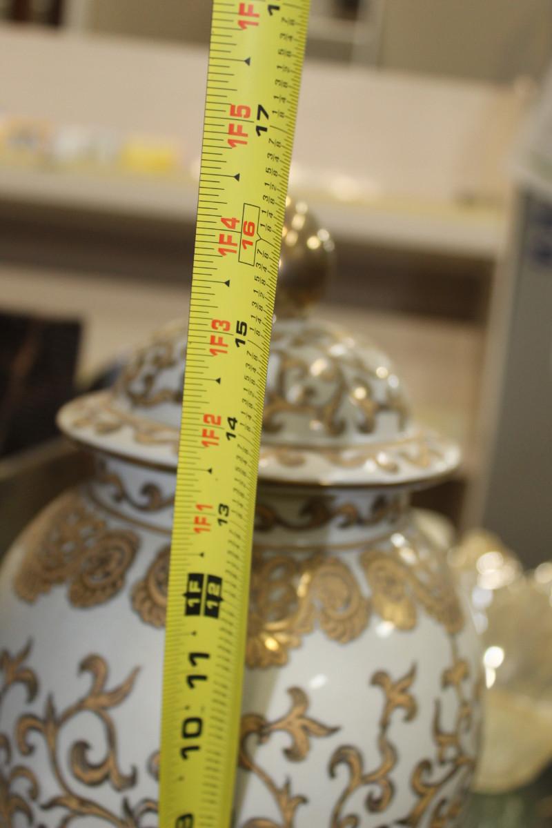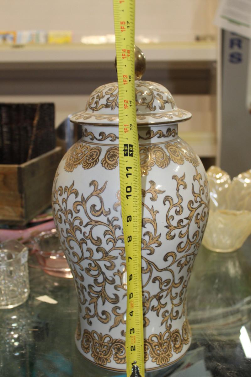 Large Chinese White and Gold Tapestry Porcelain Scalloped Vase