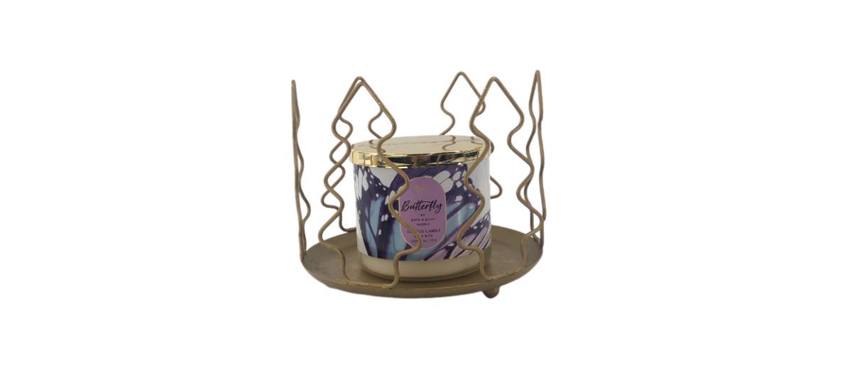 Large gold painted Christmas tree candle holder. Would look great as a centerpiece! Holder measures 7” in diameter and 6” in height. Candle not included.