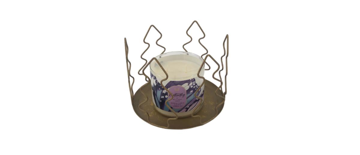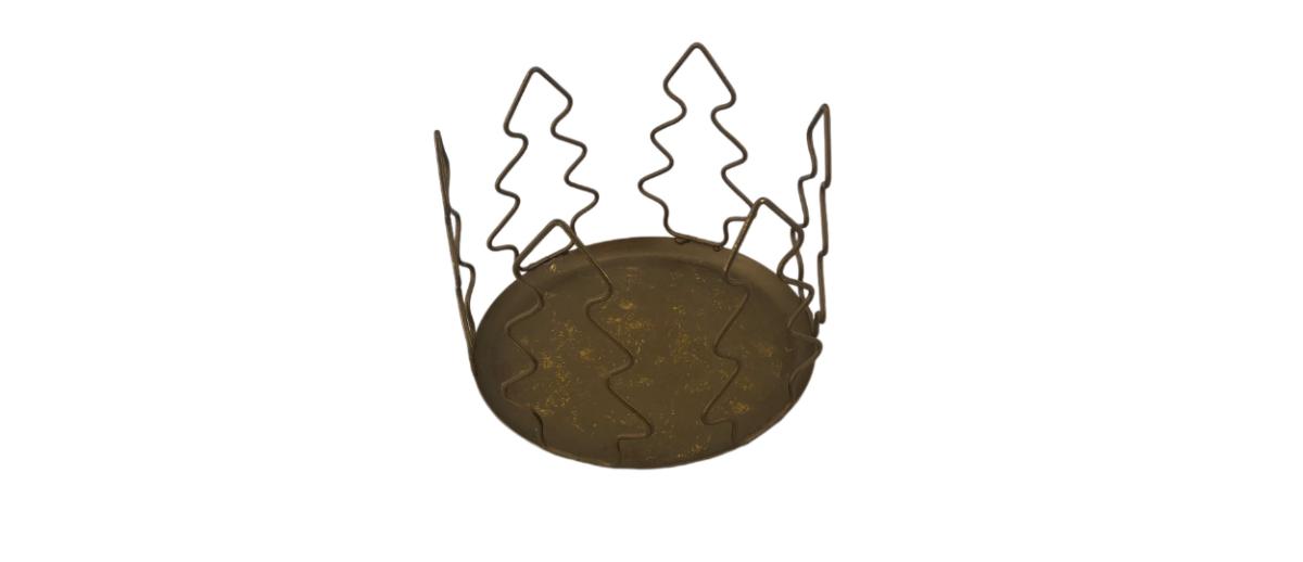 Large gold painted Christmas tree candle holder. Would look great as a centerpiece! Holder measures 7” in diameter and 6” in height. Candle not included.