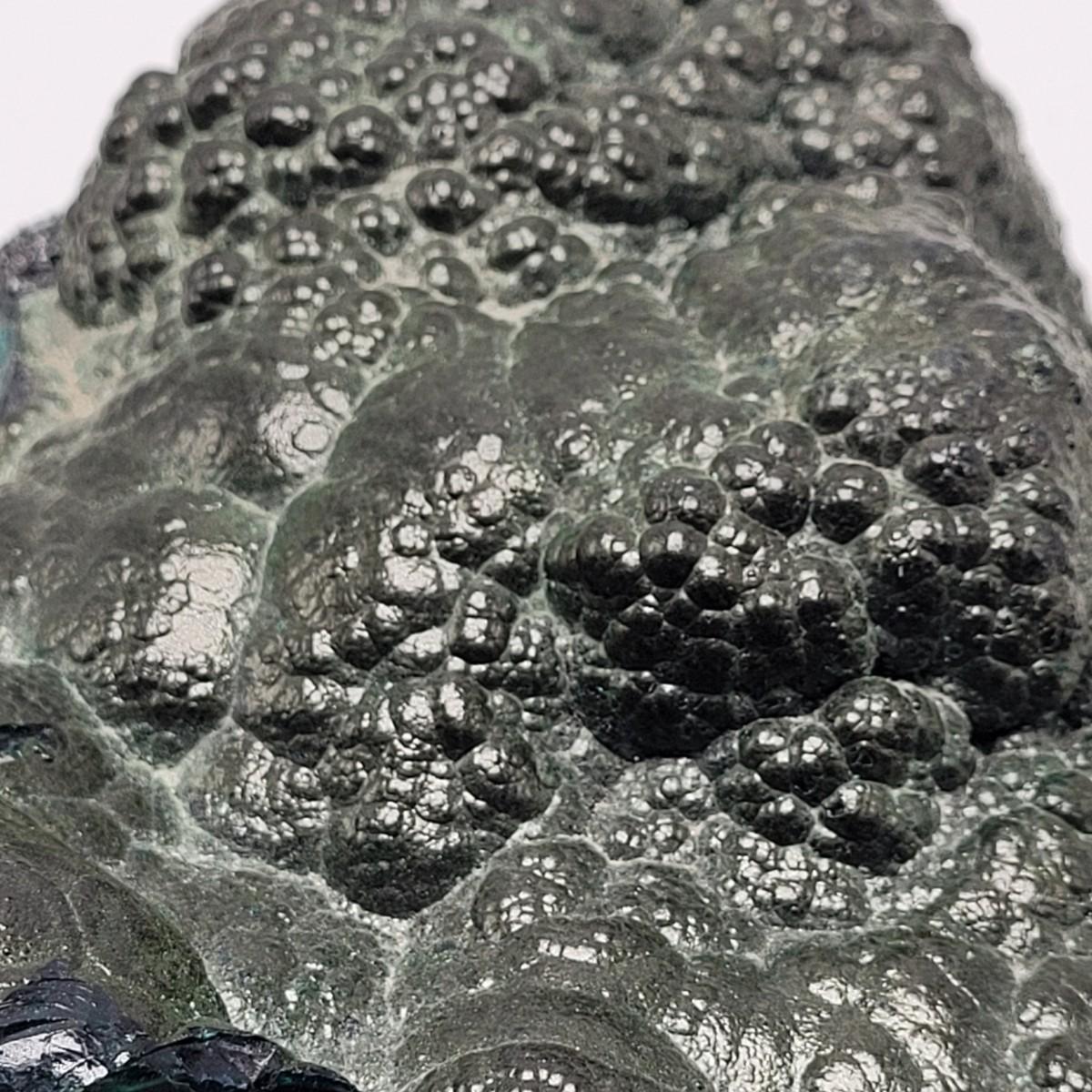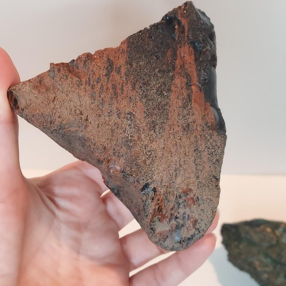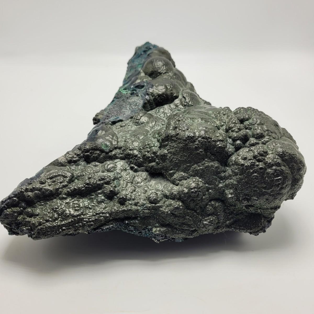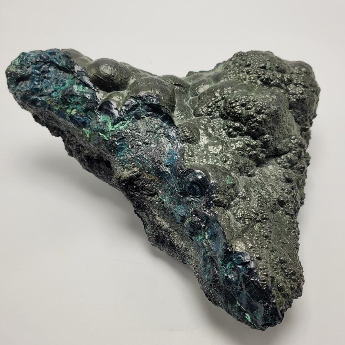 This lot includes one large piece of what appears to be raw malachite. This piece of malachite has a rough and stony side, and a smooth bubbly side. The chunk is large, measuring 10" x 8" x 4.5"H. This piece is not polished and is displayed in its raw and rough form. Also icludes what appears to be a piece of mahogany obsidian. All sales are final. No returns or refunds. Please bid accordingly.
