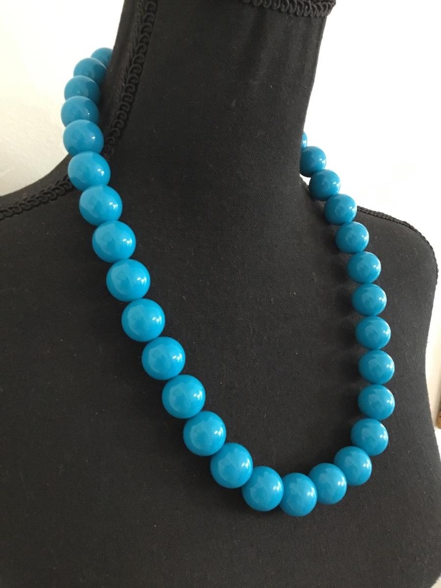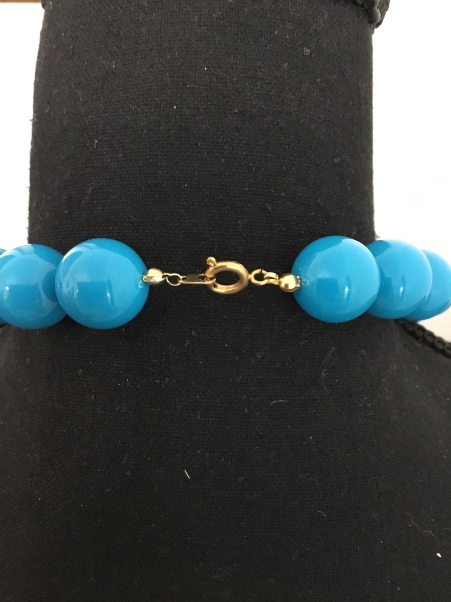Large chunky beautiful blue beaded vintage necklace