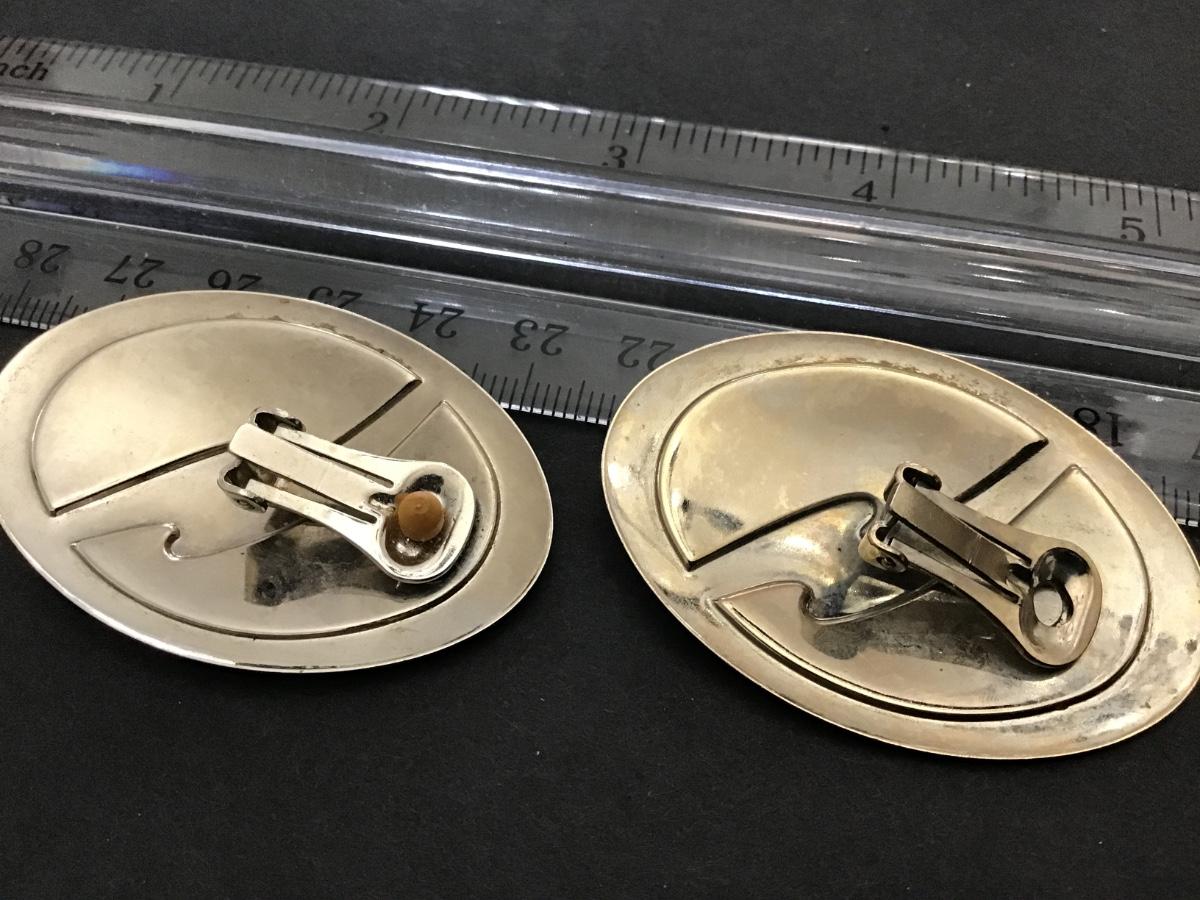 Large Chunky Enamel Earrings with Inlay. Vintage