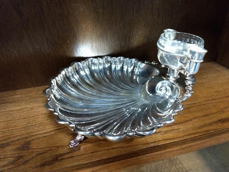 Large Clam Shell Shellfish Seving Platter complete with condiment dish and toothpick holders