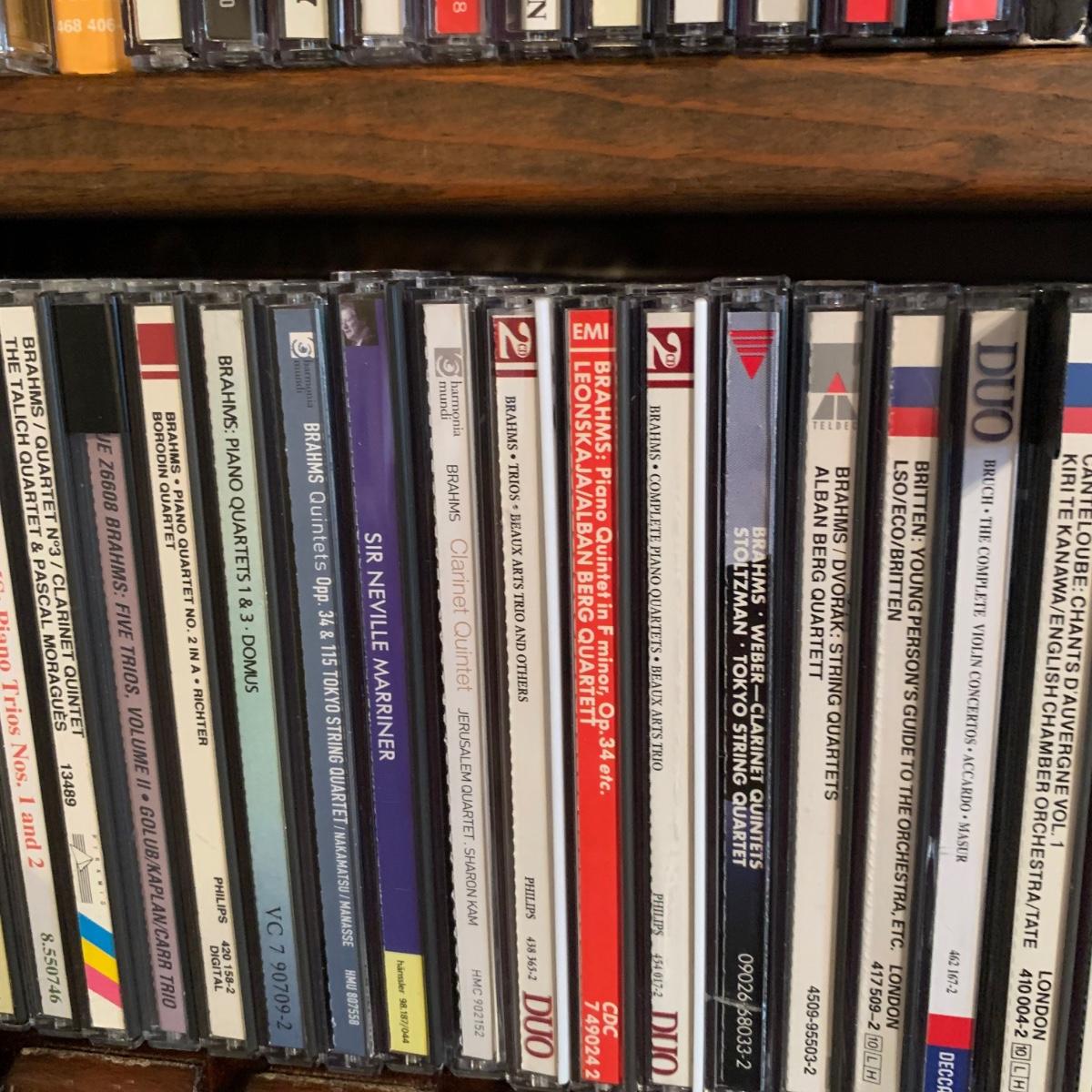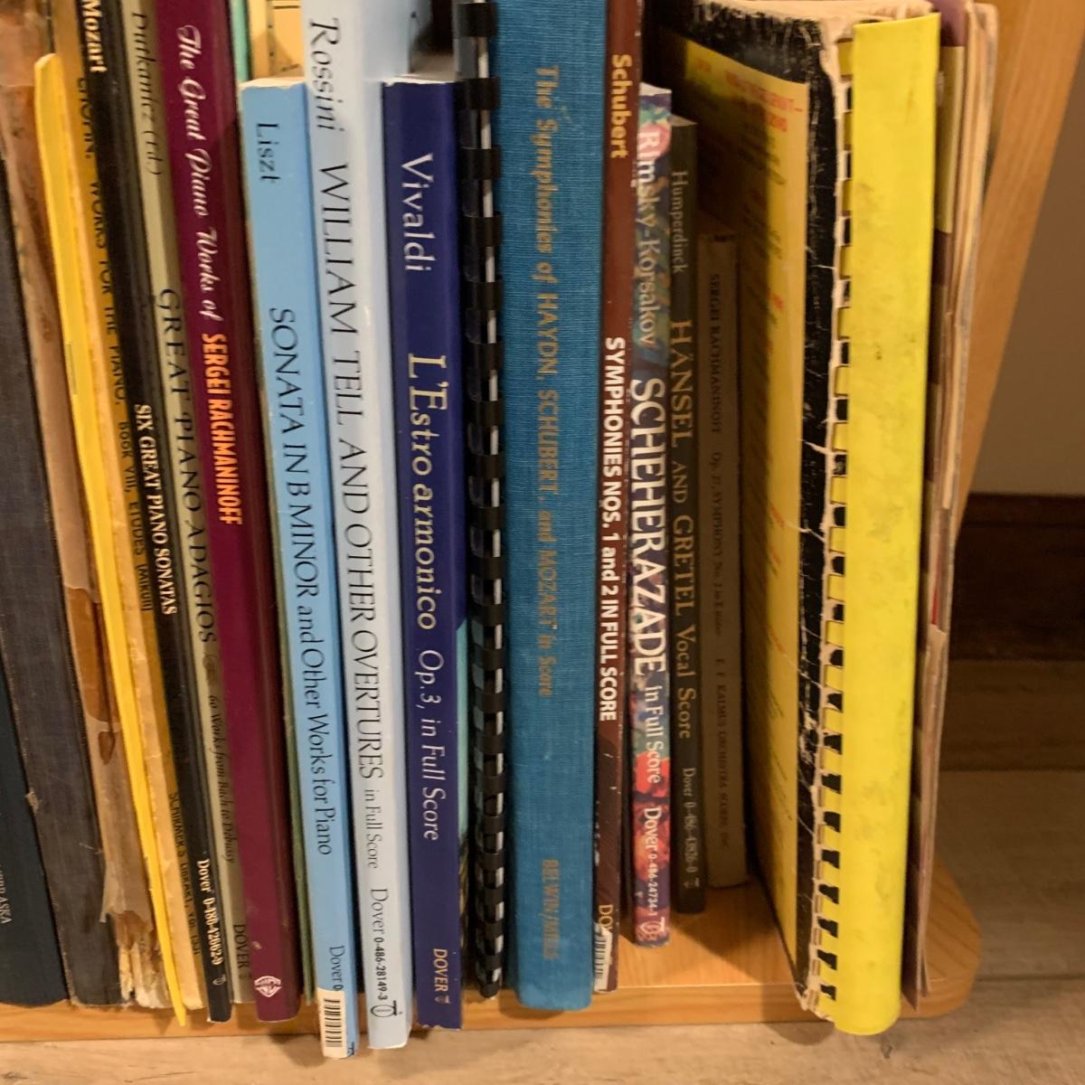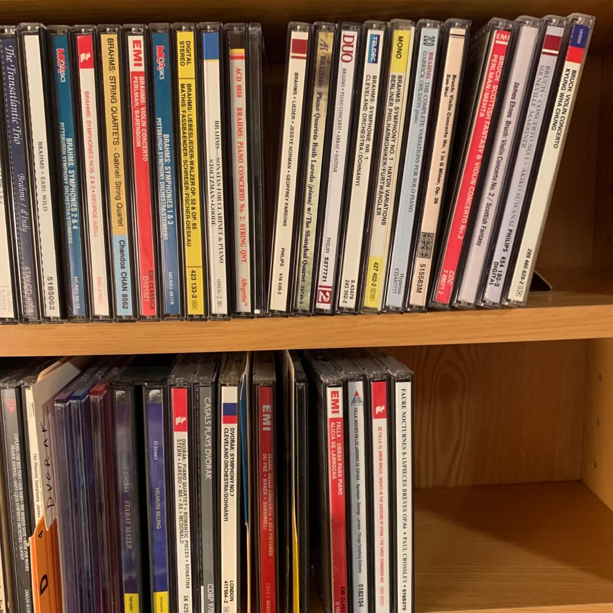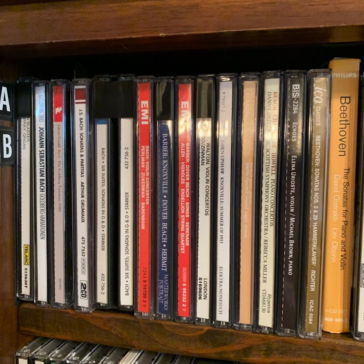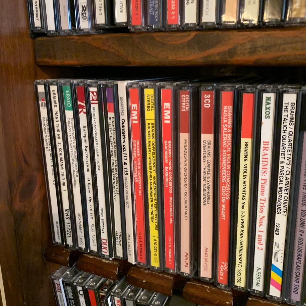 All things classical music! This lot includes over 750 CDs, 14 records, and more than 50 books. All items are music related, with most being classical. Due to the volume, we cannot guarantee that every jewel case contains a CD or the proper CD. CD rack made from manufactured wood is included as well. Case has 16 adjustable shelves and is 43.25” x 9.75” (at base) x 63.5”H. Two extra shelves are included as well. Please see photos for inventory and details.