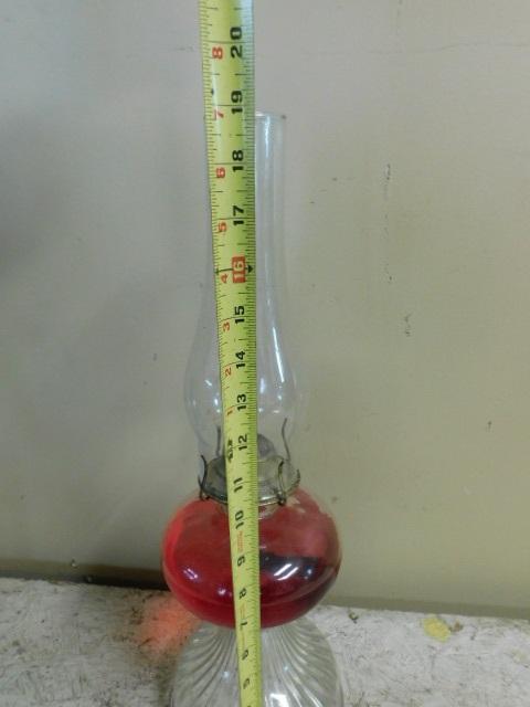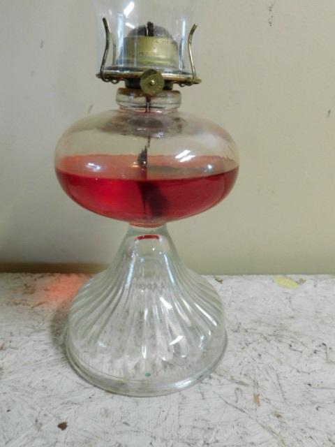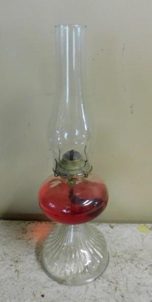 Large Clear Glass Wide Belly Pedestal Oil Lamp (Red Oil) 12" Body