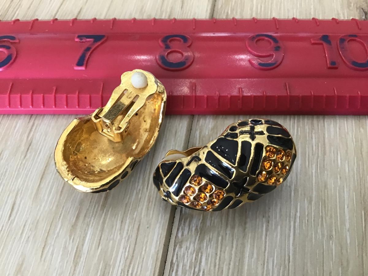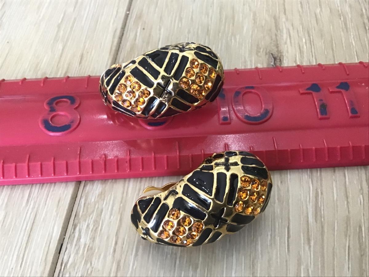 Large Clip on earrings Enamel and Rhinestone