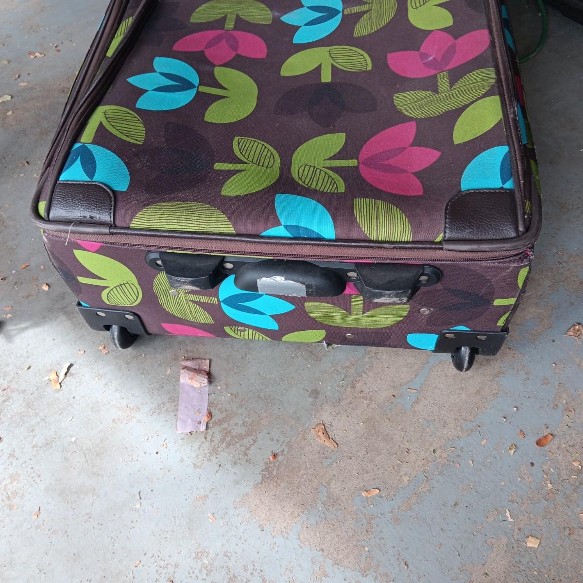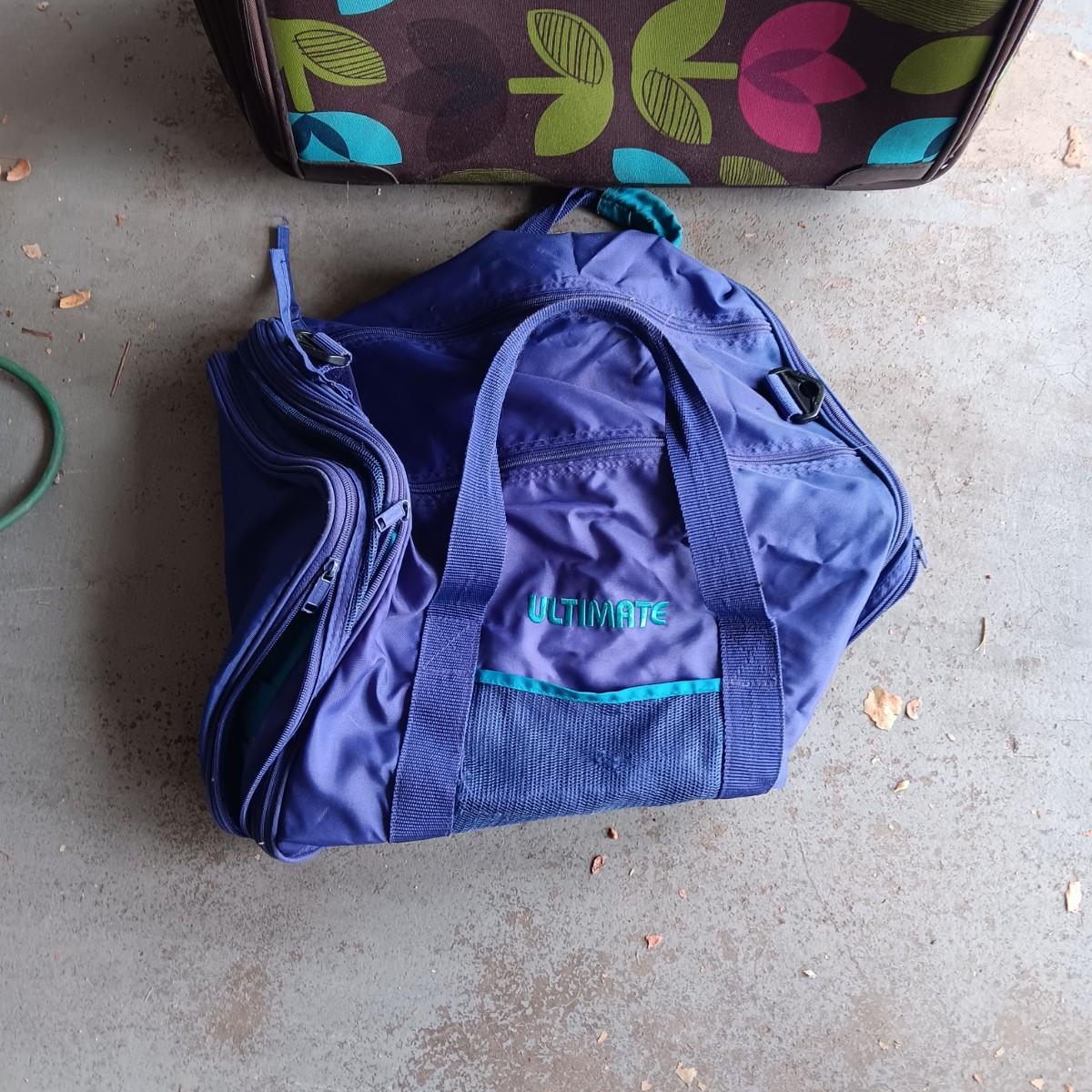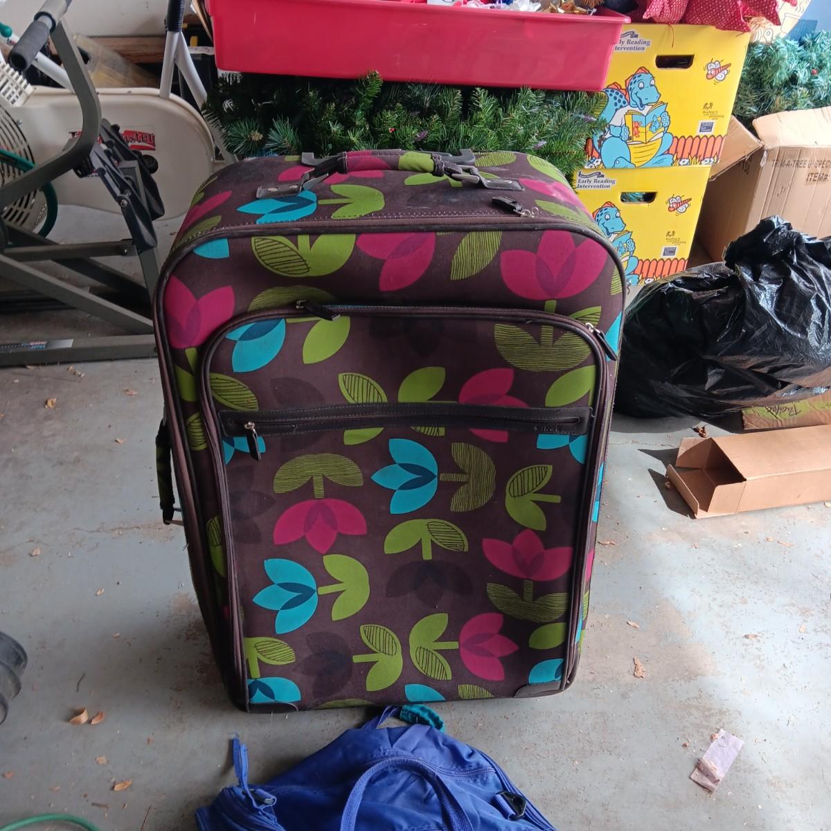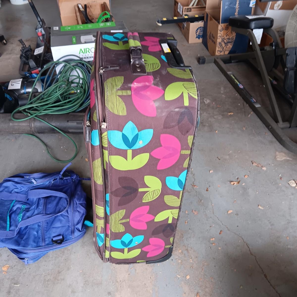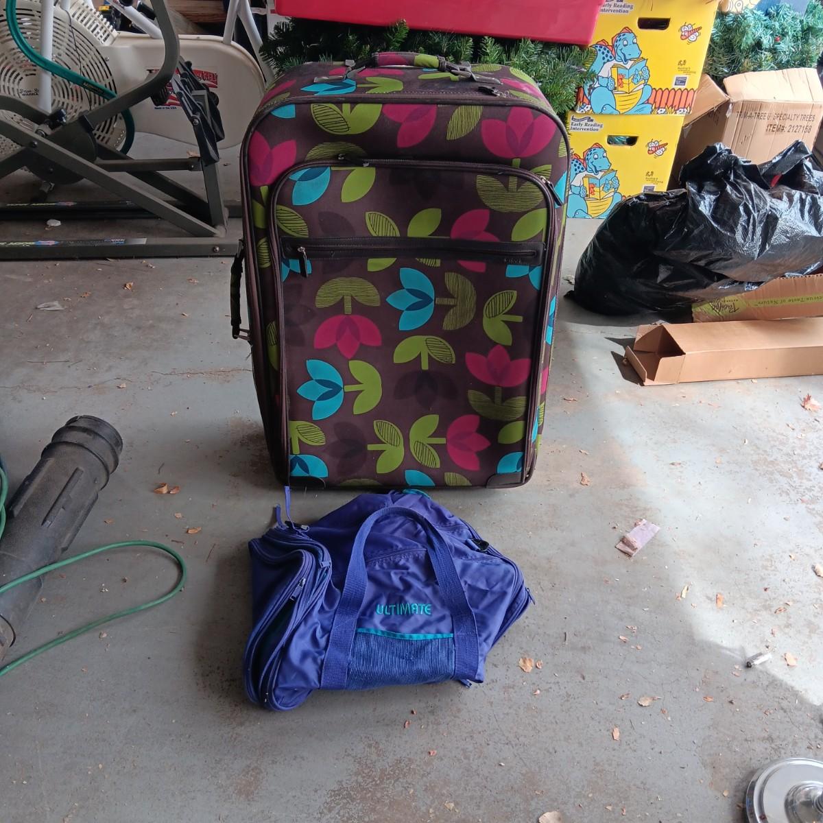 LARGE CLOTH SUITCASE ON 2 WHEELS AND A SMALLER DUFFLE BAG