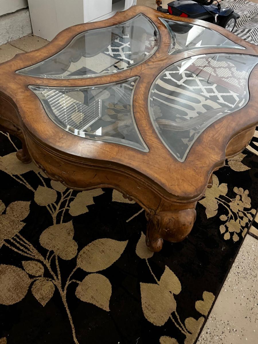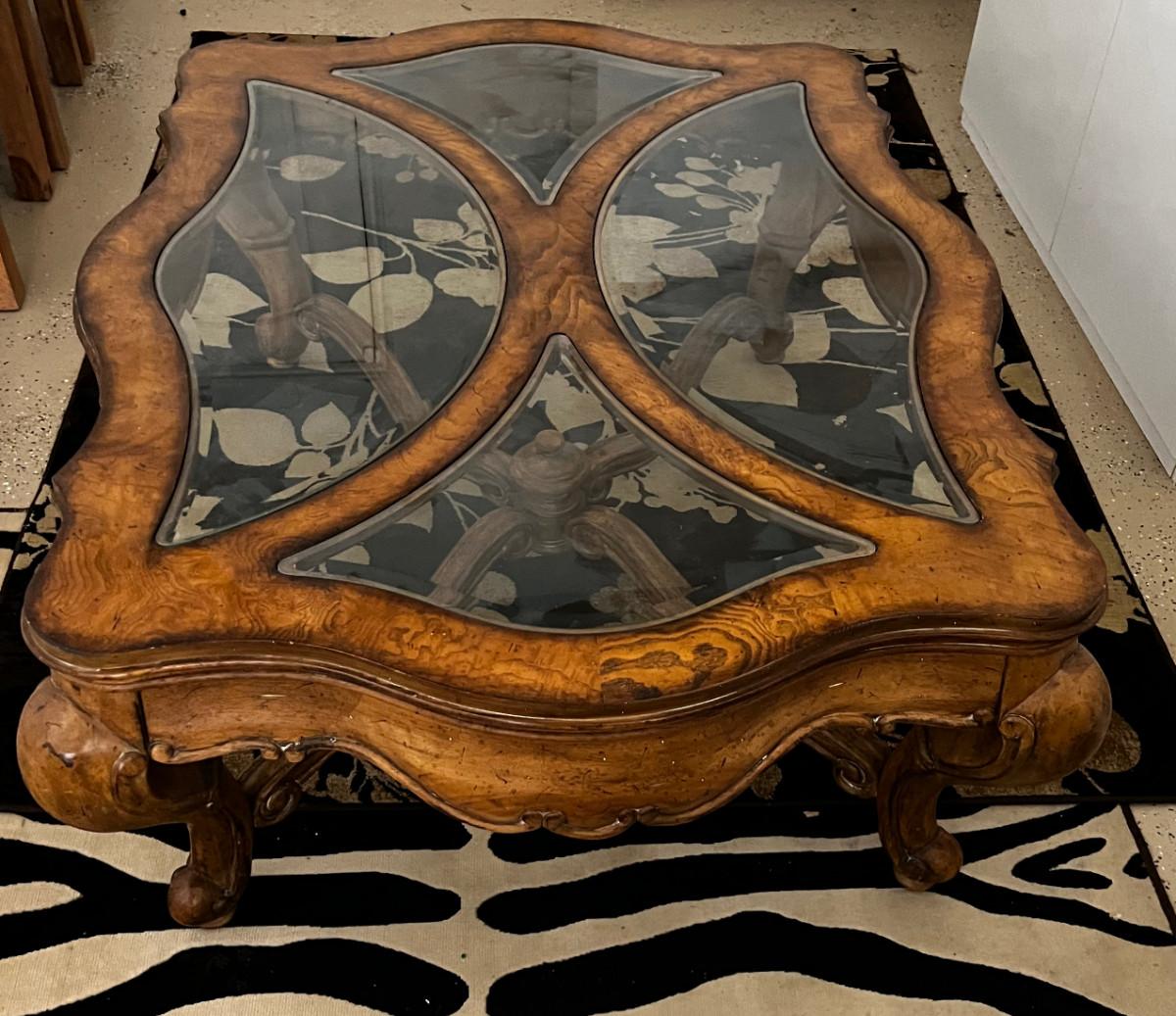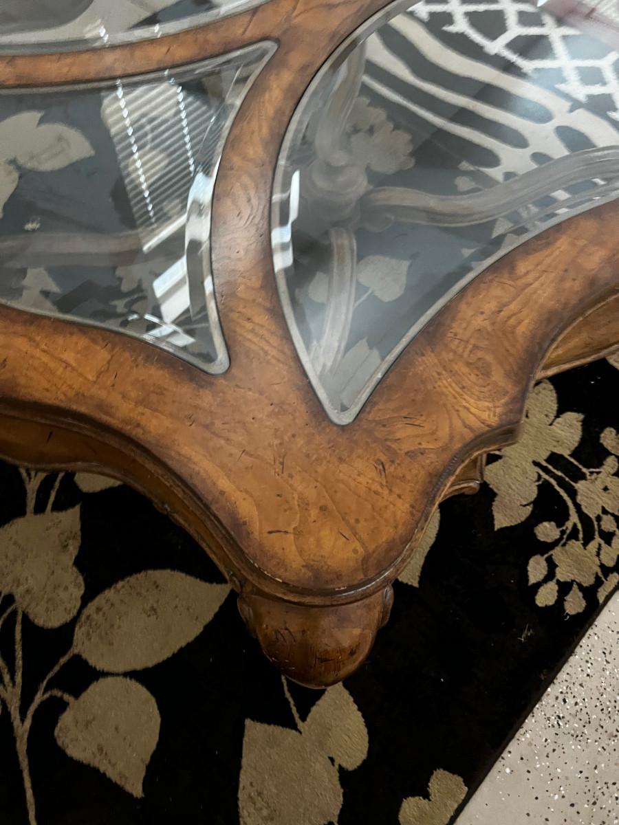 Large Coffee Table, Cabrio Leg French Provincial Fruit Wood