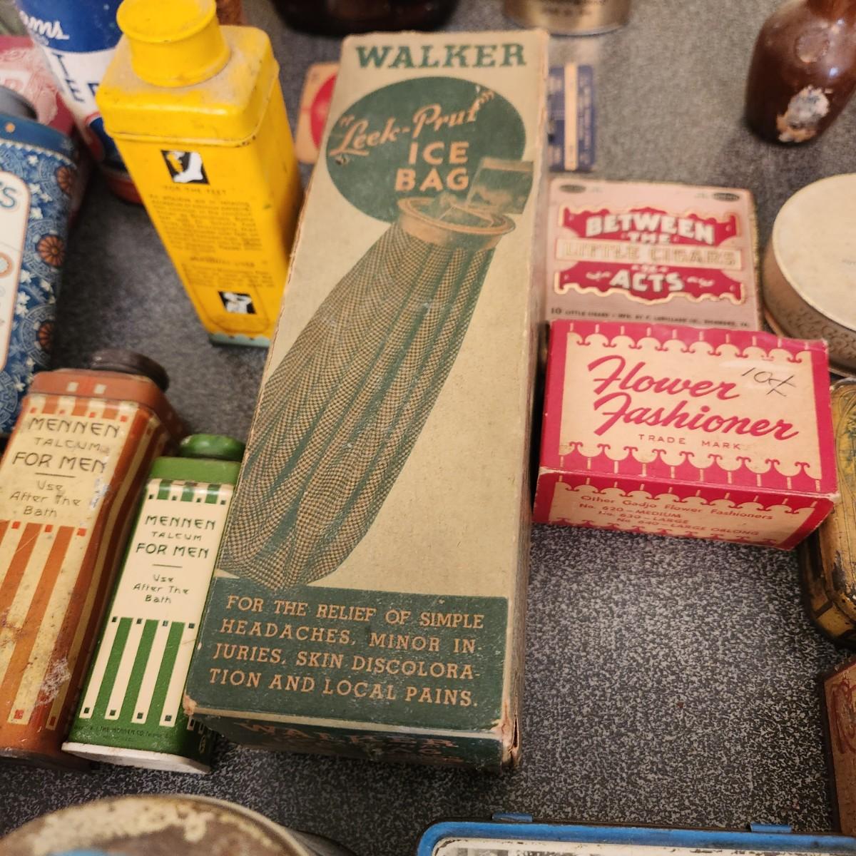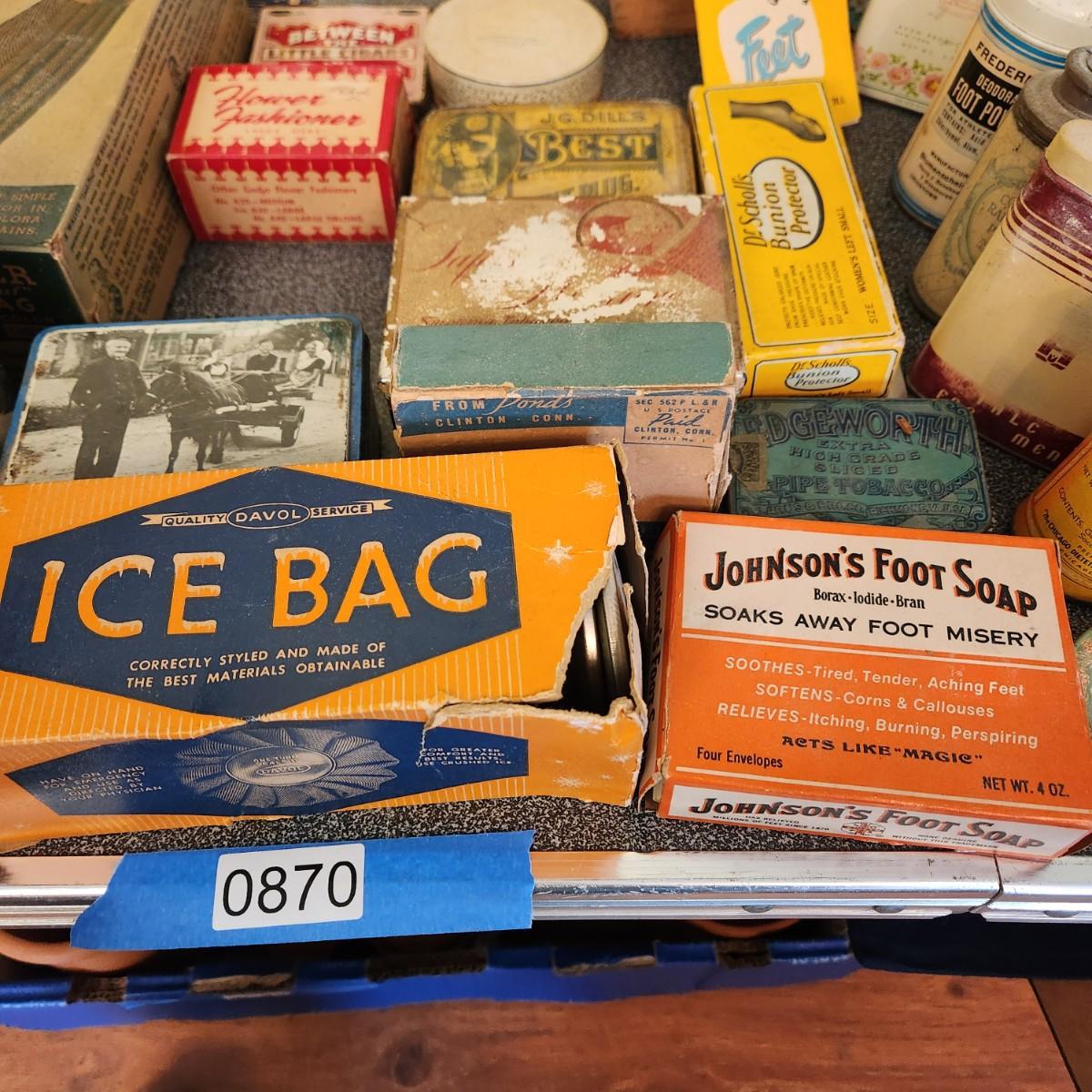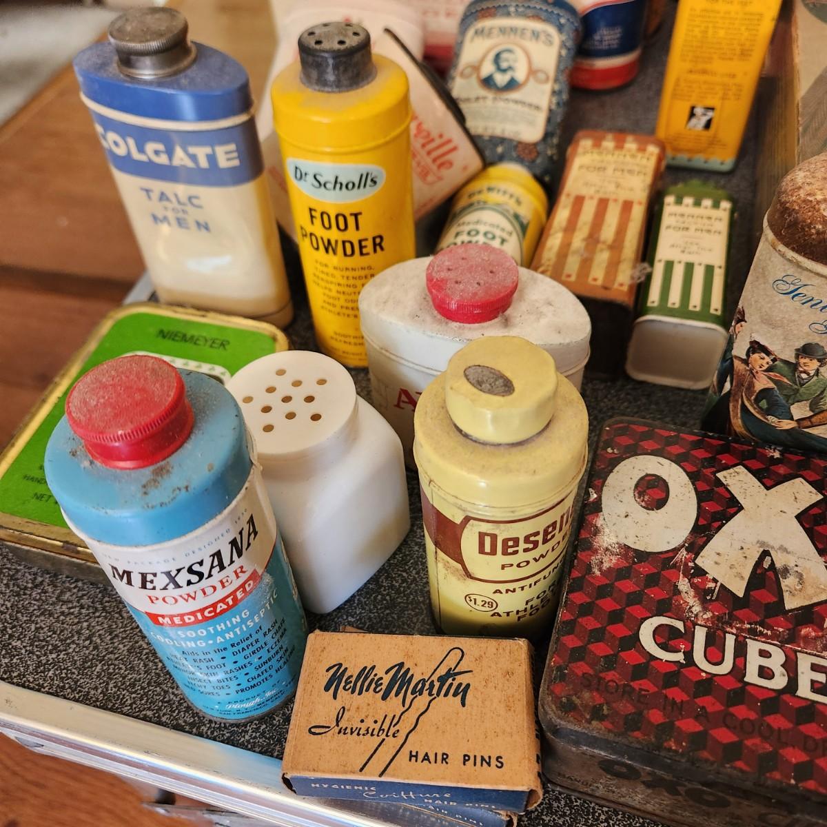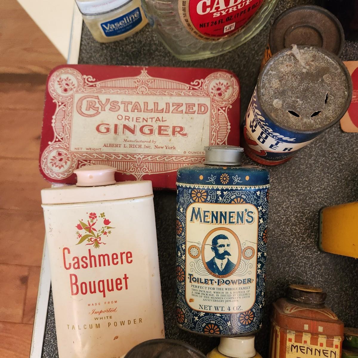 , Large Collectable Lot, Log Cabin, Powders, Ice bags, Dr Scholls , Ginger, Mennen's and More