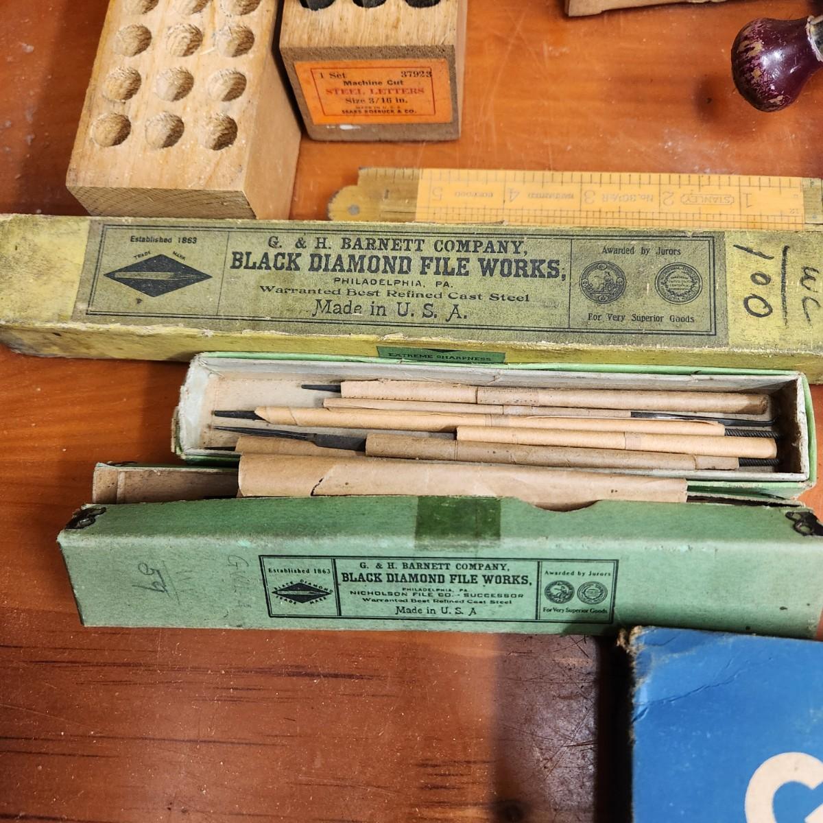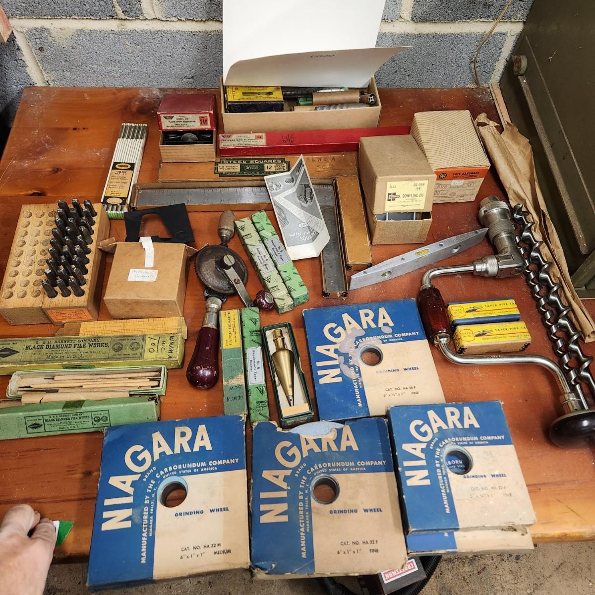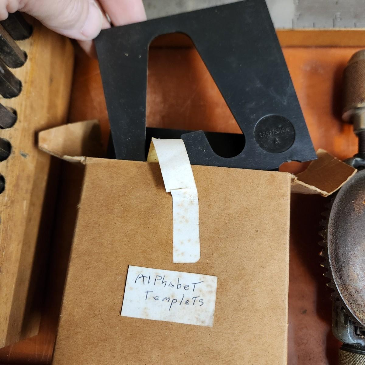 Large Collectible Vintage Tool Lot Miller, Irwin, Stanley K&E Machine Cut Steel letters, Craftsman Router Stencil Set