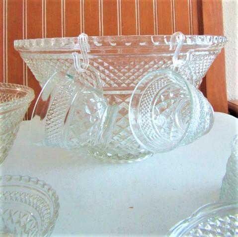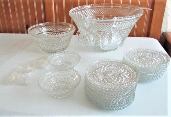 Large Collection Entertainment Set Punch Bowl and Cups, Dessert Plates, Mint Bowls, Centerpiece Bowl, Hooks 36pcs