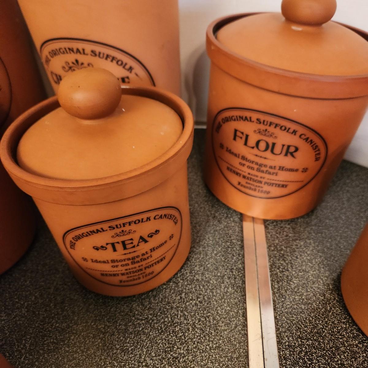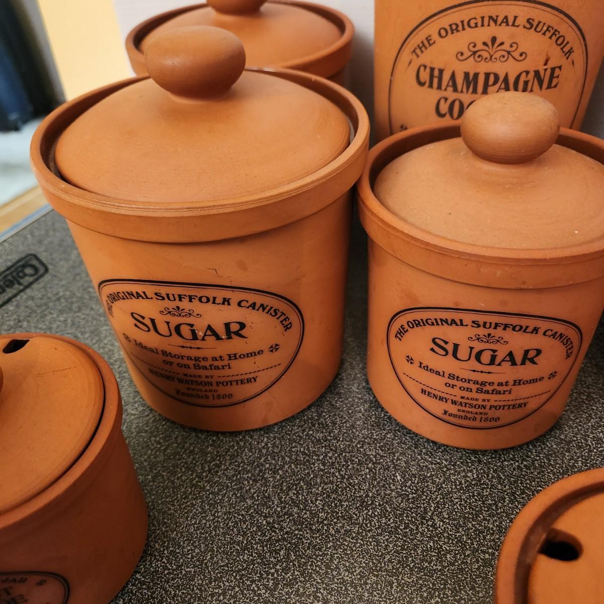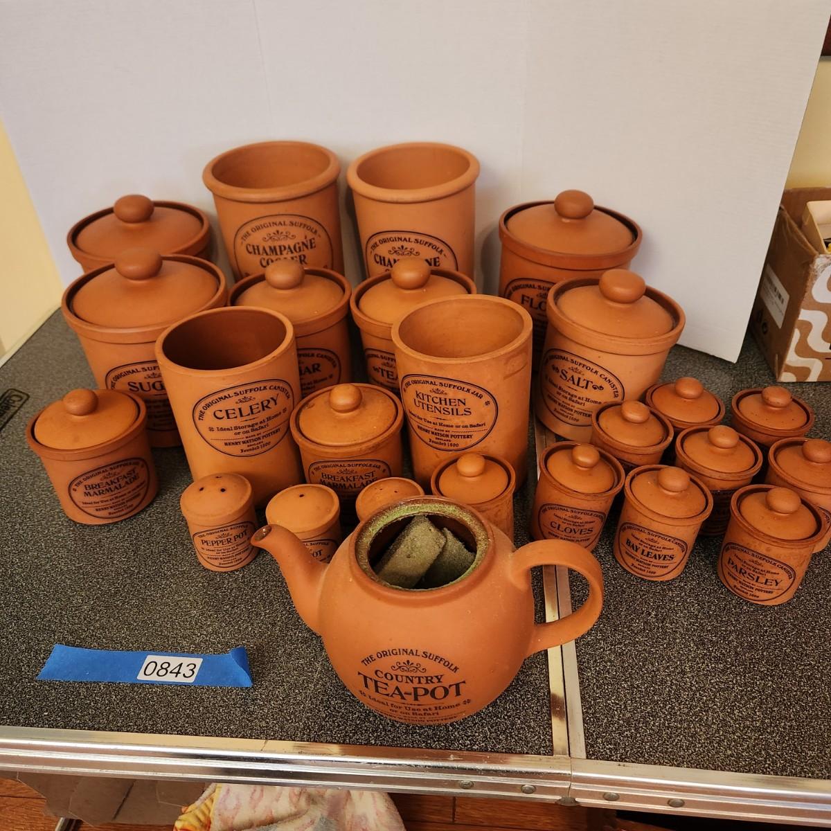 Large collection Henry Watson Pottery Terracotta Spices Flour Sugar Tea Salt Pepper