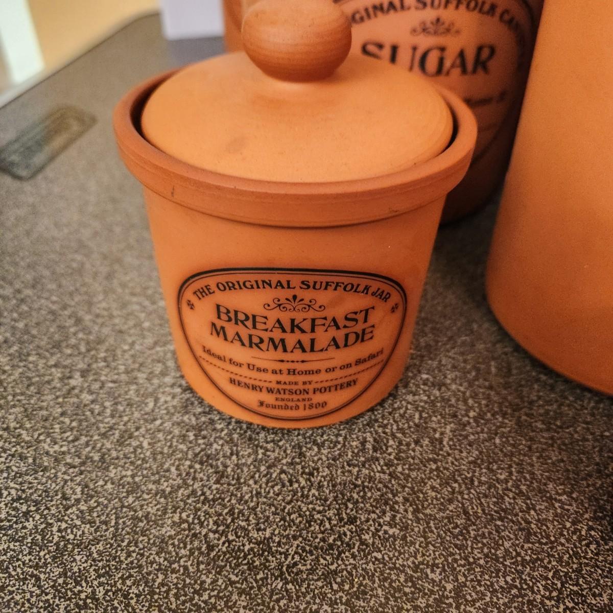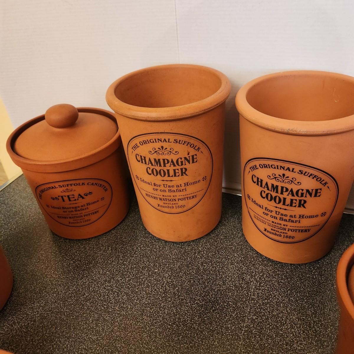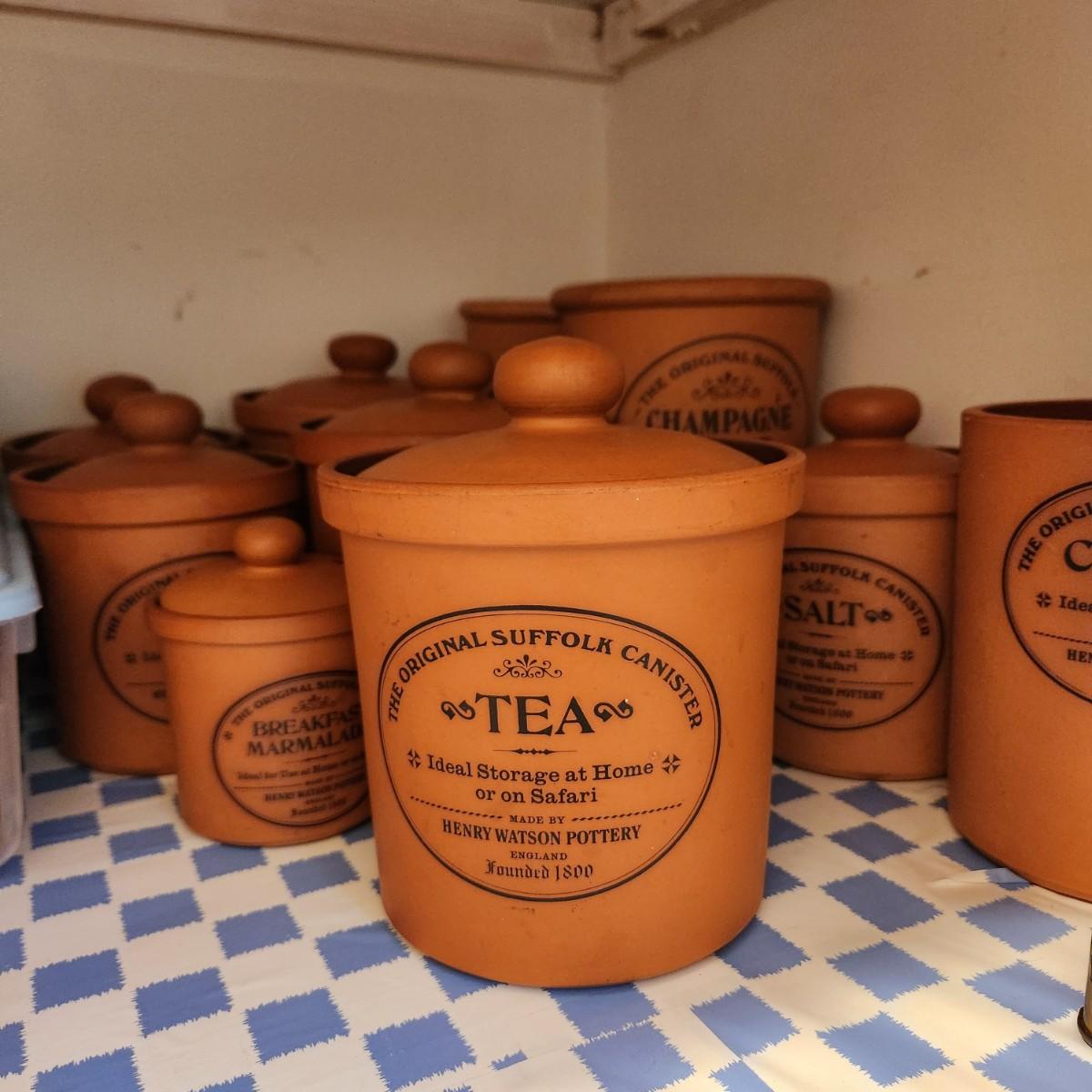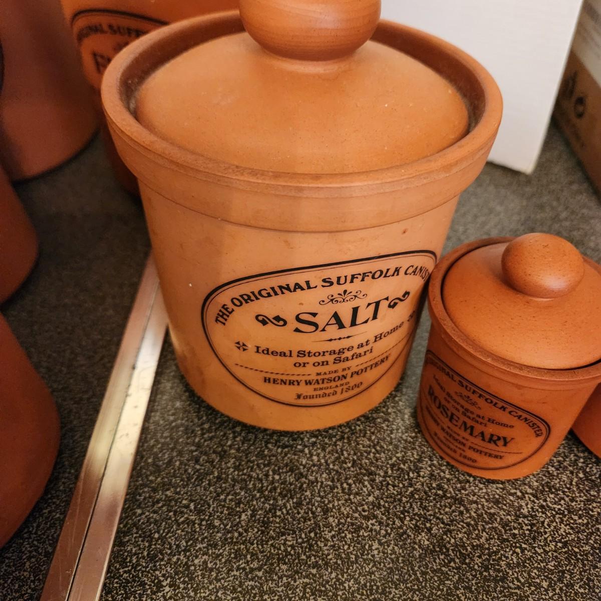 Large collection Henry Watson Pottery Terracotta Spices Flour Sugar Tea Salt Pepper