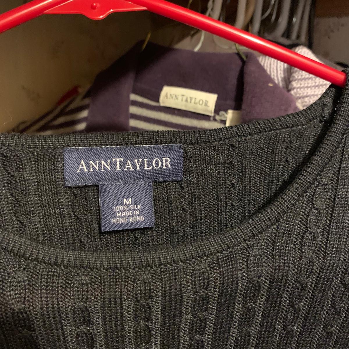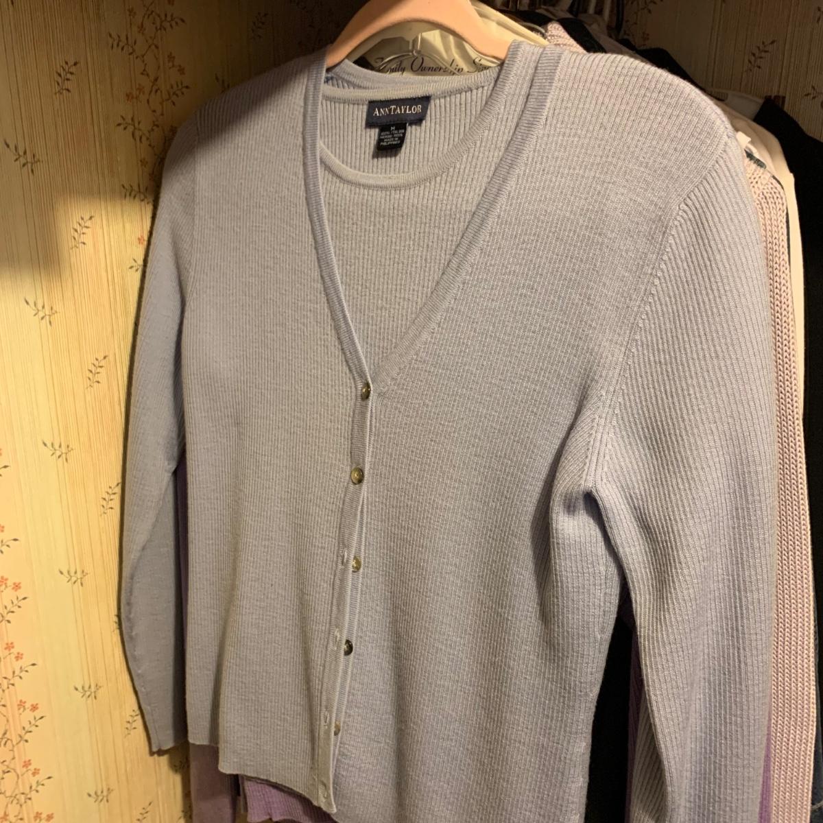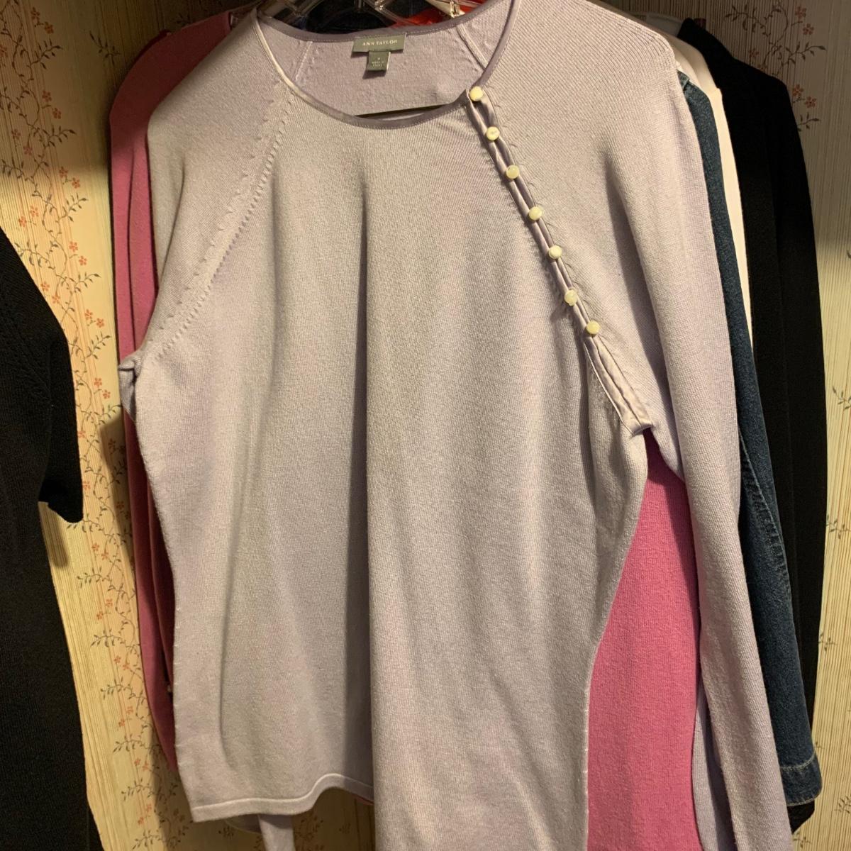 More than 40 Ann Taylor tops. Most long sleeved, a few short sleeved or sleeveless. Some 100% Italian Merino wool sweaters. Some 100% silk. Some 100% linen. Some 100% cotton. Some denim shirts. A few shirt/sweater sets. A handful of white and black cotton knit tops. One velvet button down. And more! See photos for the entire collection. Nearly everything is in excellent condition. A small stain is seen on one of the white cotton tops and a small hole was found on the sleeve one of the merino wool sweaters (see pictures). Local pickup only.