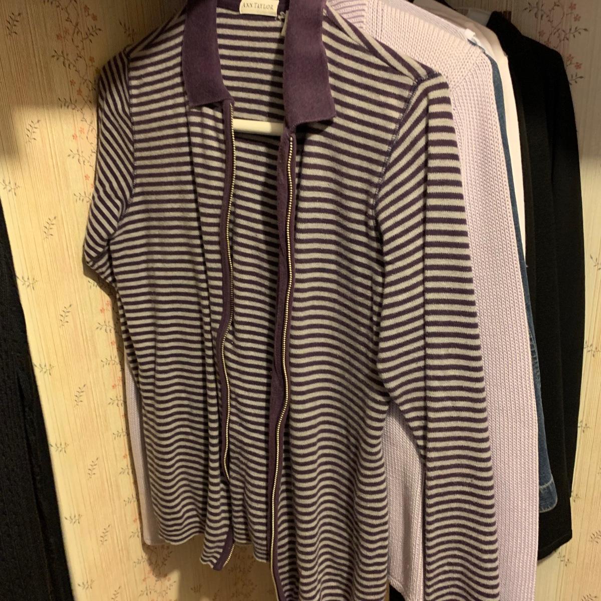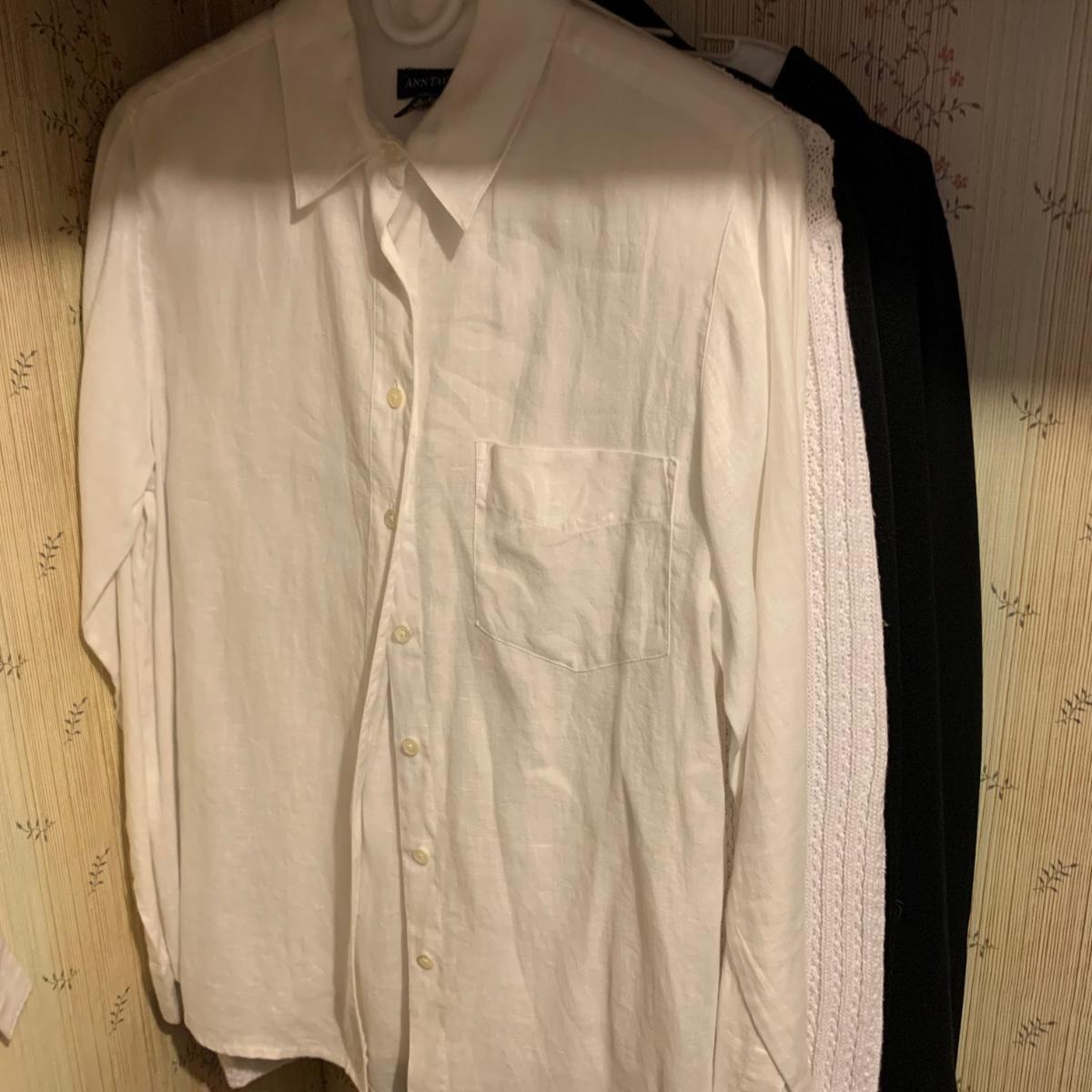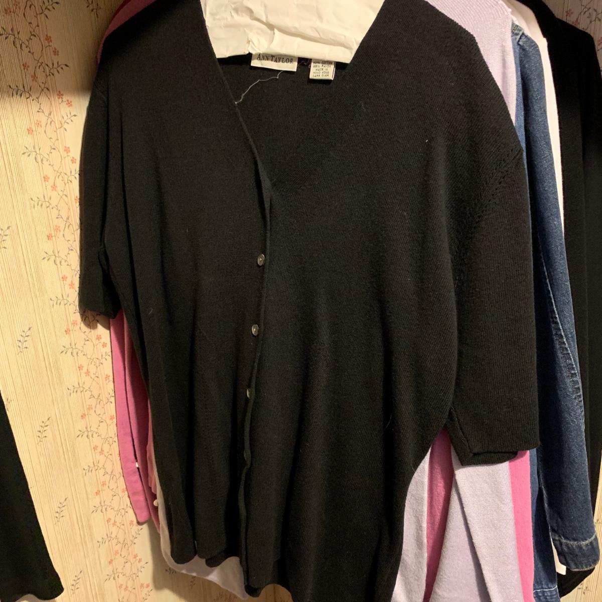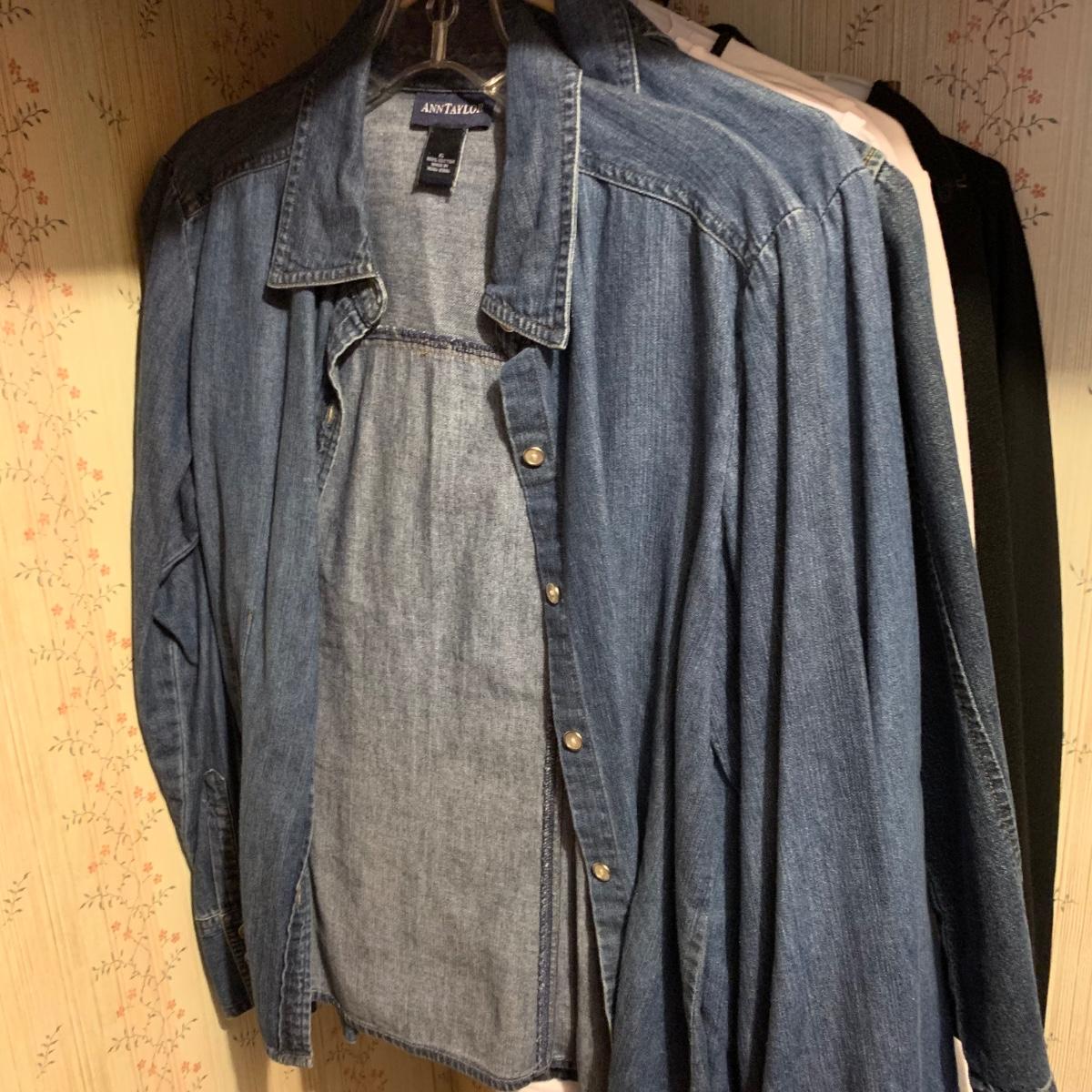 More than 40 Ann Taylor tops. Most long sleeved, a few short sleeved or sleeveless. Some 100% Italian Merino wool sweaters. Some 100% silk. Some 100% linen. Some 100% cotton. Some denim shirts. A few shirt/sweater sets. A handful of white and black cotton knit tops. One velvet button down. And more! See photos for the entire collection. Nearly everything is in excellent condition. A small stain is seen on one of the white cotton tops and a small hole was found on the sleeve one of the merino wool sweaters (see pictures). Local pickup only.