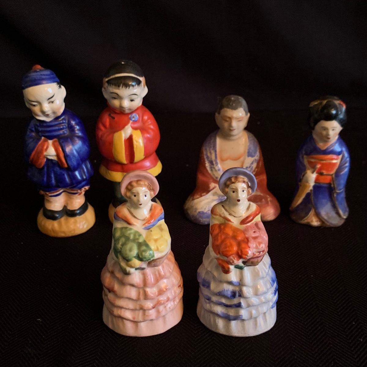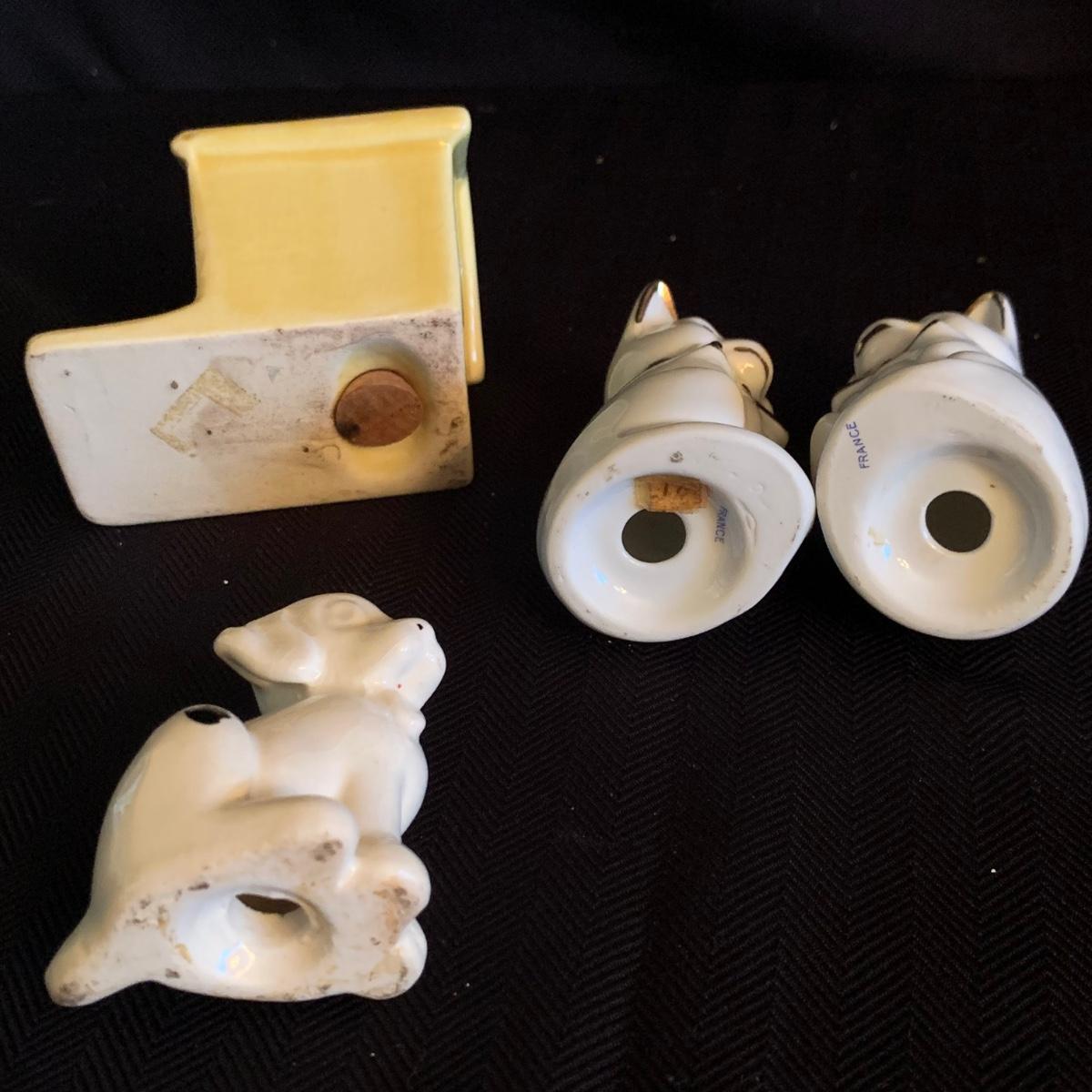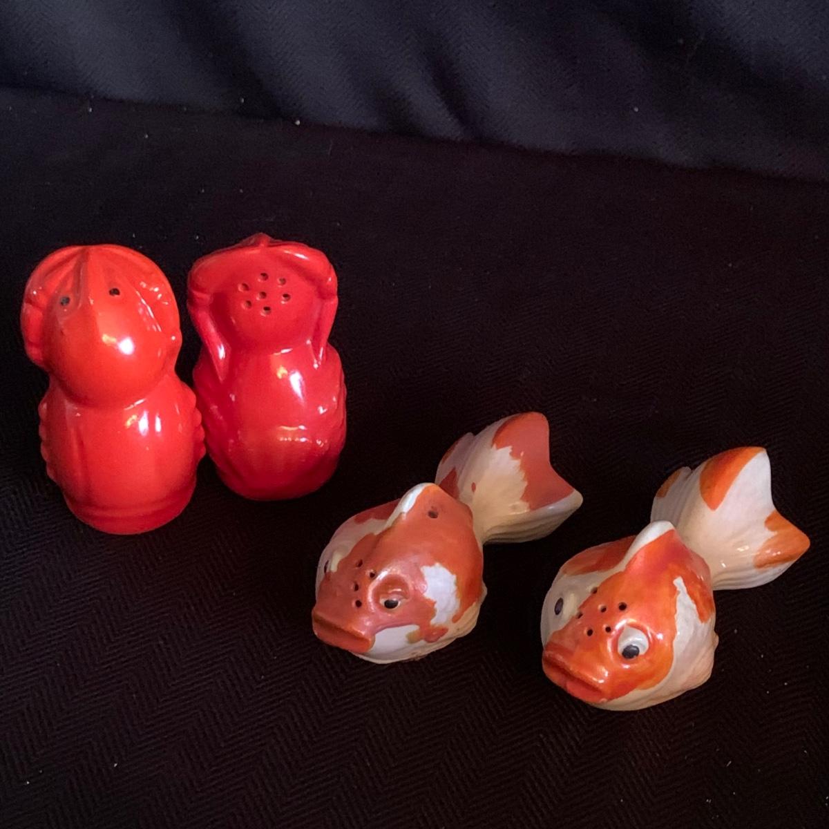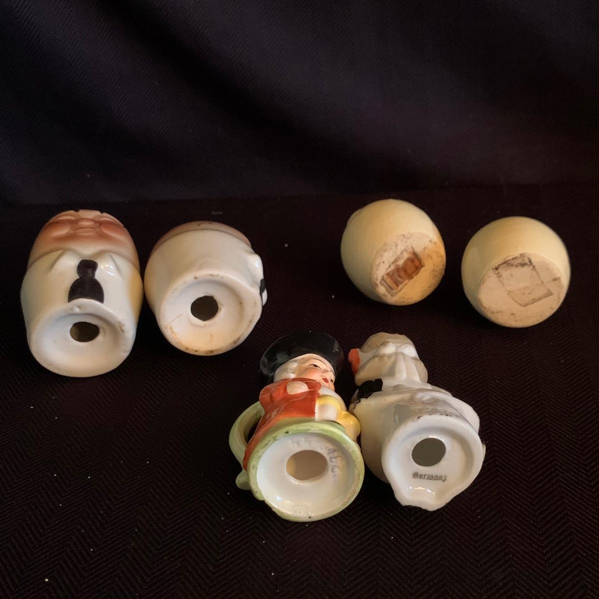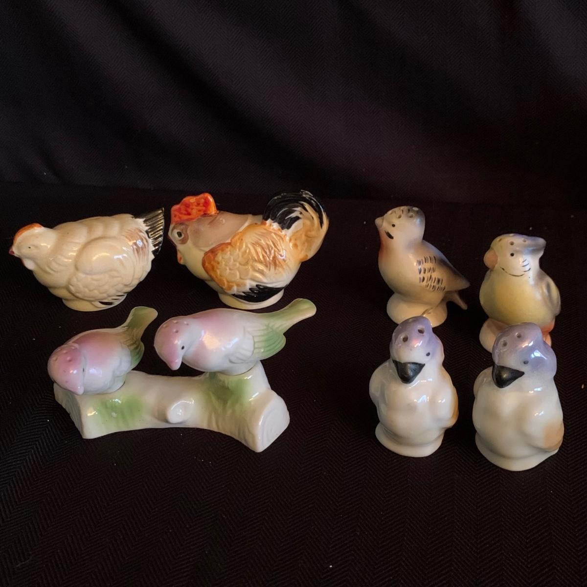 A collection of over 40 sets of unique and antique salt and pepper shakers. The majority are ceramic, though there are some glass and metal as well. They do not all have stoppers. Two do not have their mates; one of these has broken and been repaired. The neck of the violin is broken off but could be glued back on. The tallest set is a man and woman that are in the back of the picture showing the entire inventory; they are about 5” tall. Please see photos for inventory and details.