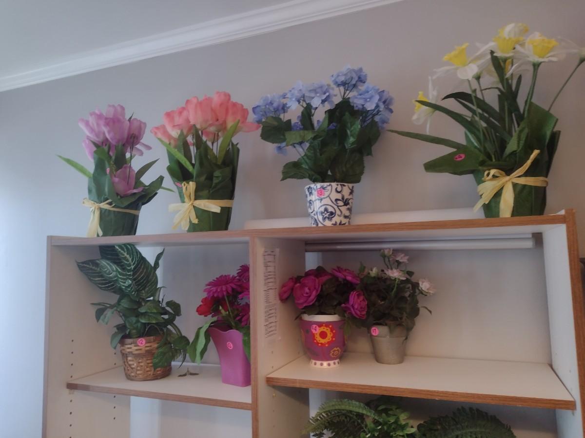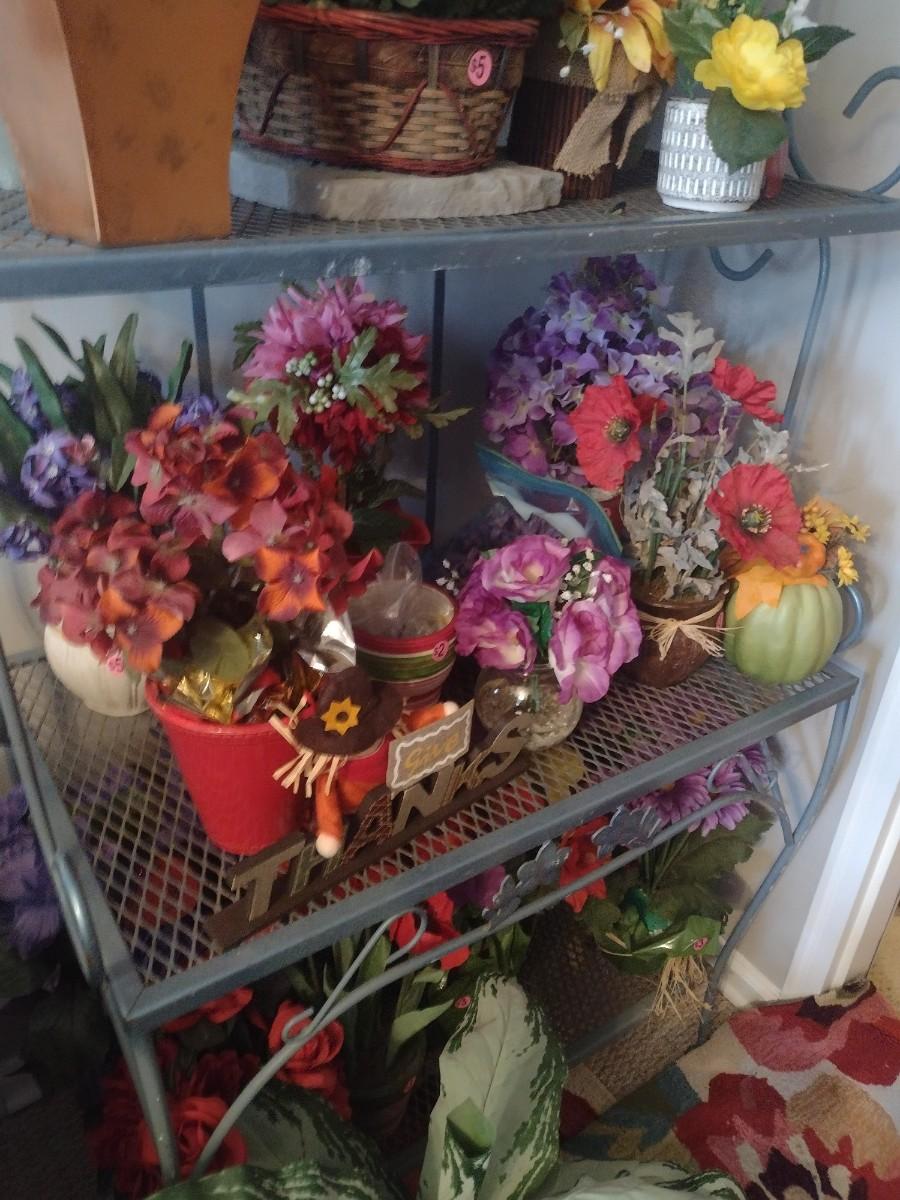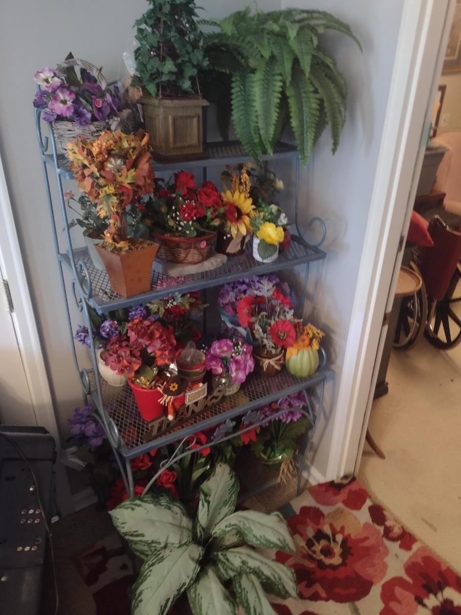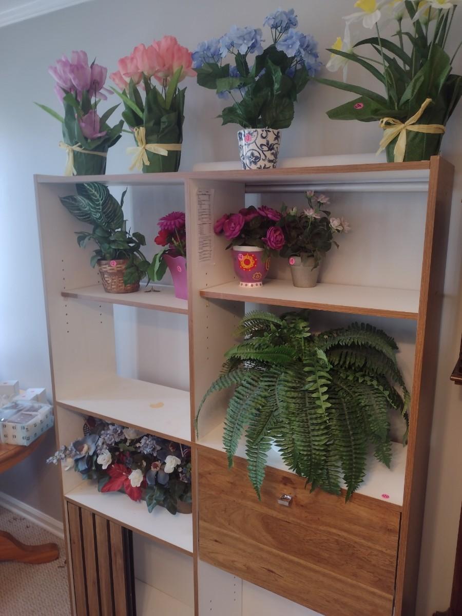 Large Collection of Artificial Flowers, Plants, and Pots (Excludes Shelving Items)
