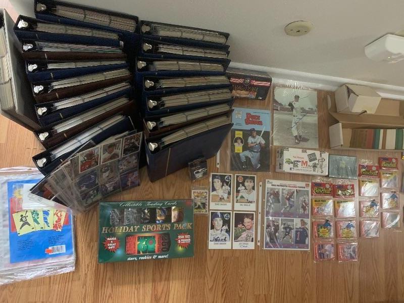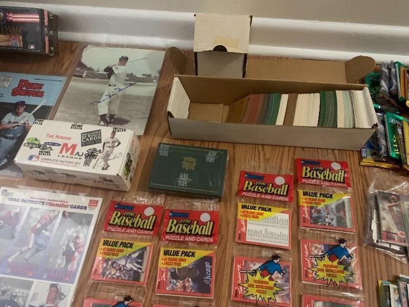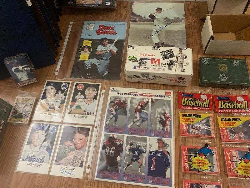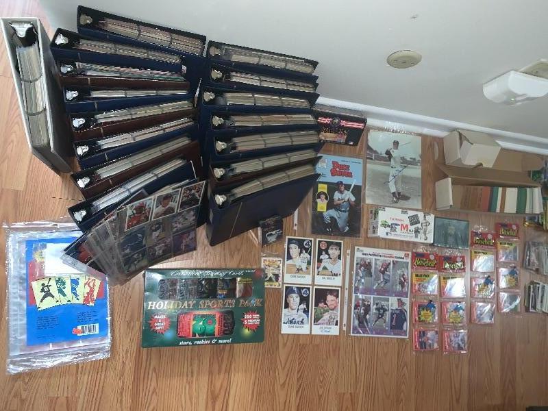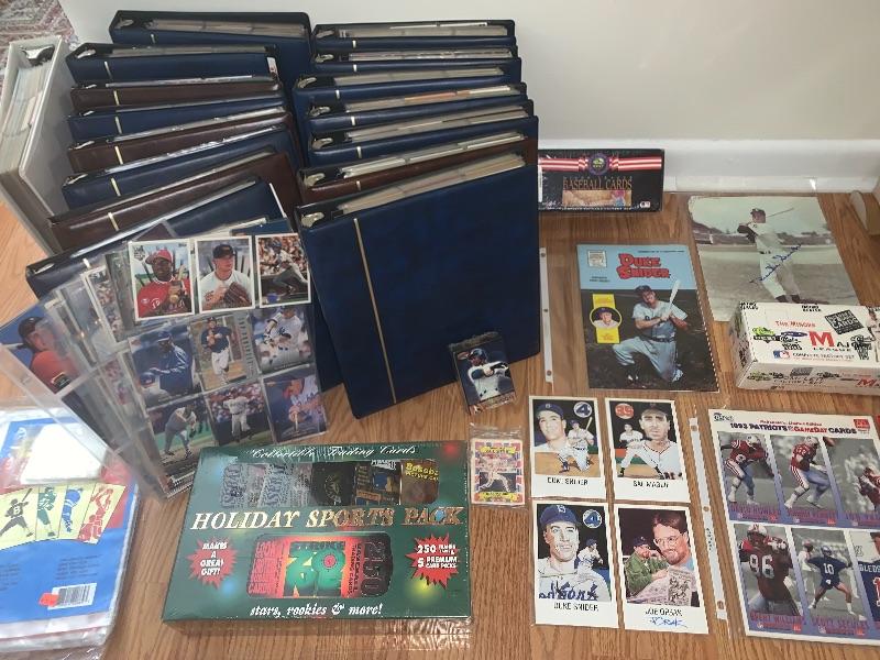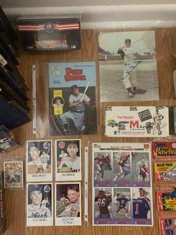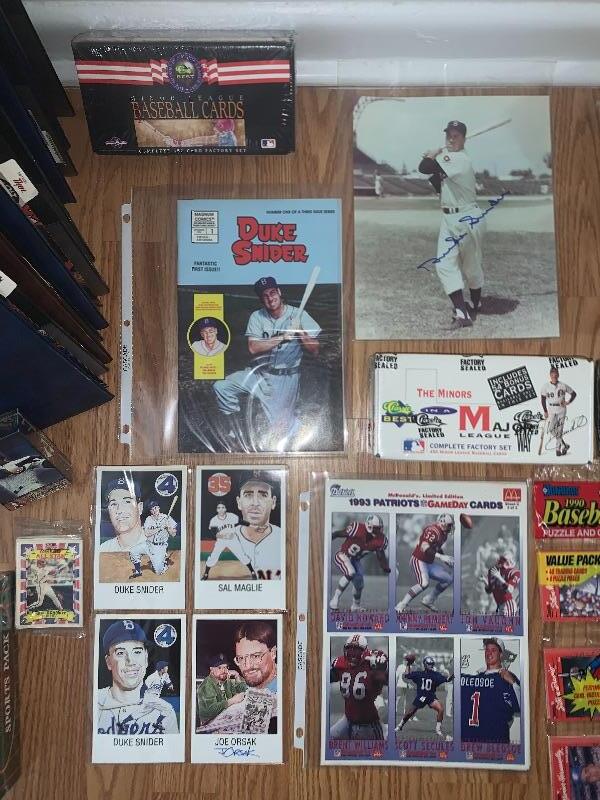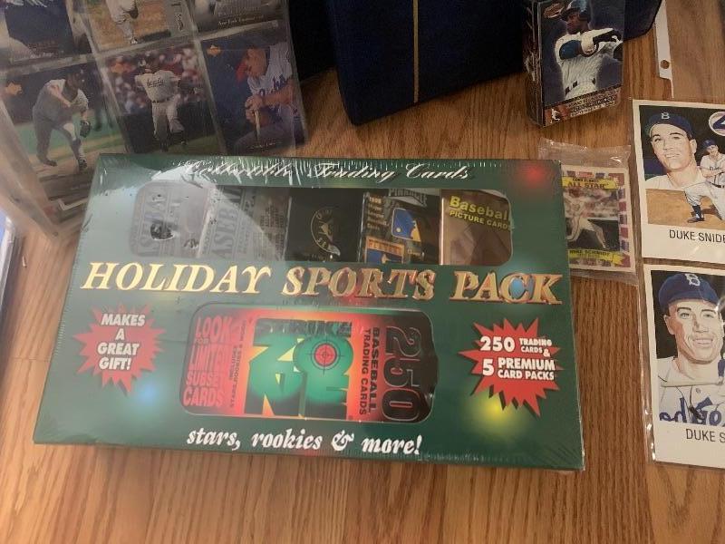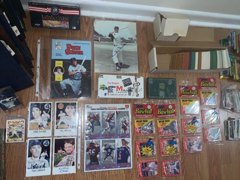 This is a large collection of baseball cards. They are from 1988-2005. There are cards that are opened in the bubble gum wrappers. There are a few of the bubble gum cards that are sealed. There is a signed photo of Duke Snider. Sealed holiday card set and more. If you’re interested, you can contact me and make an offer.