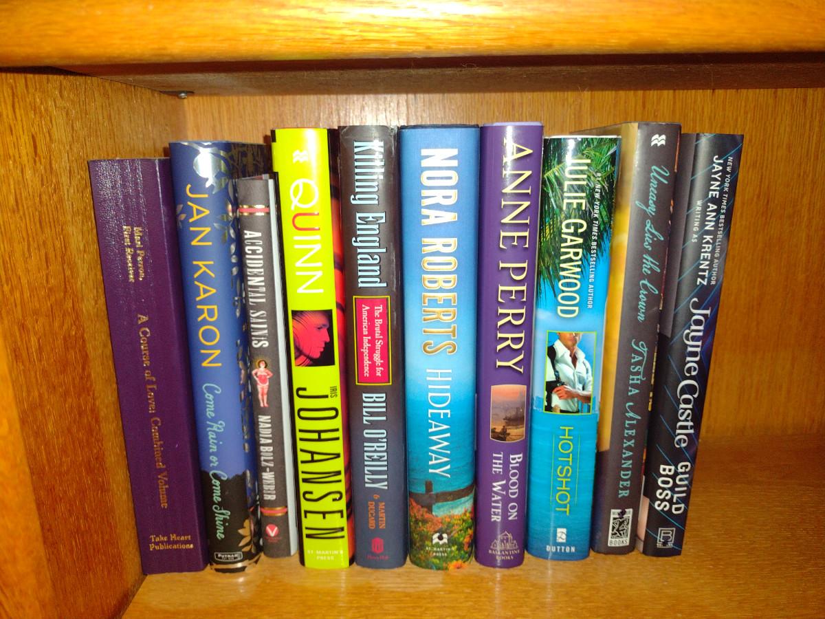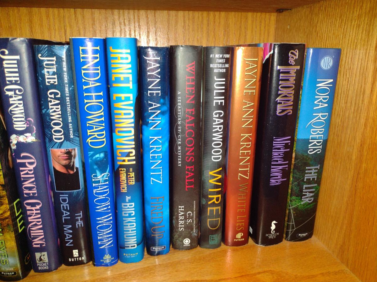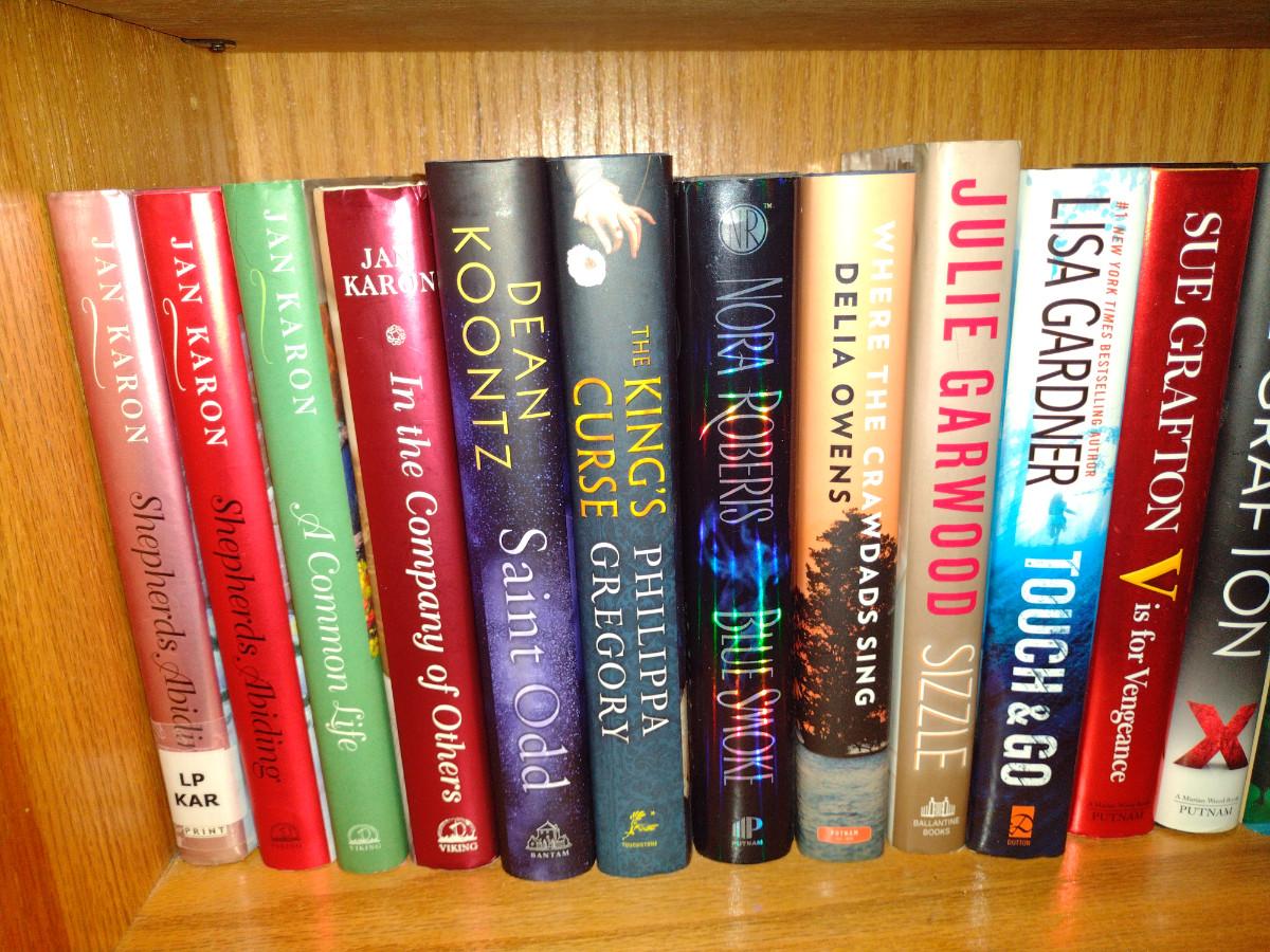 Large Collection of Books. Authors include Danielle Steel, Nora Roberts, Diana Gabaldon, Stuart Woods, Jan Karon, Dean Koontz. Please see all pictures for selection. Shelves not included.