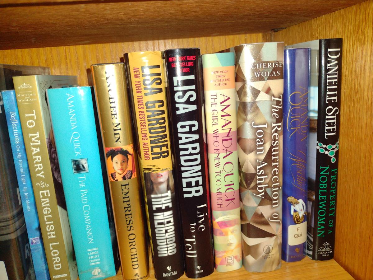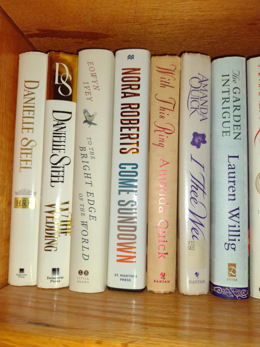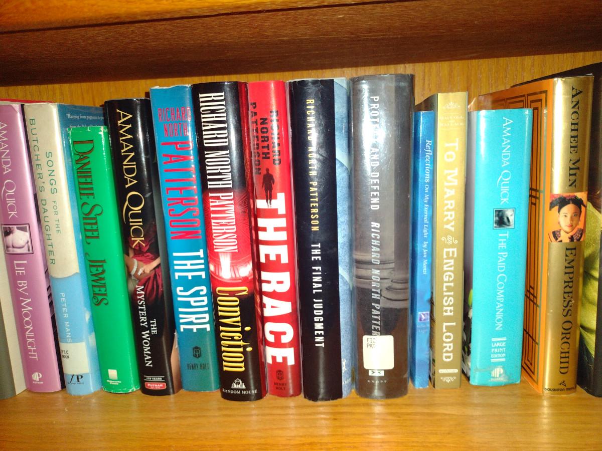 Large Collection of Books. Authors include Danielle Steel, Nora Roberts, Diana Gabaldon, Stuart Woods, Jan Karon, Dean Koontz. Please see all pictures for selection. Shelves not included.