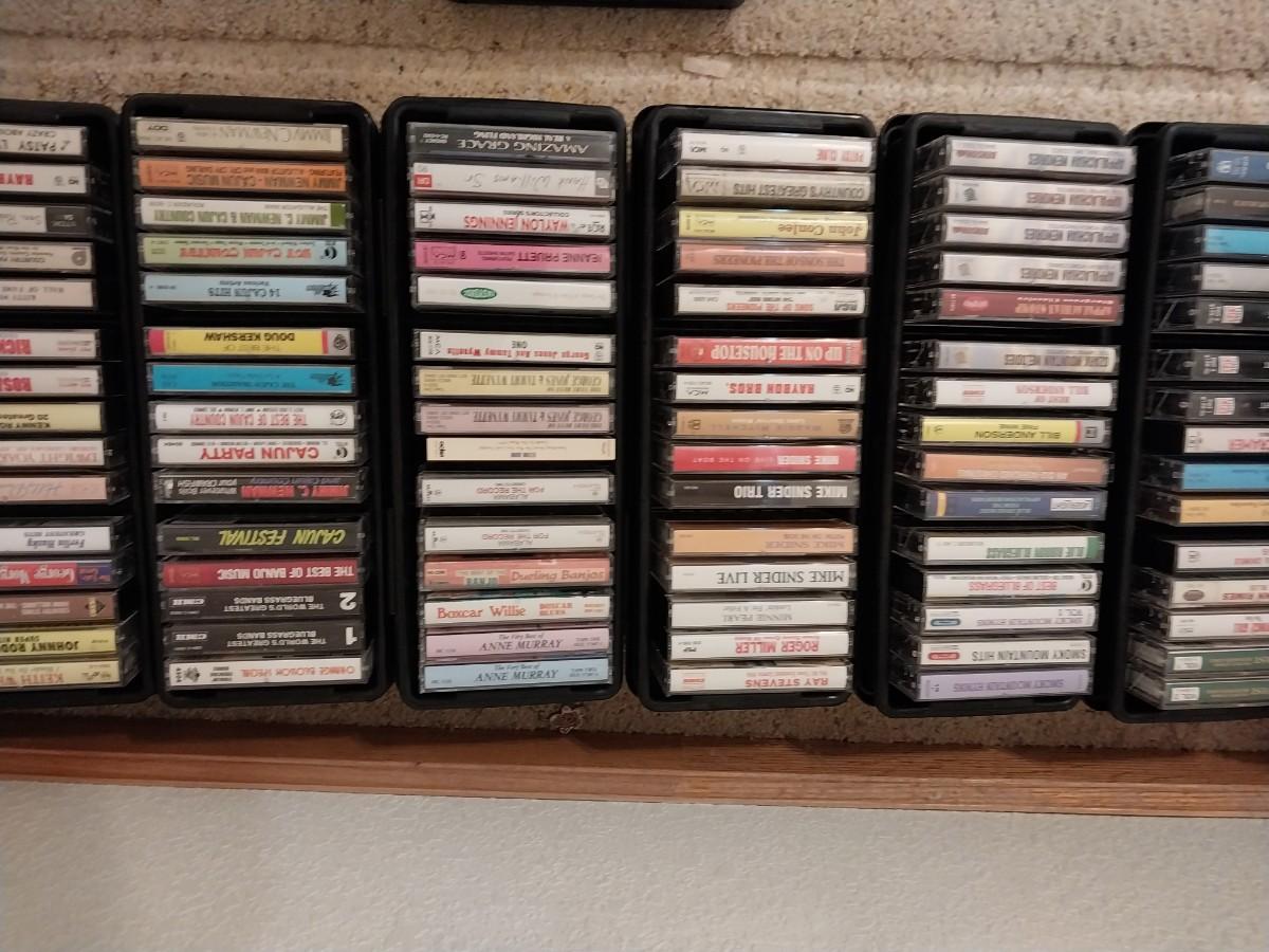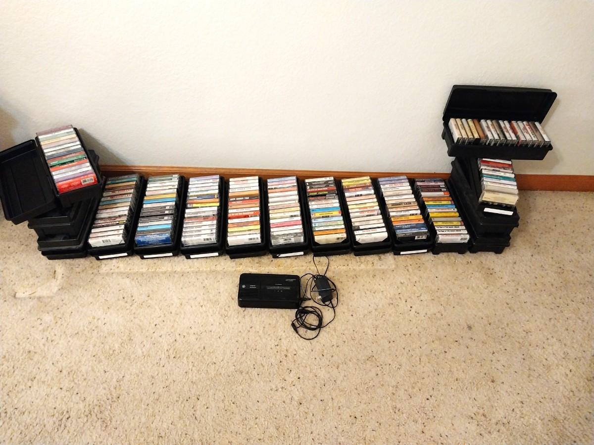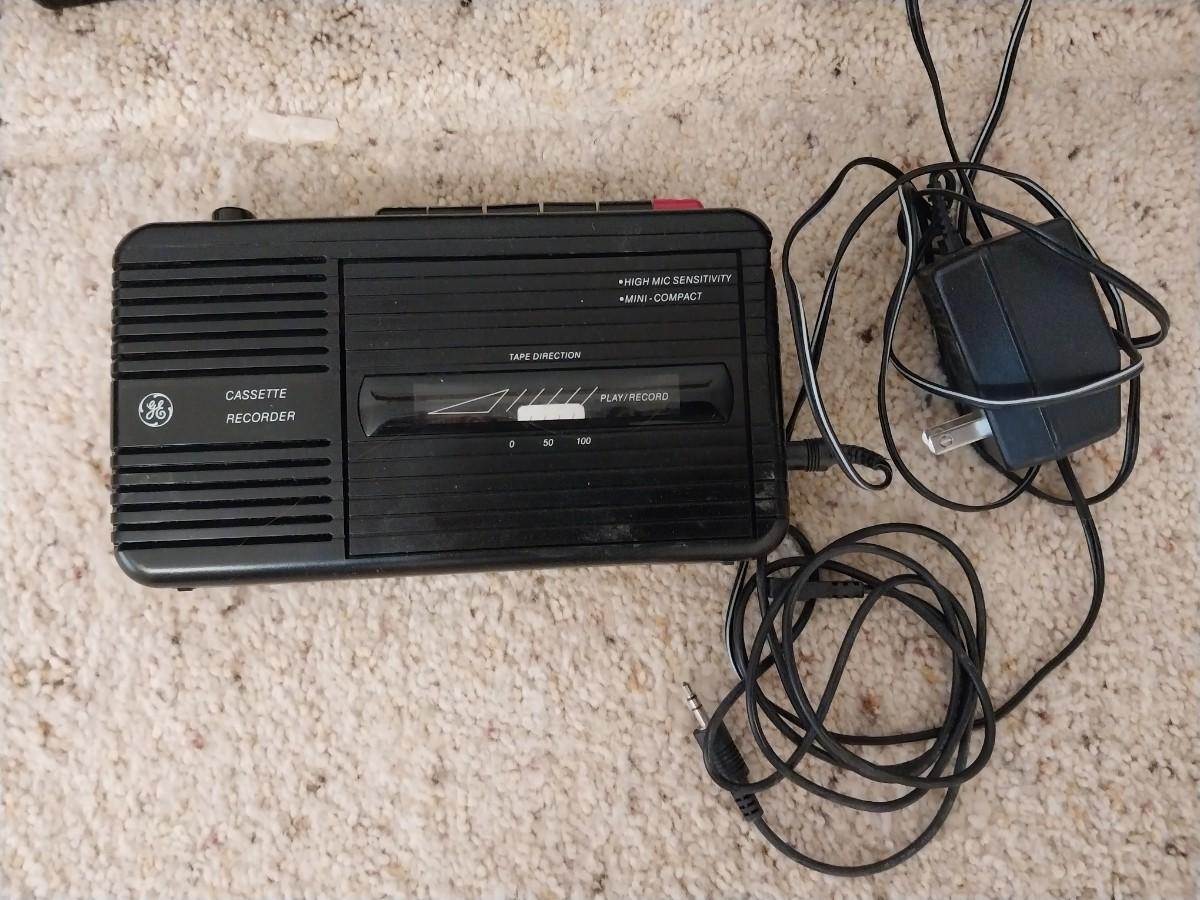 LARGE COLLECTION OF CASSETTS AND GE CASSETE PLAYER/RECORDER.