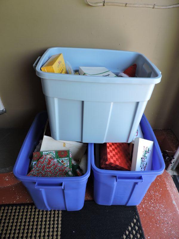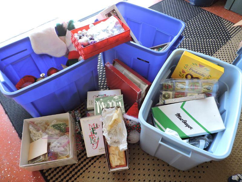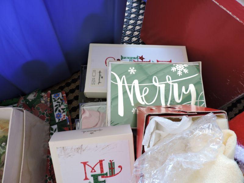 Three boxes of christmas decor, cards, and labels. **Please read Terms and Conditions before placing a bid. Pick up is Wednesday, September 25 from 4pm to 7pm and Saturday, September 28 from 9am to 1pm in Williamstown, NJ. All sales are final. All sales are as is, where is. Please review all photos. Any props included in photos are not included in listing. All measurements are approximate.