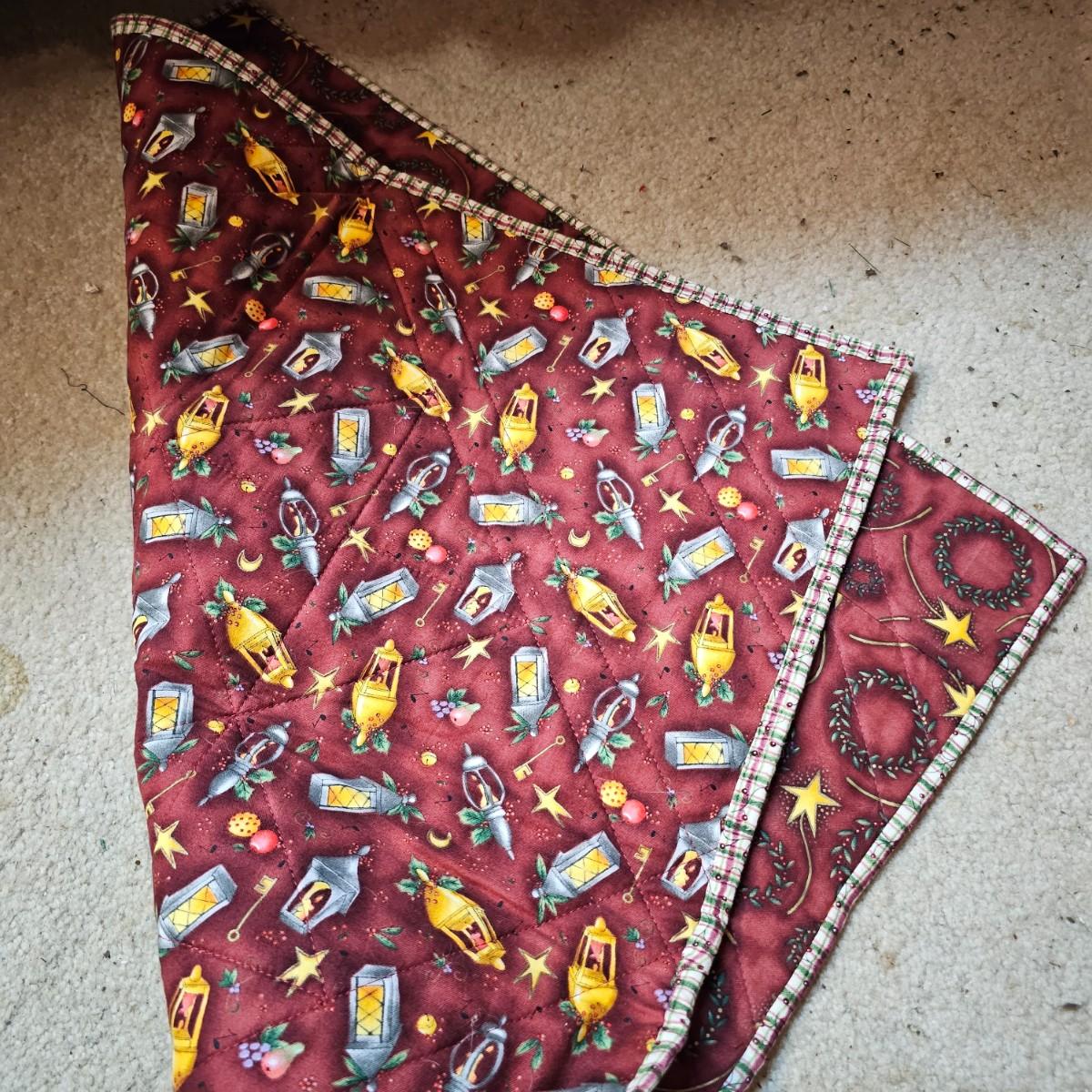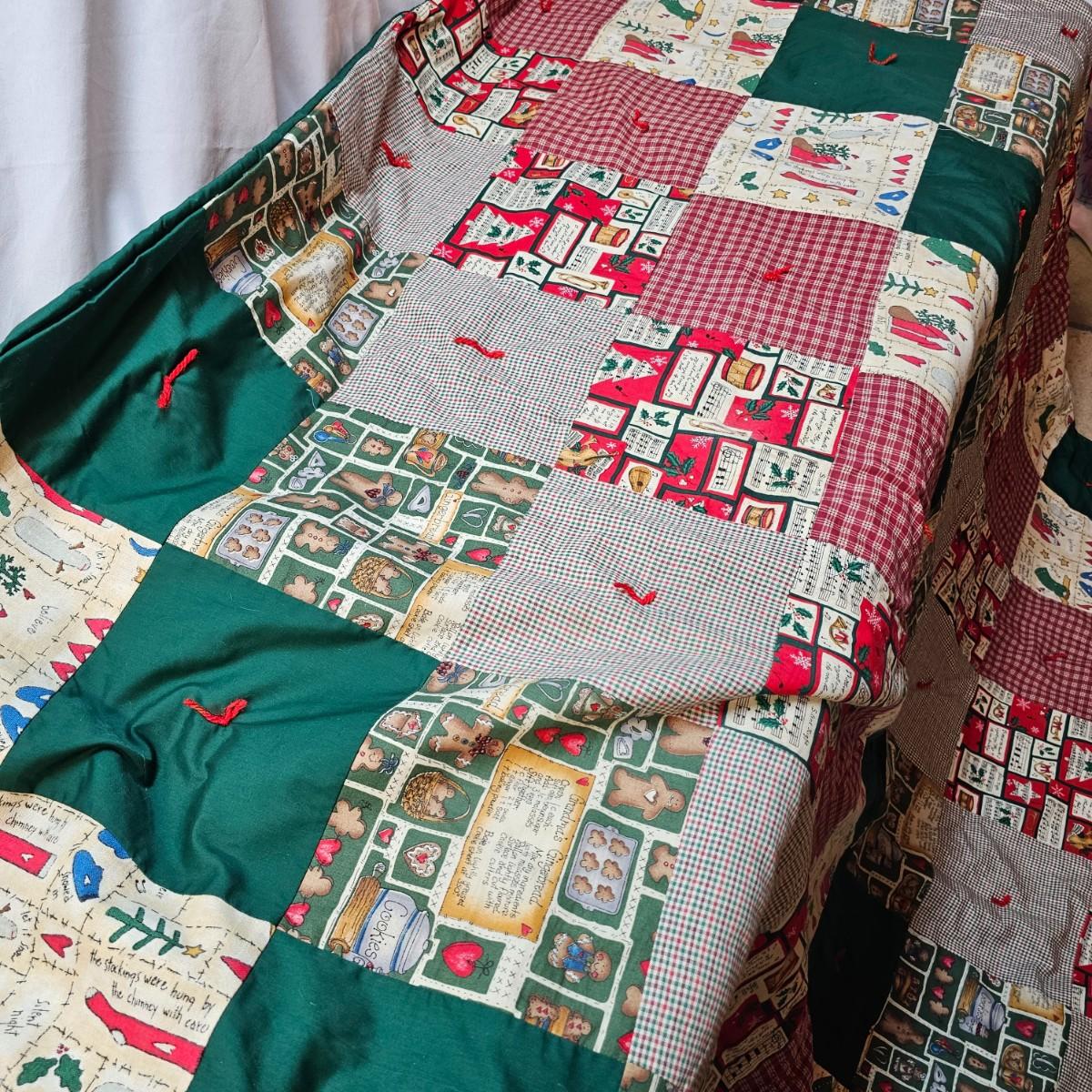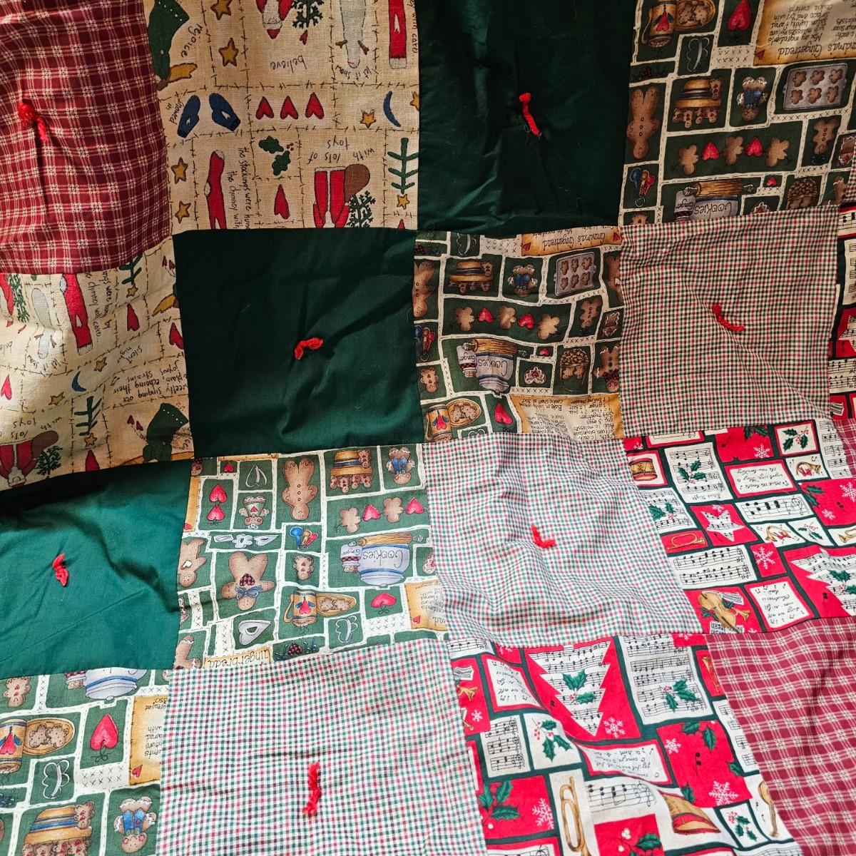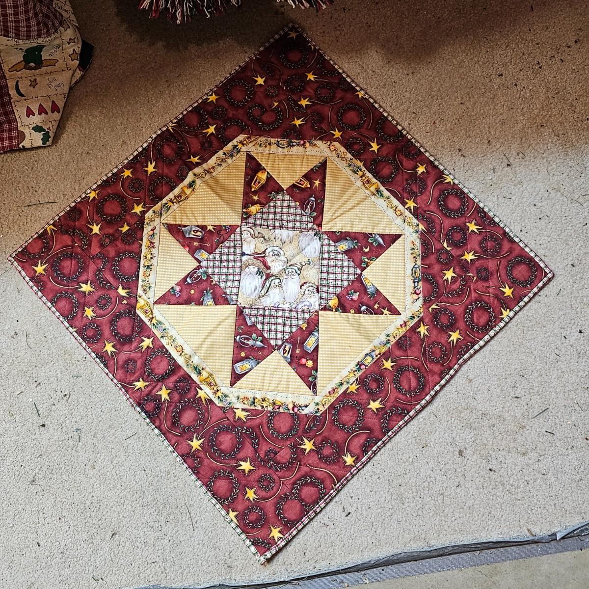 Plenty of fun items to use about the house. Joyful entry rugs, pillows and throws for furniture, tree skirts, placemats, Santa & Mrs. Claus table sitters, more. Two patchwork quilts, one 72" x 90", one 66" x 80". Two large rugs are 39" x 56", others run from 19" x 27" to 22" x 36. Includes storage bins. See photos for details. Local pickup only.