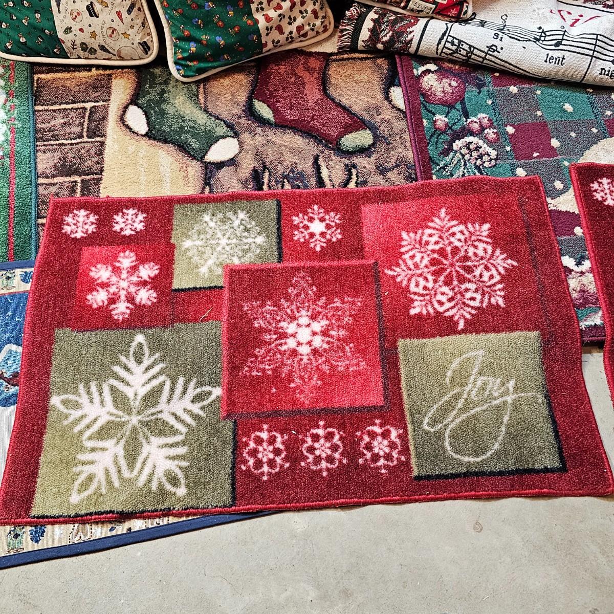 Large Collection of Christmas Pillows, Rugs, Mats, Quilts & More (S1-JS)