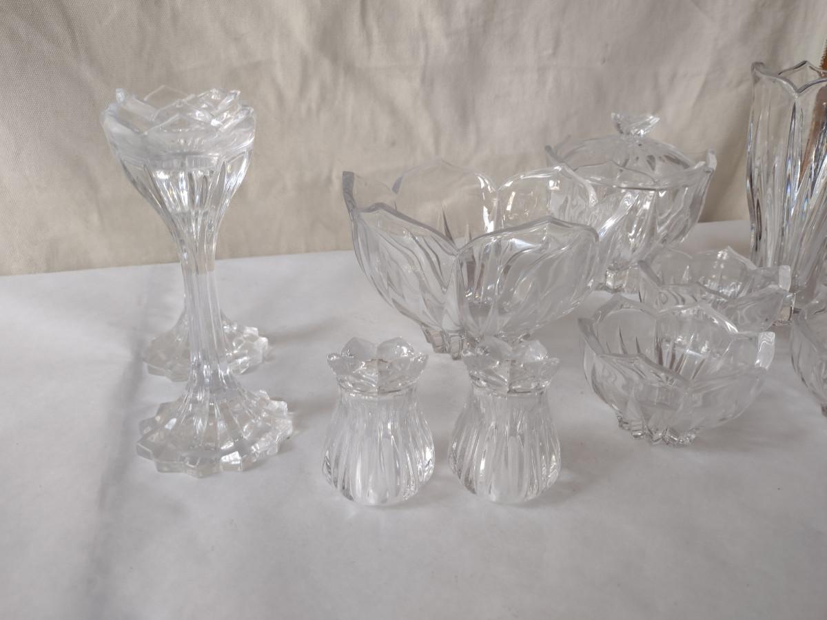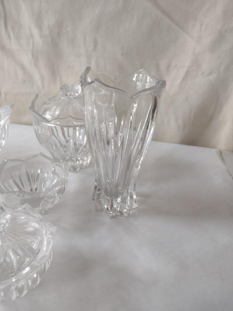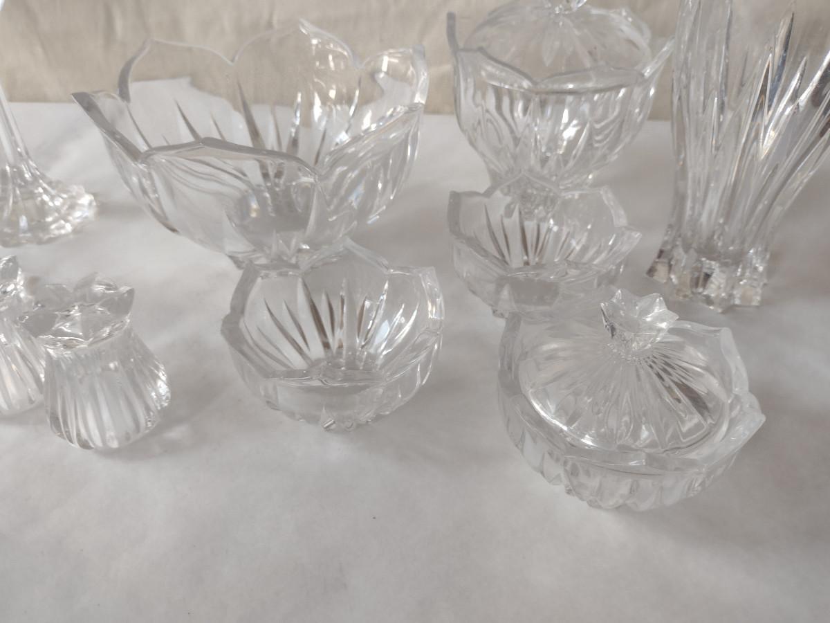 Large Collection of Clear Glass Serve Ware- Bowls, Salt and Pepper Shakers, Vase, etc. Please see all pictures for selection.
