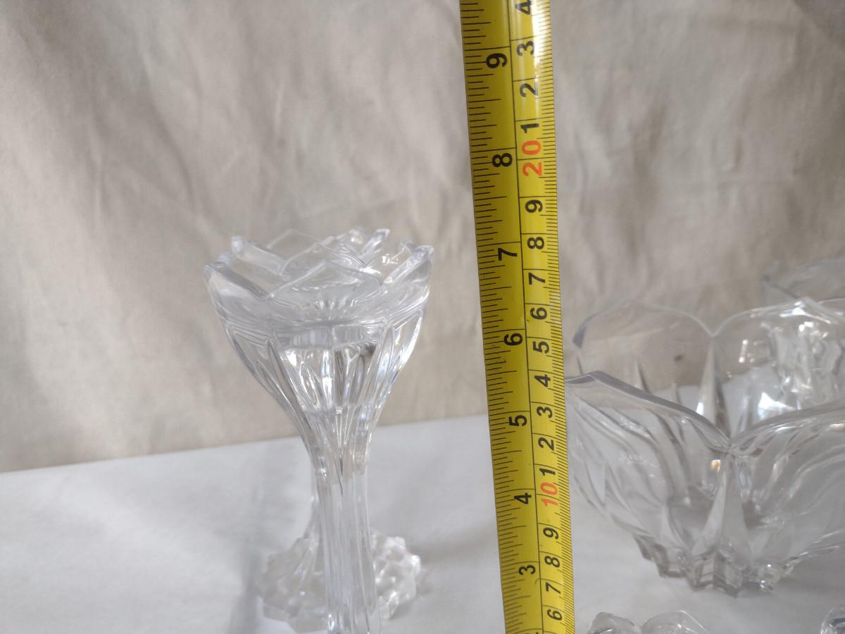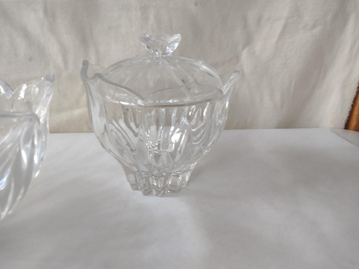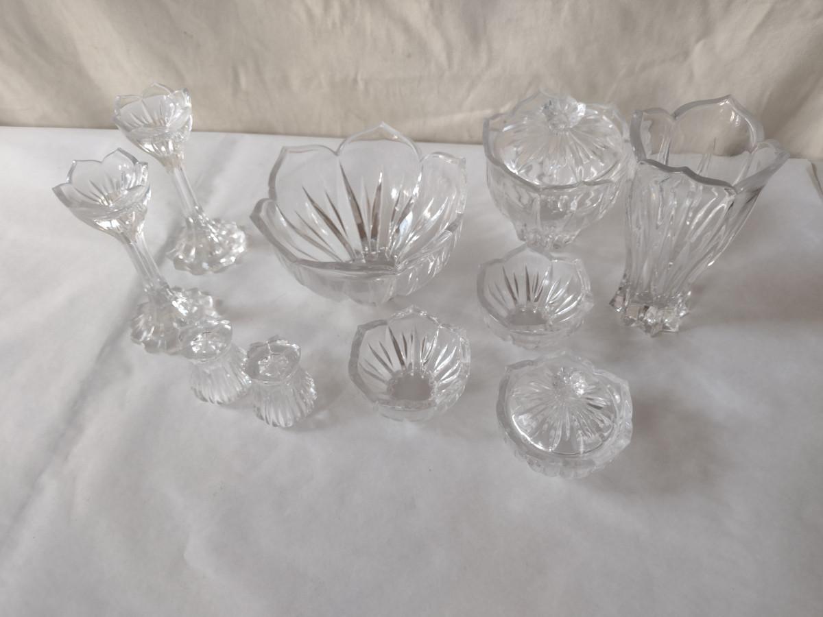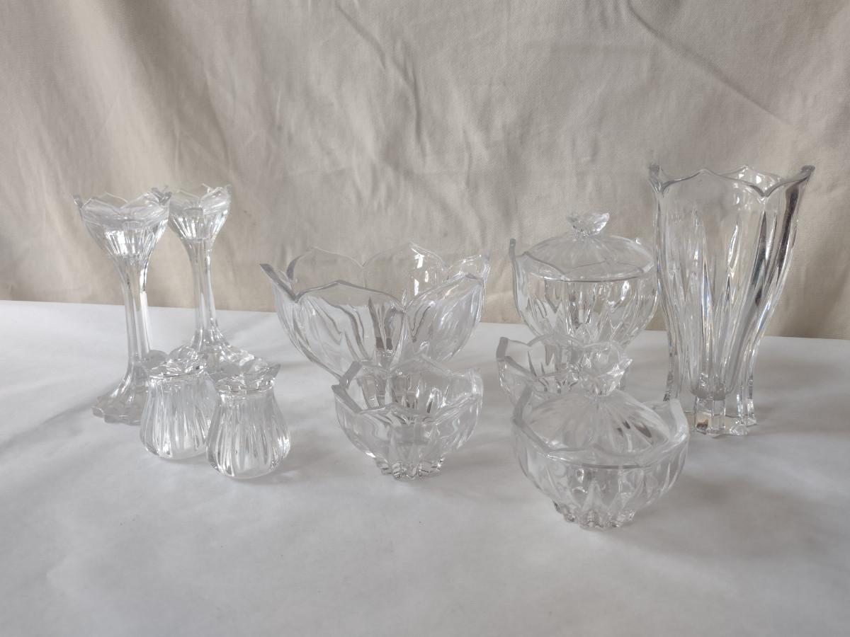 Large Collection of Clear Glass Serve Ware- Bowls, Salt and Pepper Shakers, Vase, etc. Please see all pictures for selection.