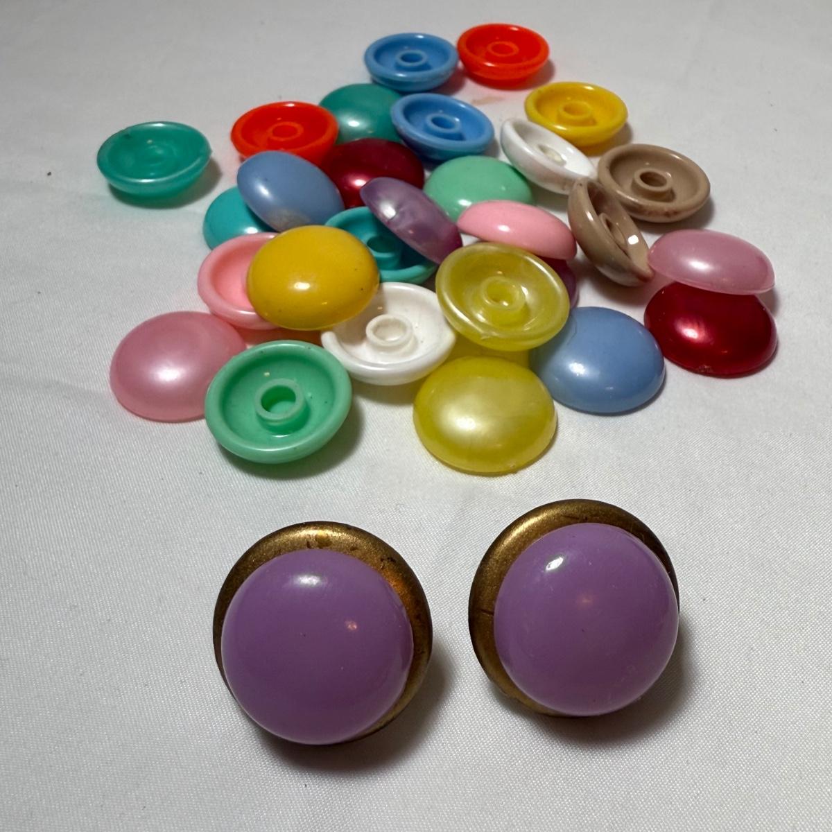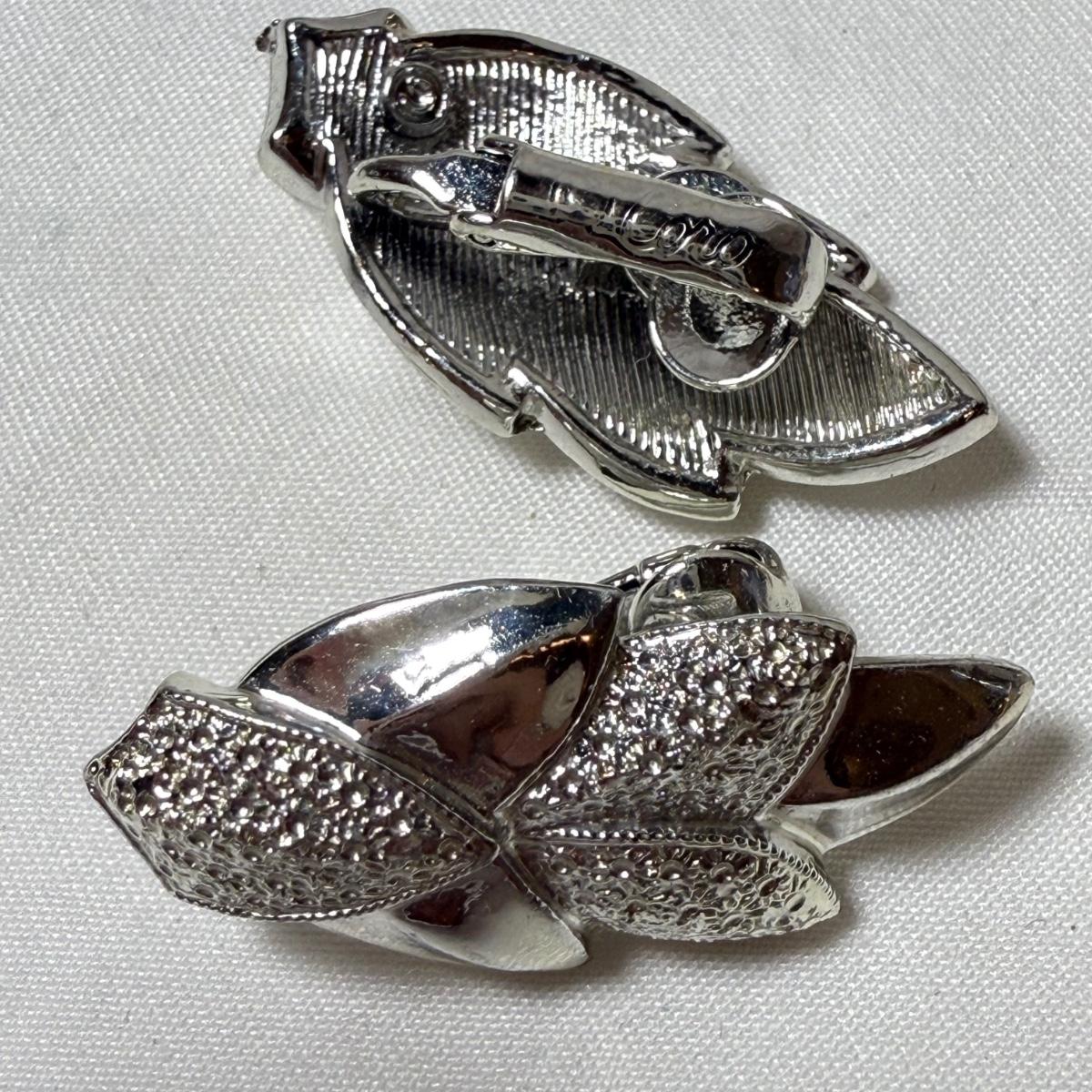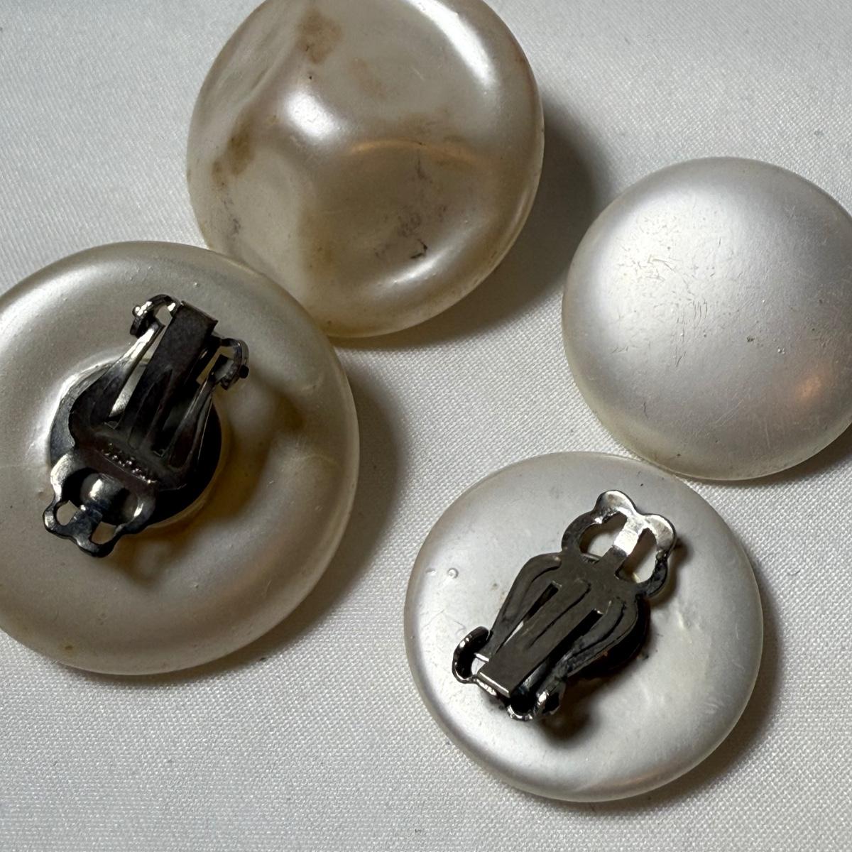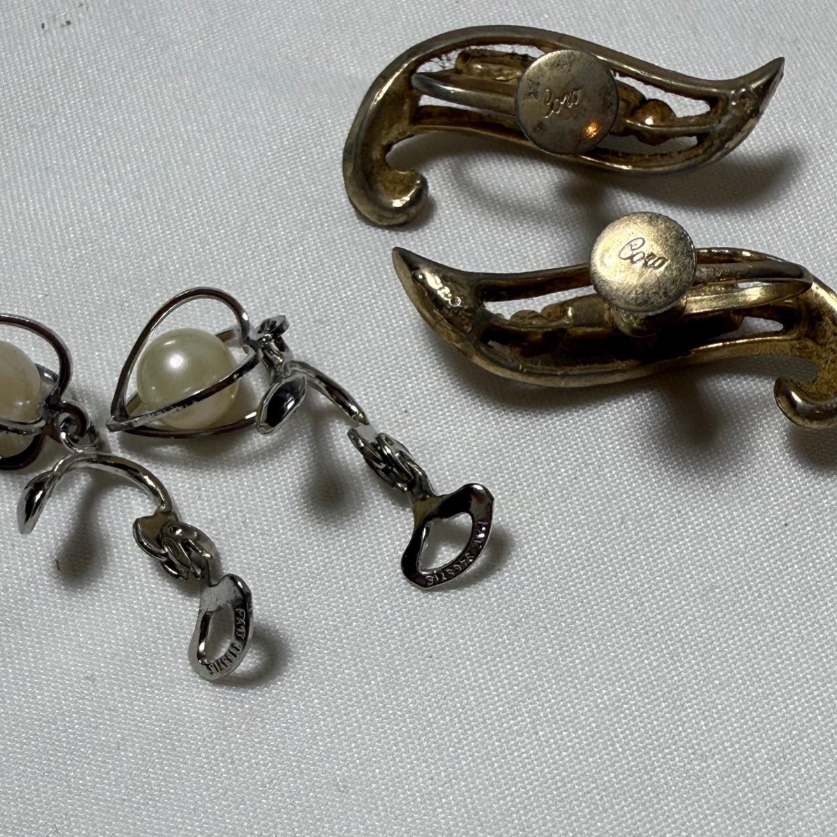 50+ pairs of earrings for non-pierced ears, with clip-on style of screw backs. There is a big variety of shapes, colors, and sizes. One pair comes with many colors of changeable discs. All earrings were checked for hallmarks, all found marks were photographed. The largest earrings are the pair with multiple green flowers with clear gemstones; these are approximately 1.75“D. 13.5” x 9.25” plastic organizing tray is included as well.