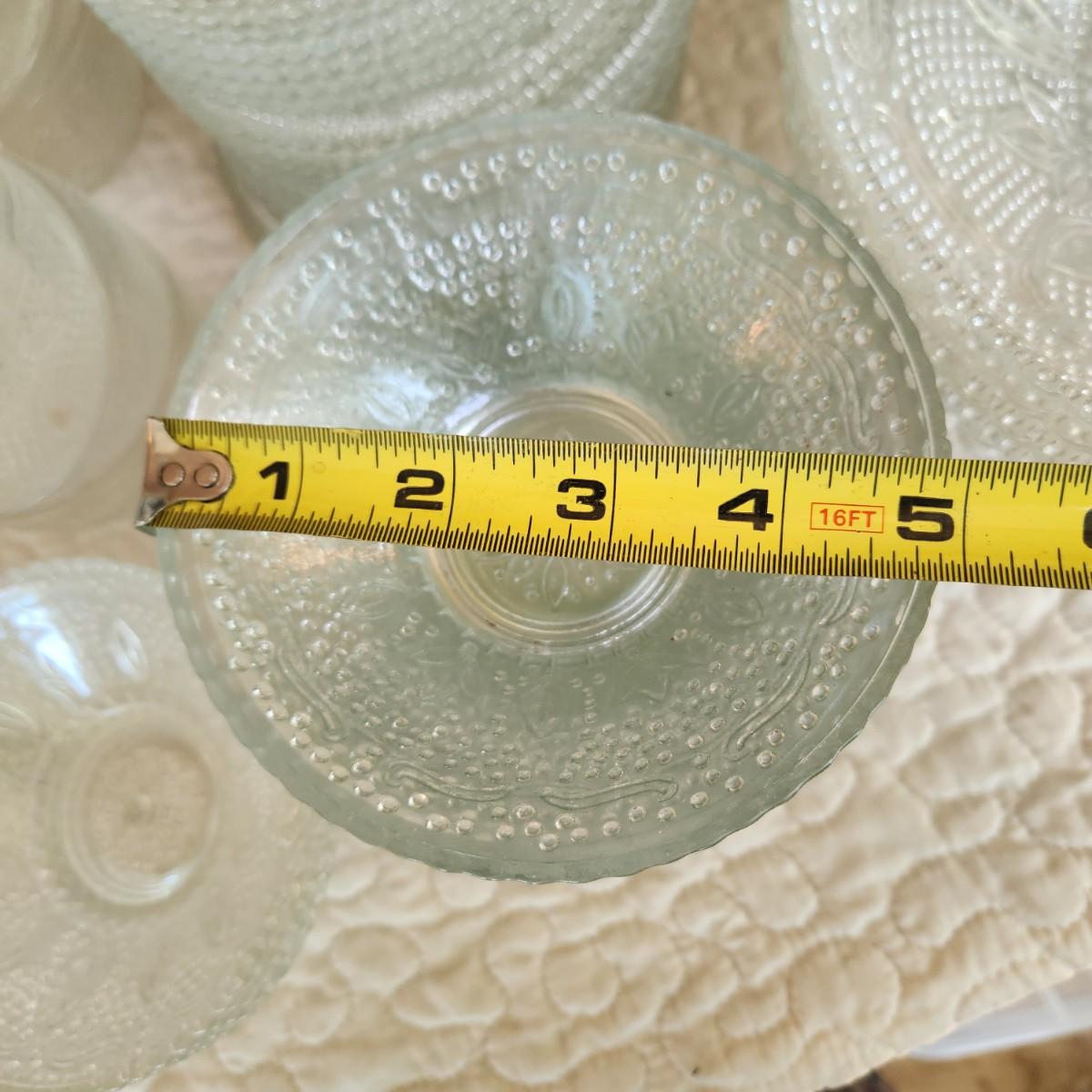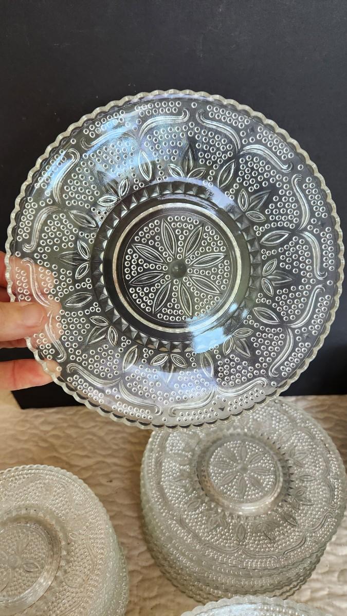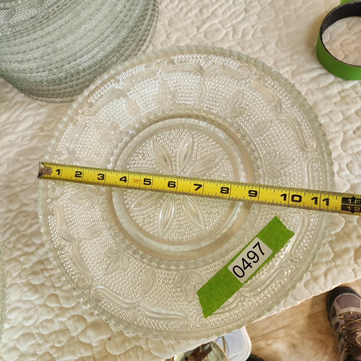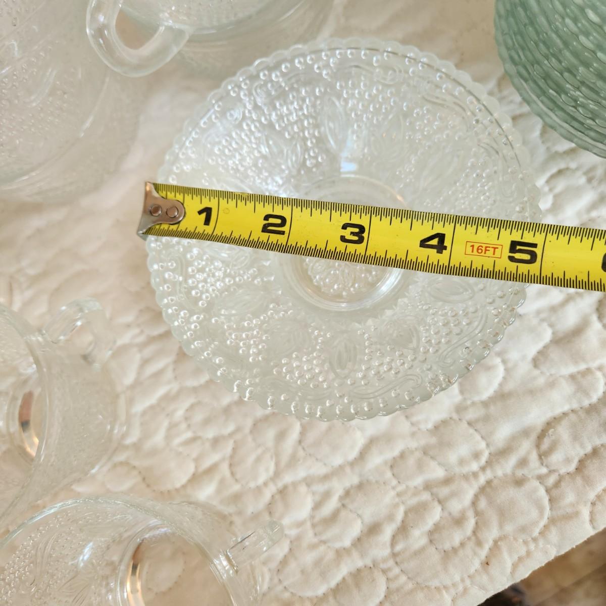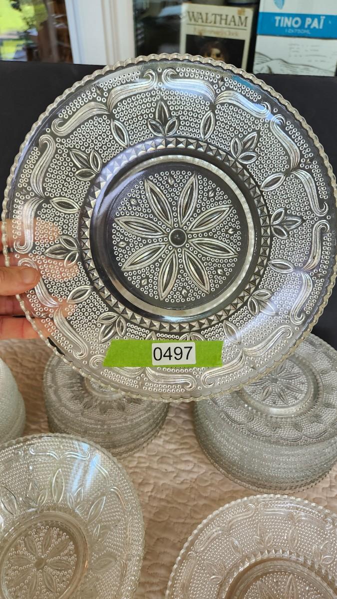 Large Collection of Depression Glass Daisy Plates, Cup, Saucer Bowls