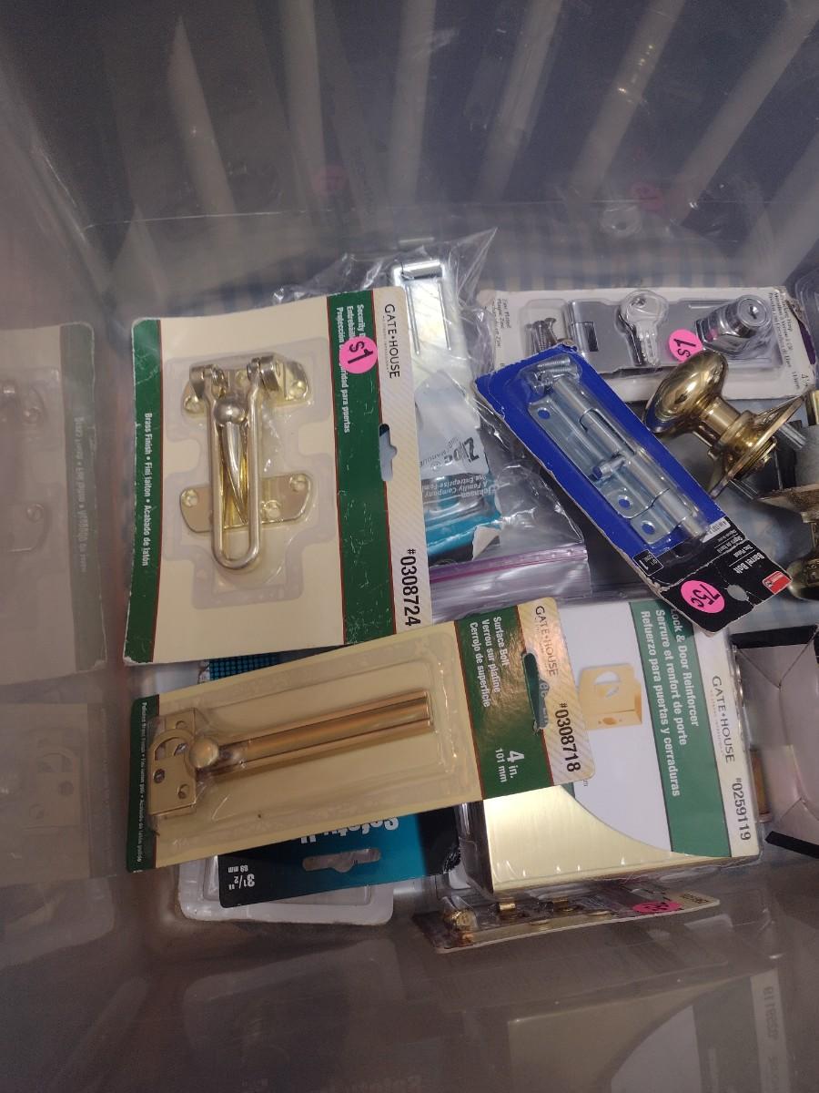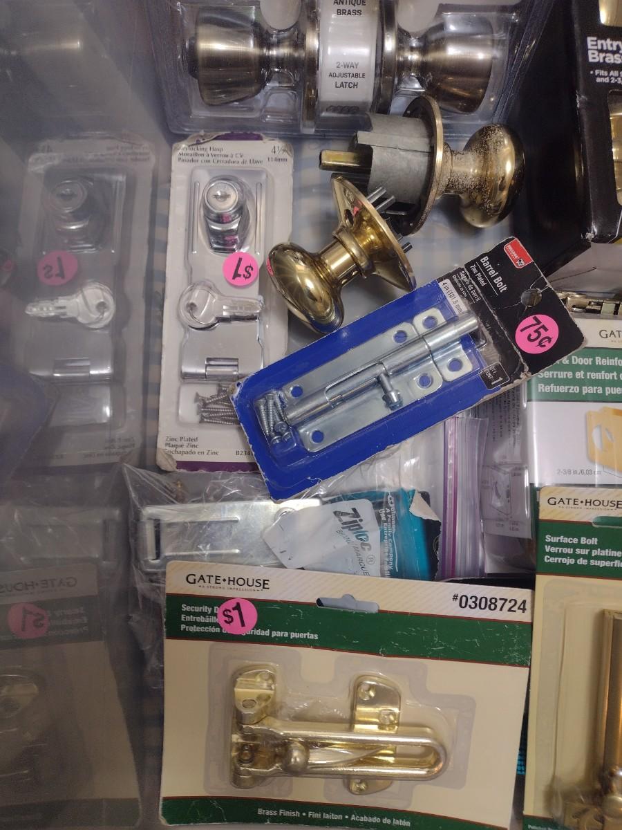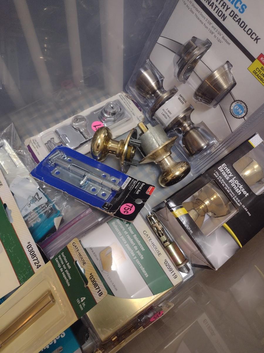 Large Collection of Doorknob Sets, Hinges, Locks Sets, and Hardware