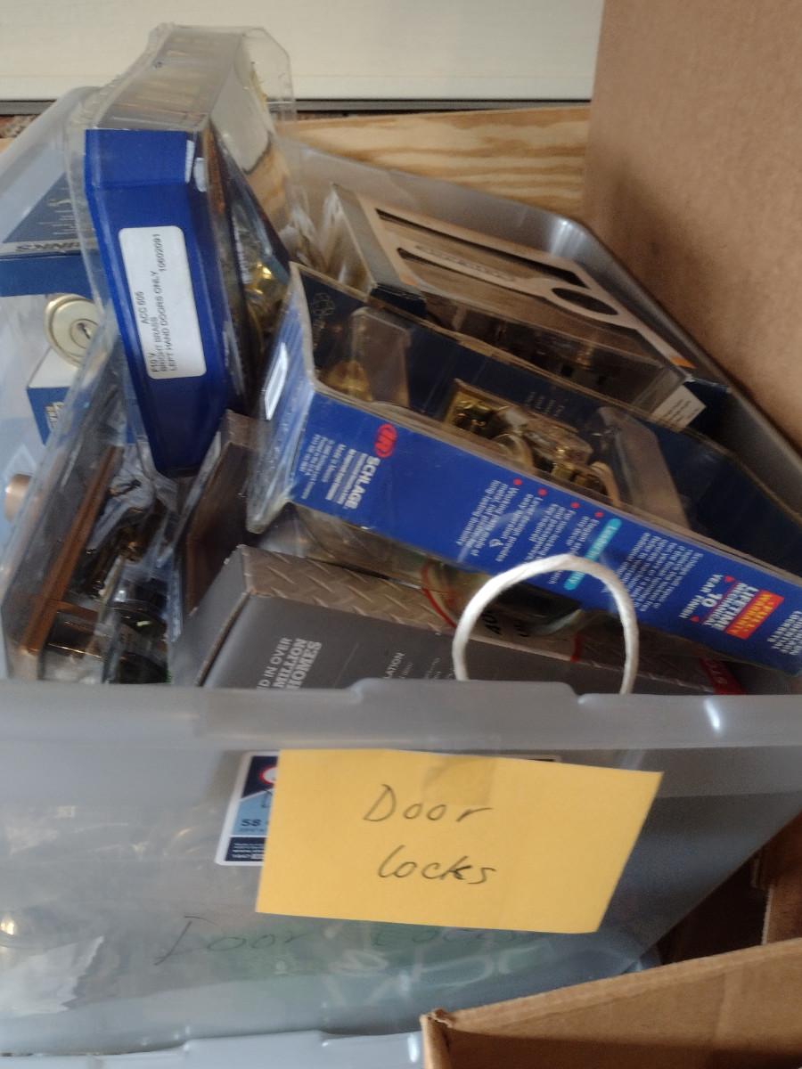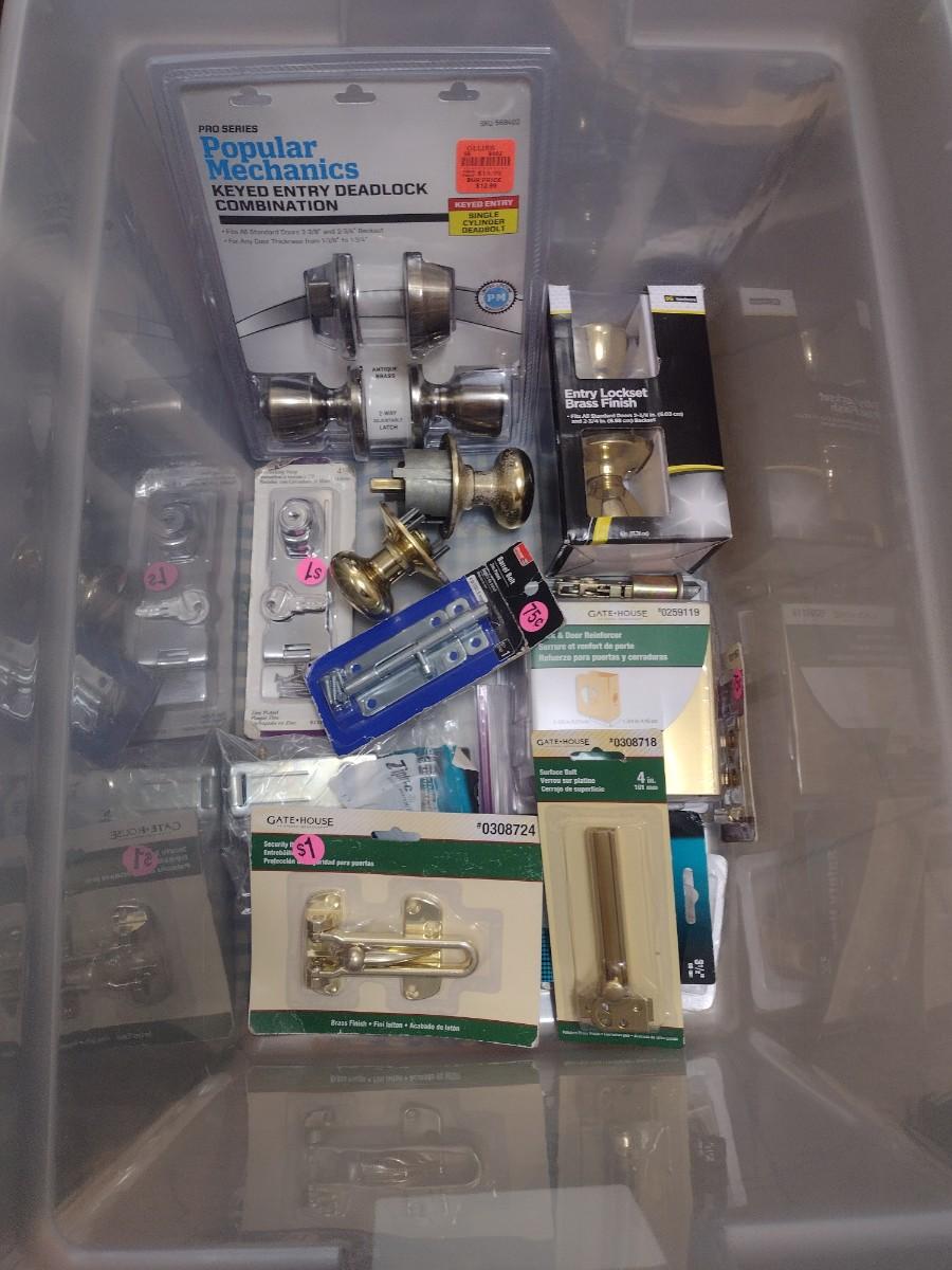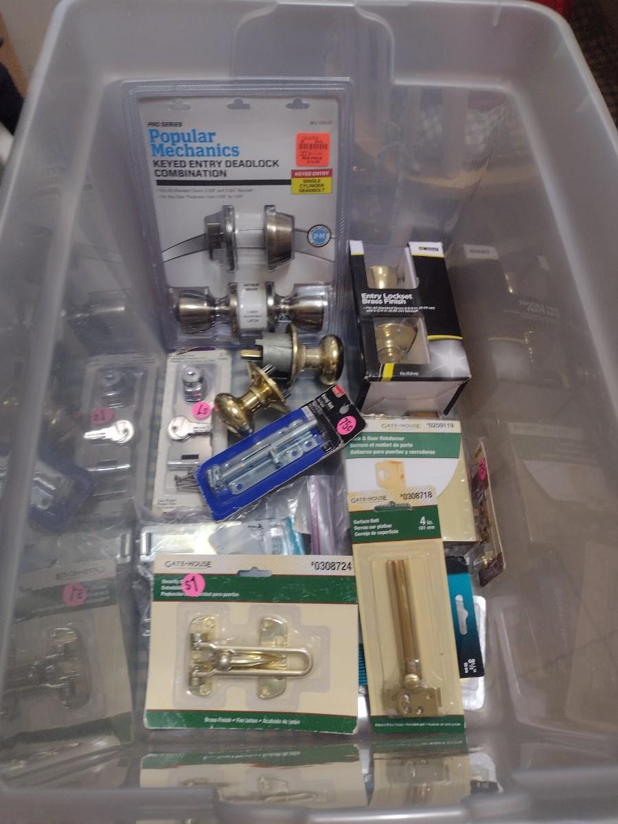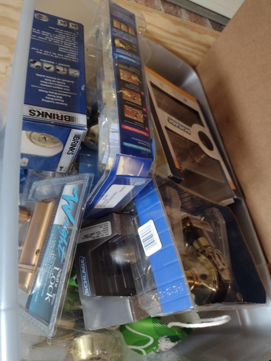 Large Collection of Doorknob Sets, Hinges, Locks Sets, and Hardware
