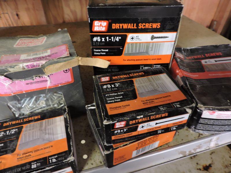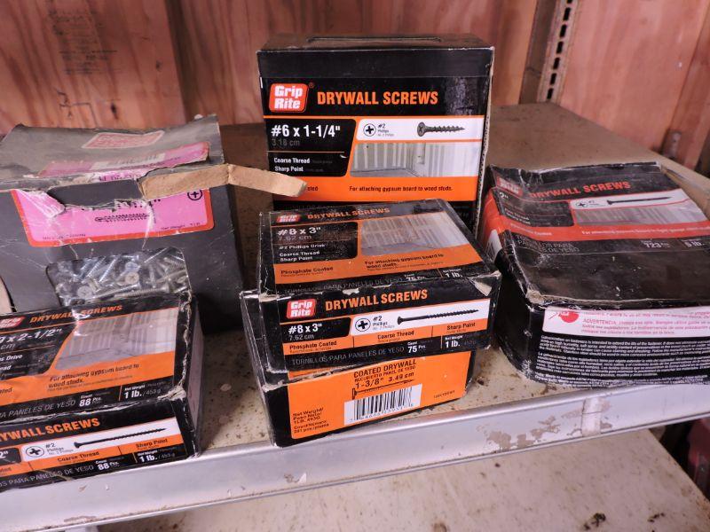 6 Boxes of drywall screws, all partially used. Please read Terms and Conditions before placing a bid. Pick up is Friday, October 25th between 4 and 7, and Saturday, October 26th between 9 and 1. Please bring boxes, tools, and muscle to help move your items. Props included in photos are not included in listing. All measurements are approximate.