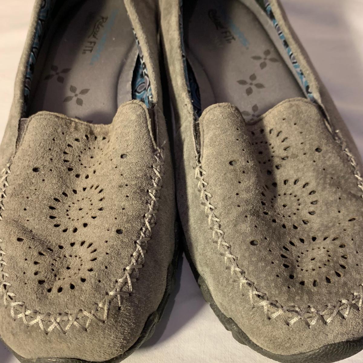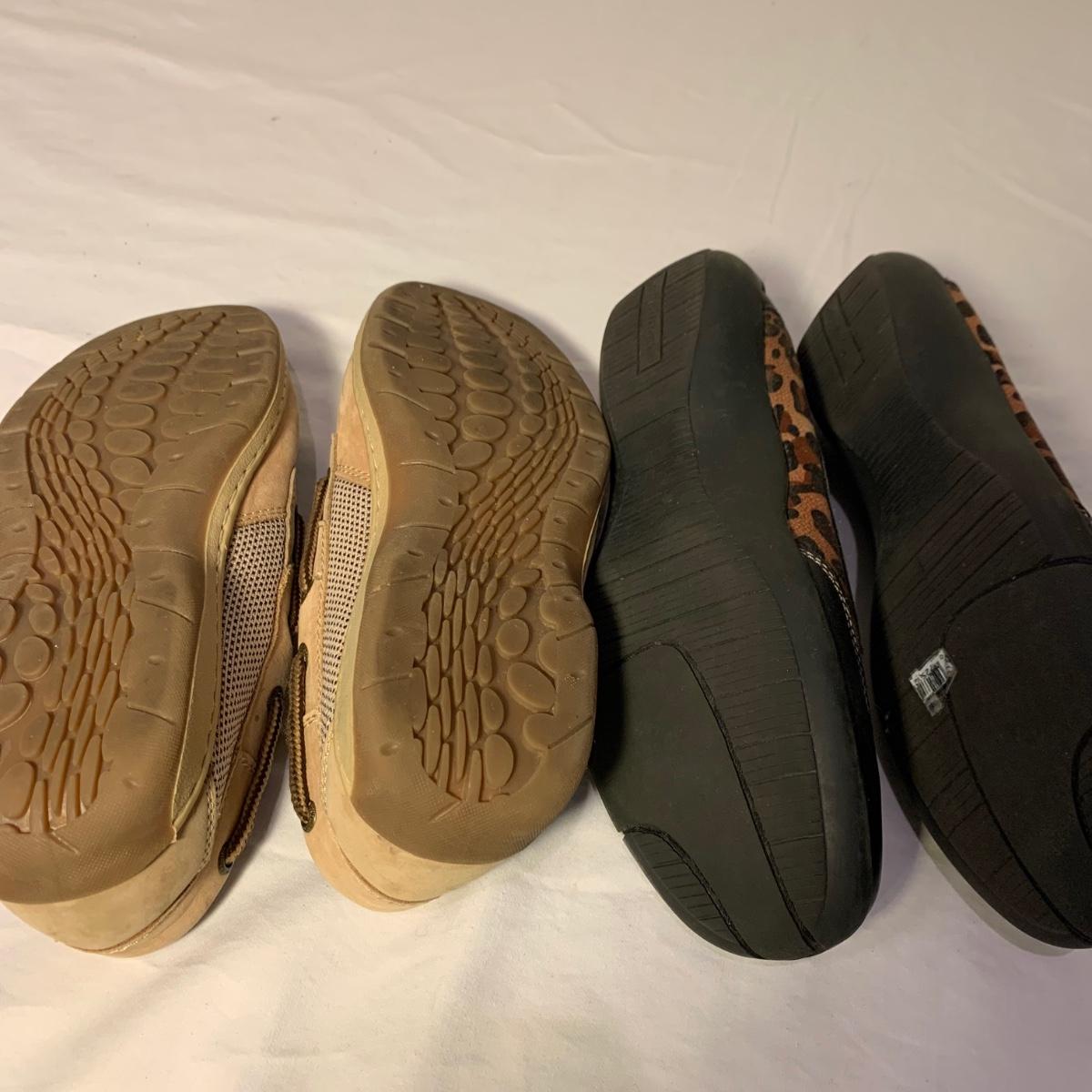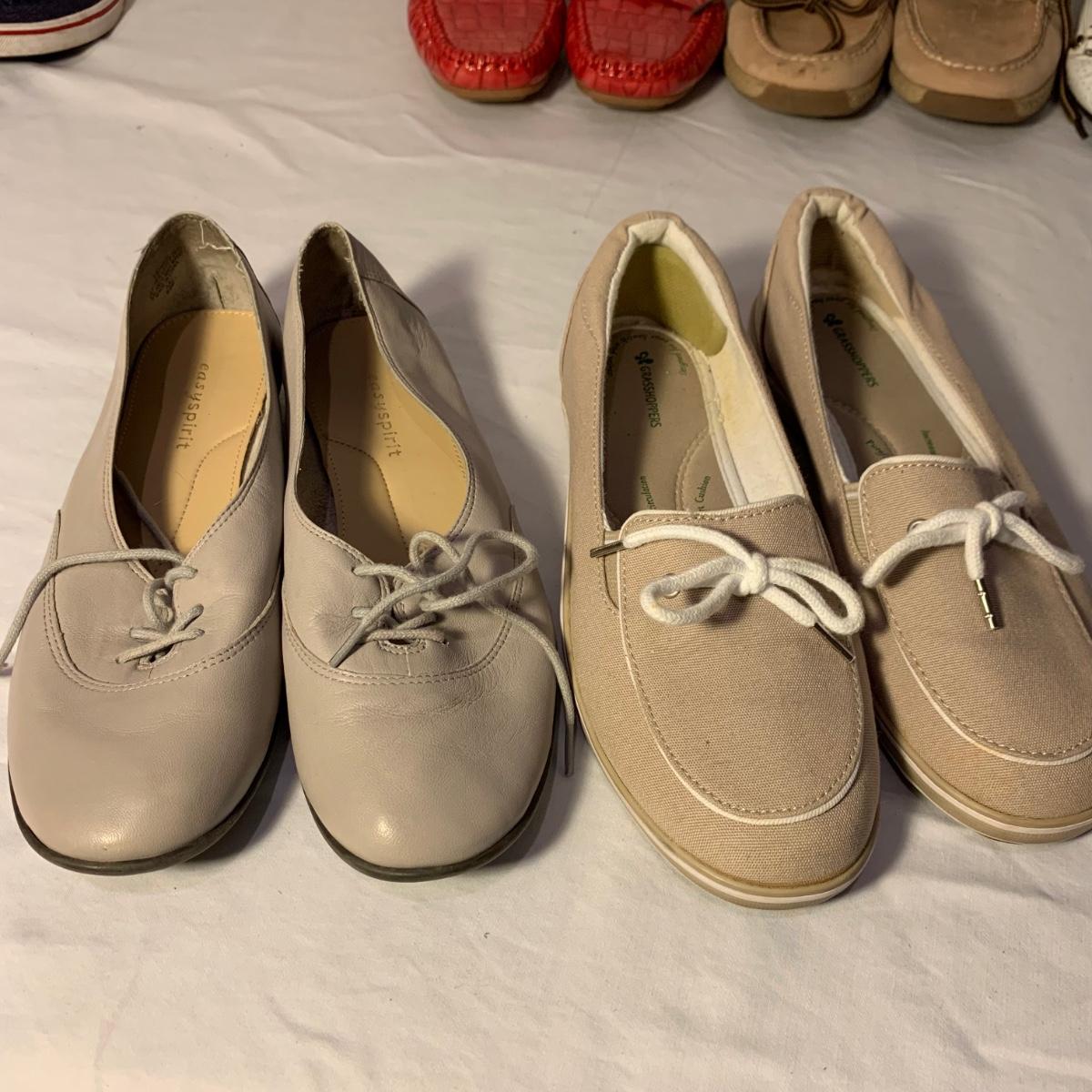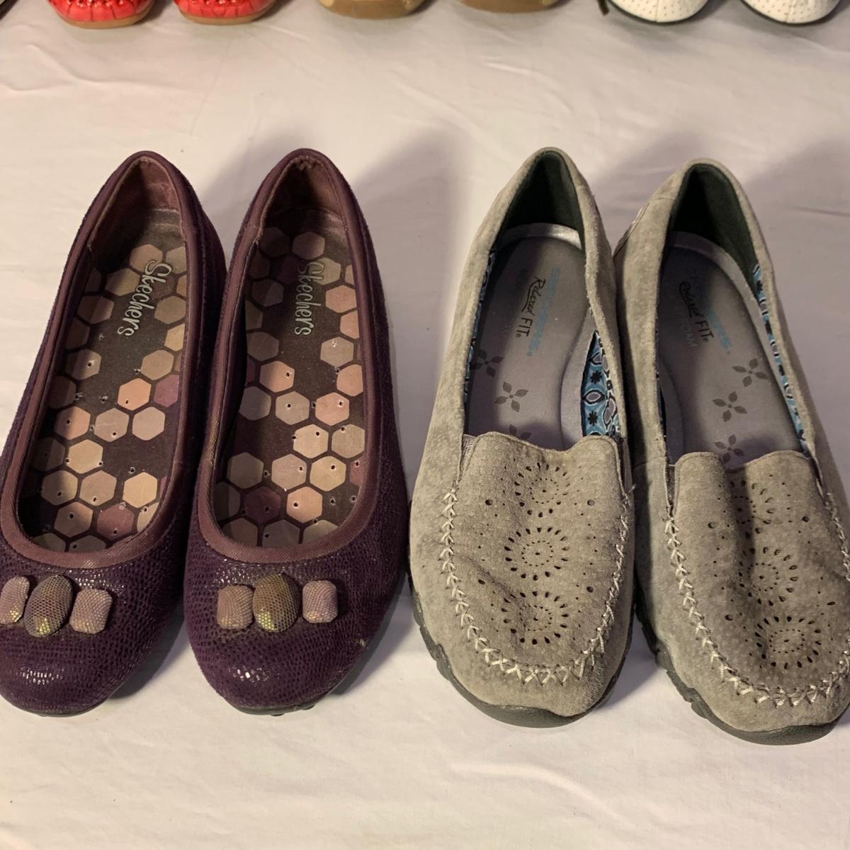 A collection of 17 flats and loafers. Shoes range mostly from women’s size 7-9. Most show some wear. Brands include Dr. Scholls, Easy Spirit, Skechers, L.L. Bean and more. See photos for inventory, sizes, and details.