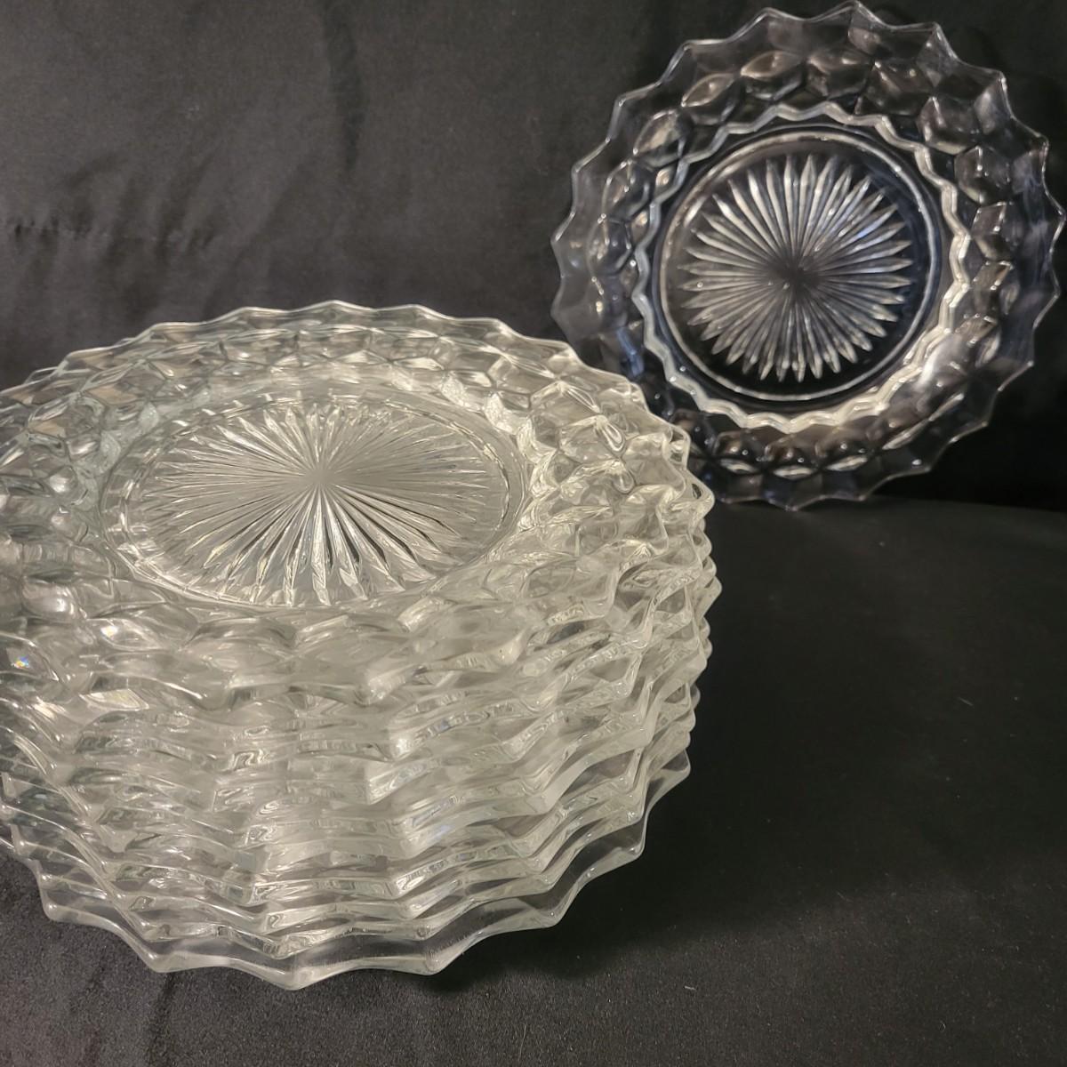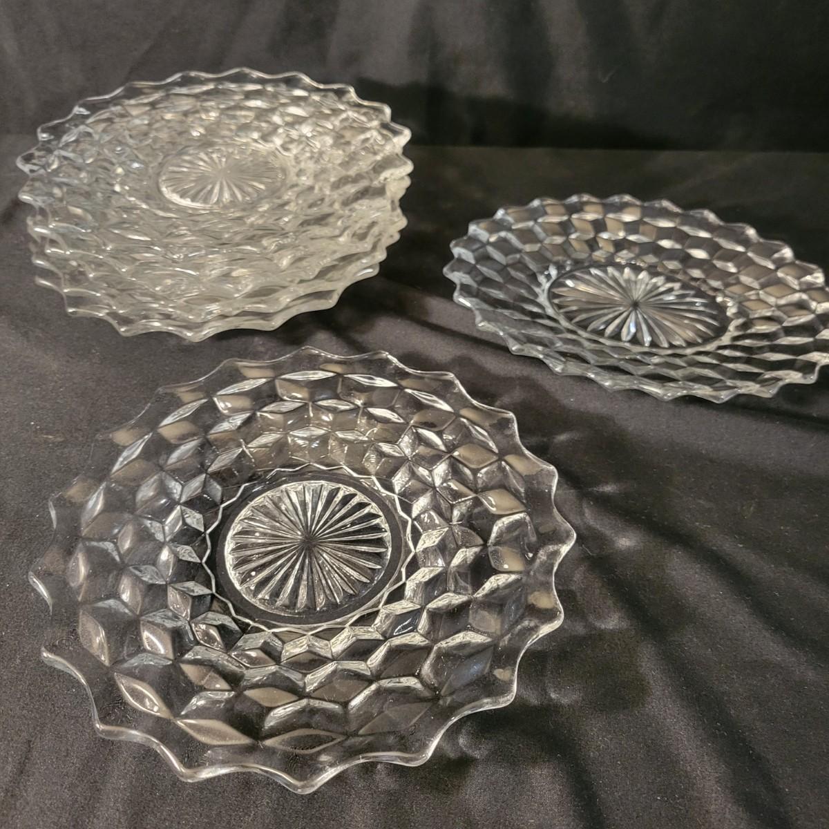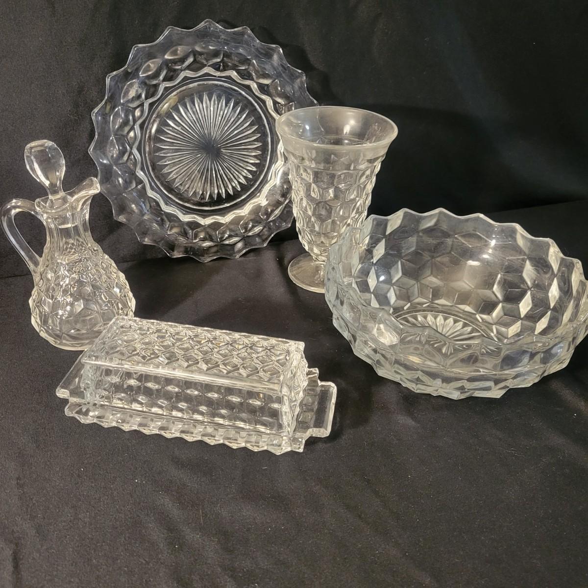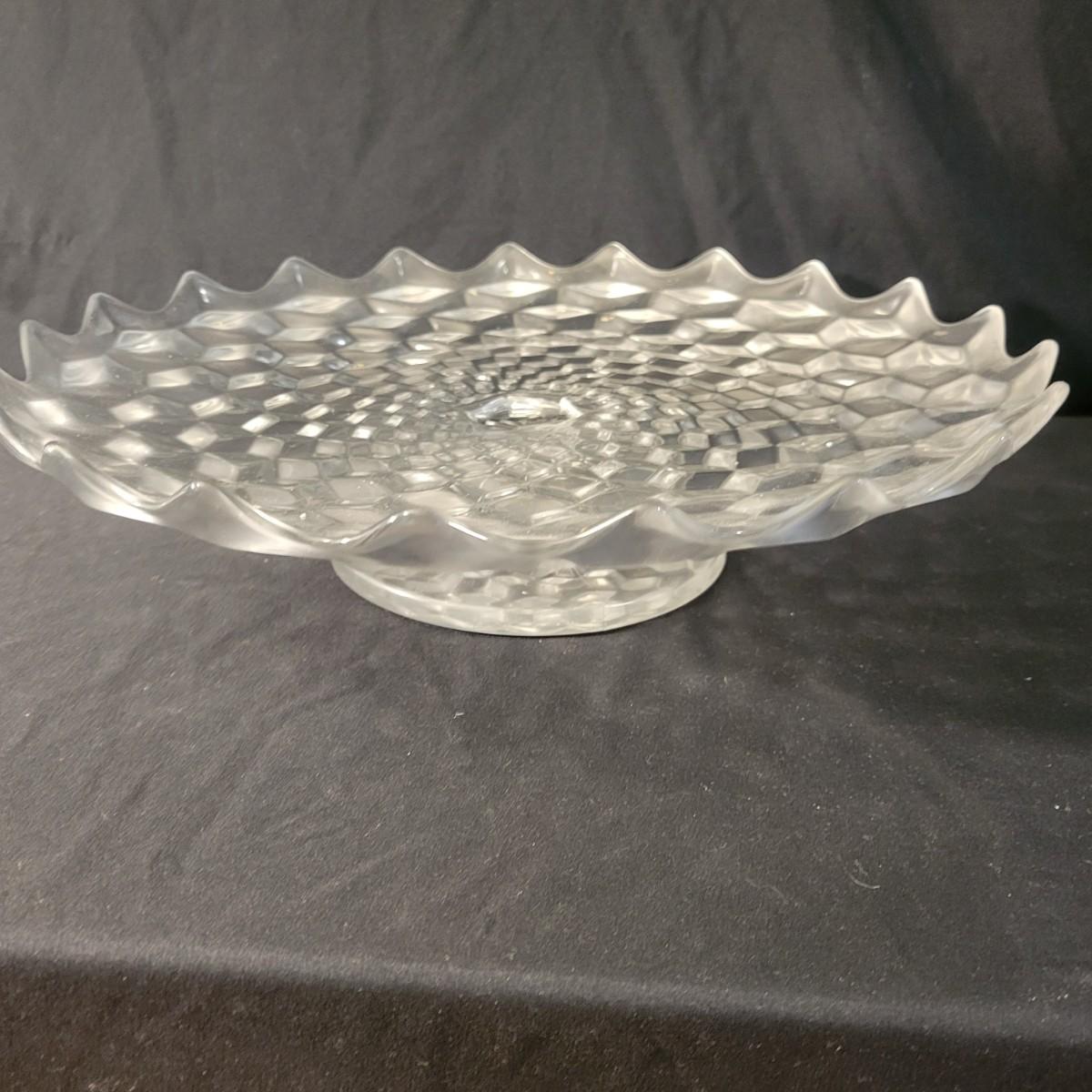 A large collection of Fostoria glass pieces in good condition with no notable damage. One piece does have a residue of some sort on it. This collection has glasses in multiple sizes, plates, pedestal platters and more. See attached pictures for entire inventory. Largest platter measures approximately 16.5" x 4" Local pickup only