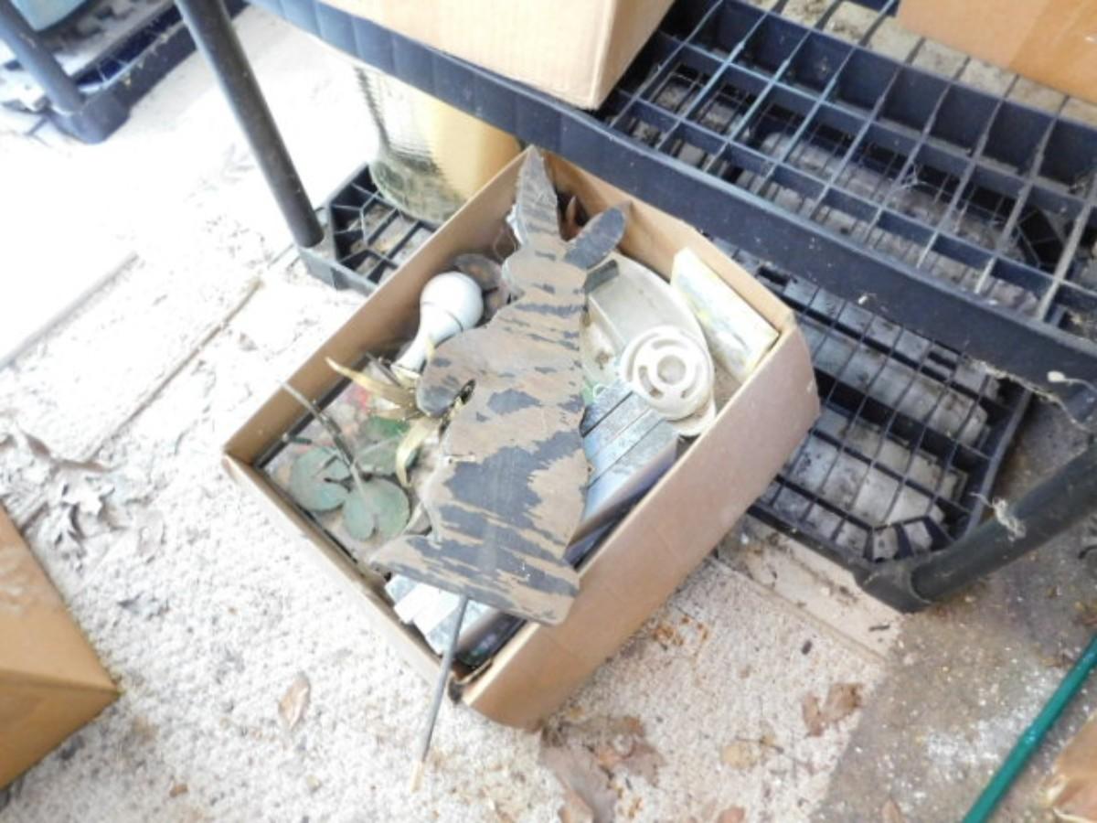 Large Collection of Garden and Outdoor Related Items and Two Shelves (Does not include ladder)