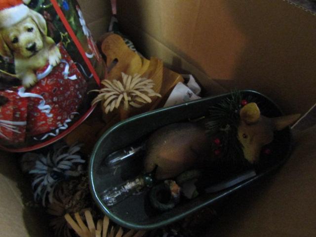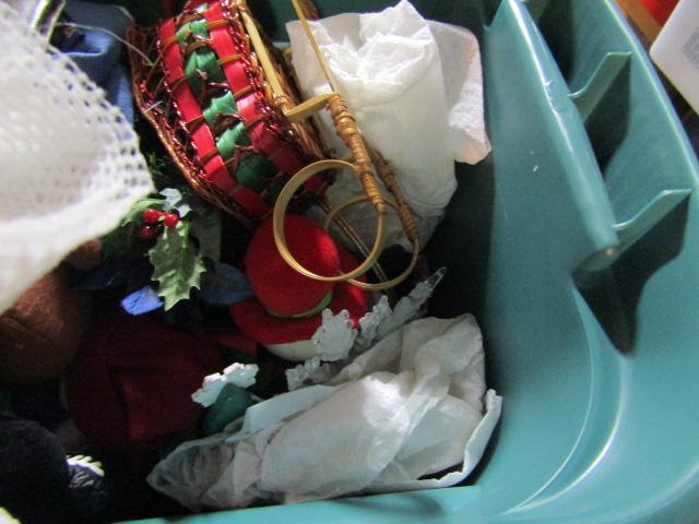 Nice Collection of Holiday Winter Decorations including Tree Ornaments, Ribbons, Bows, Table Top Items, Etc. see all of the pictures