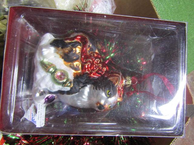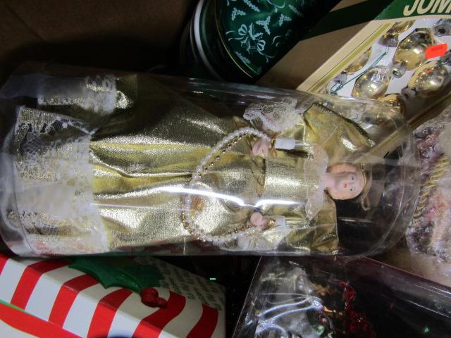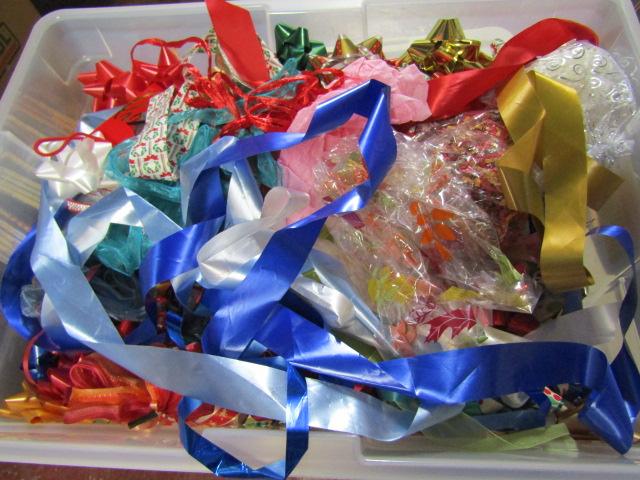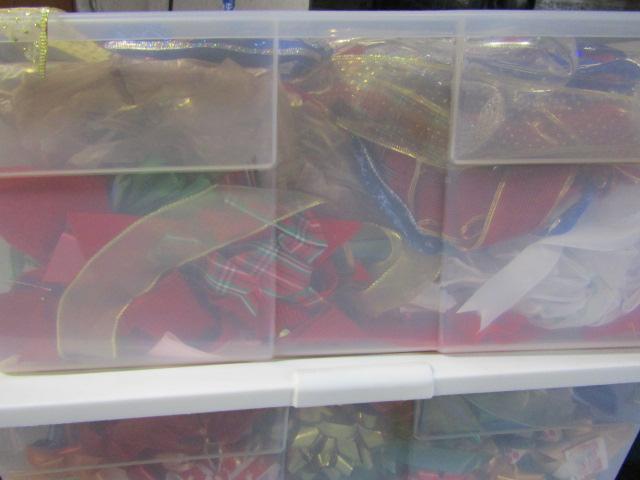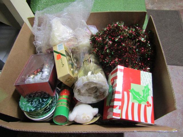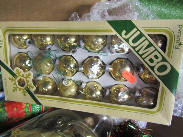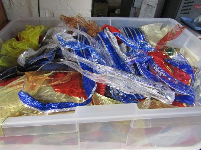 Large Collection of Holiday Christmas Decorations including Tree Ornaments, Ribbons, Bows, Table Top Items, Etc.