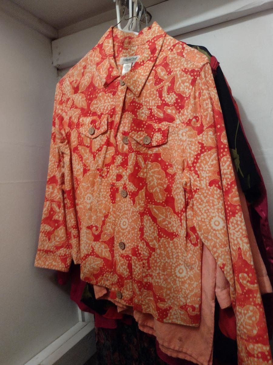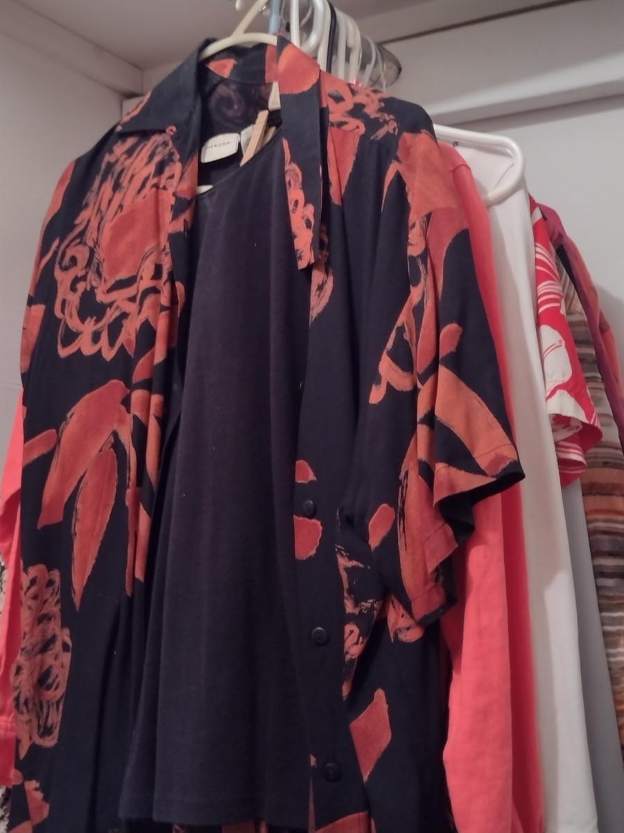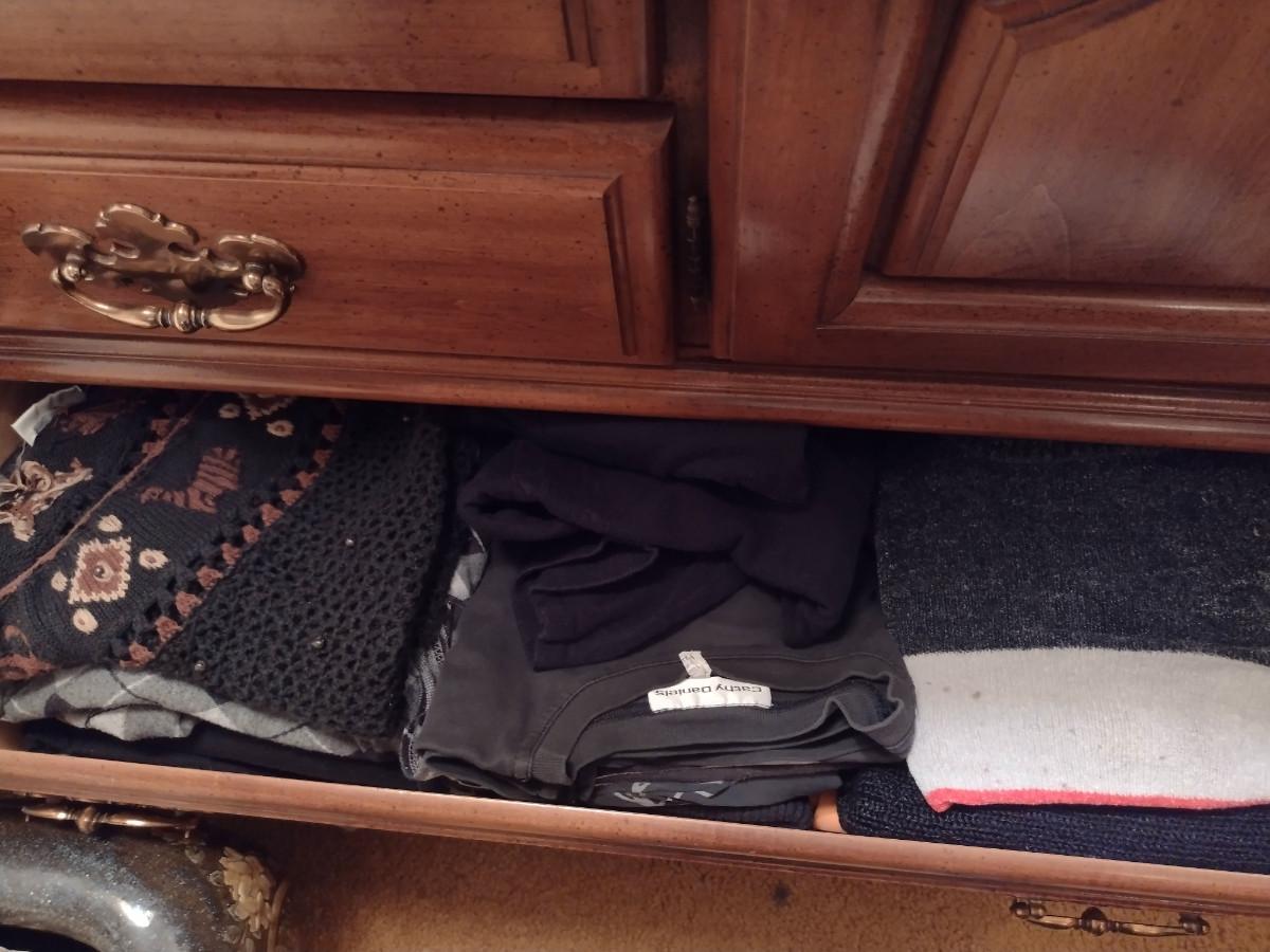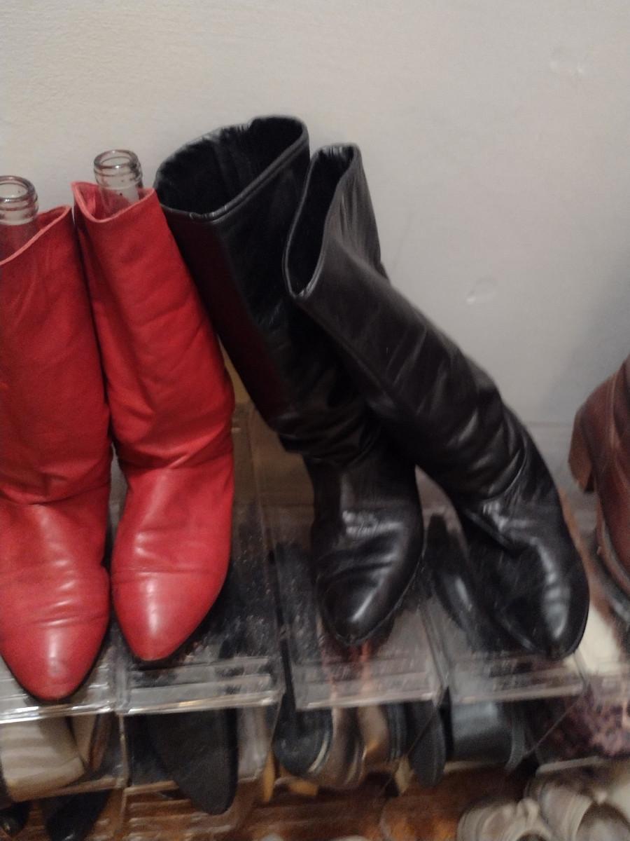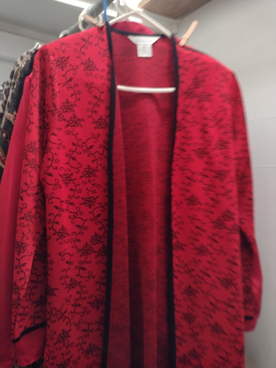 Large Collection of Ladies Clothing and Shoes. Please see all pictures for selection. Clothing sizes vary- medium to extra large. Shoes are approx size 8- all are in used condition- some are heavily used.