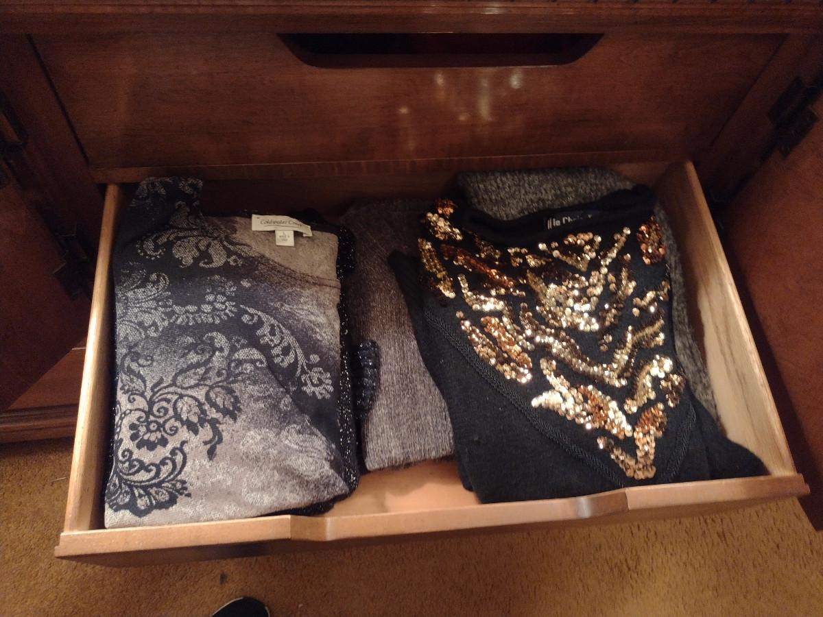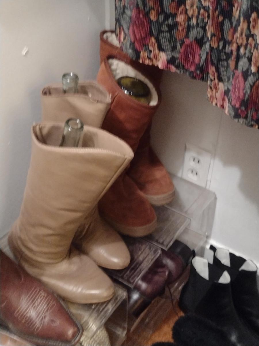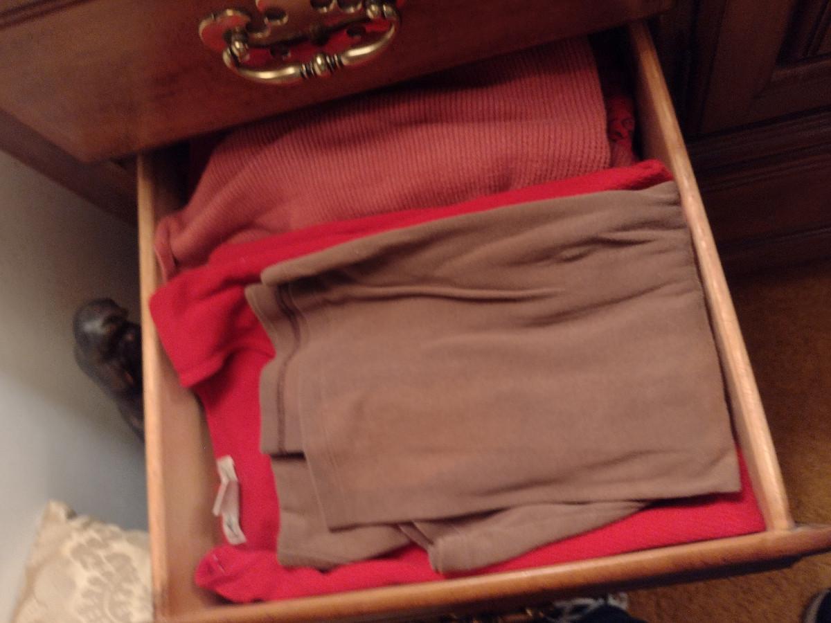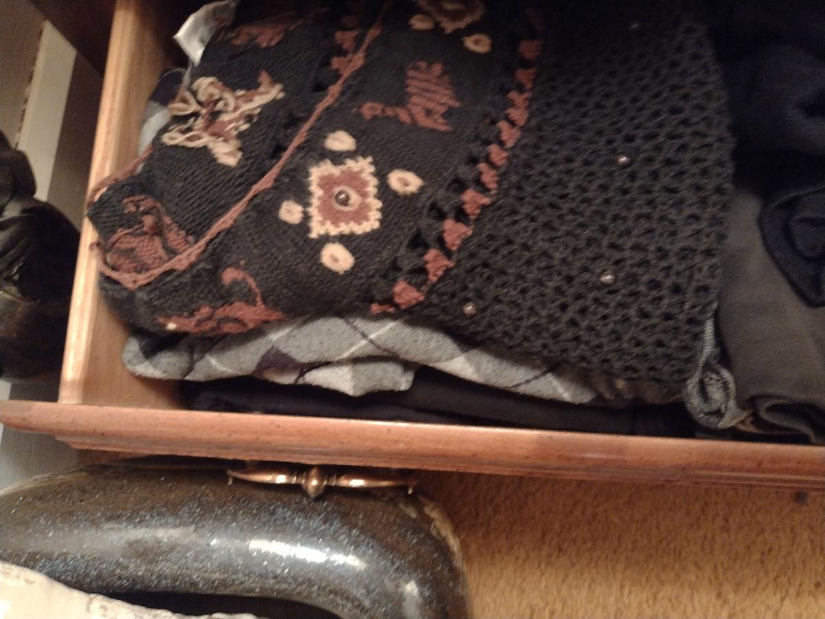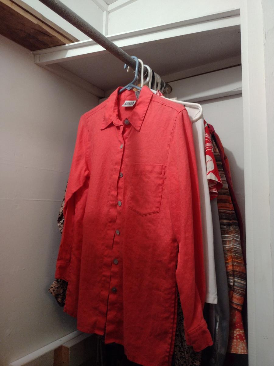 Large Collection of Ladies Clothing and Shoes. Please see all pictures for selection. Clothing sizes vary- medium to extra large. Shoes are approx size 8- all are in used condition- some are heavily used.