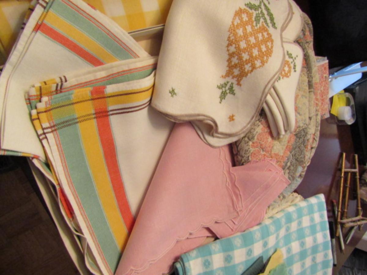 Large Collection of Linens- Table Cloths with Napkins and Placemats with Napkins (C). May be some areas of discoloration/spotting.
