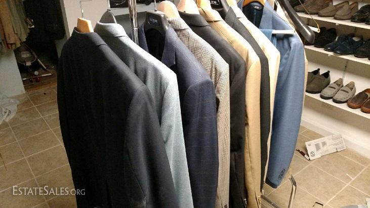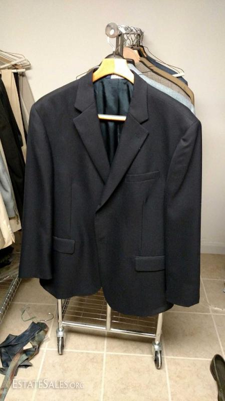 Entire rack of men's suits from L to 2X. Most are 2 piece. Rack not included in purchase. All clothes must go.