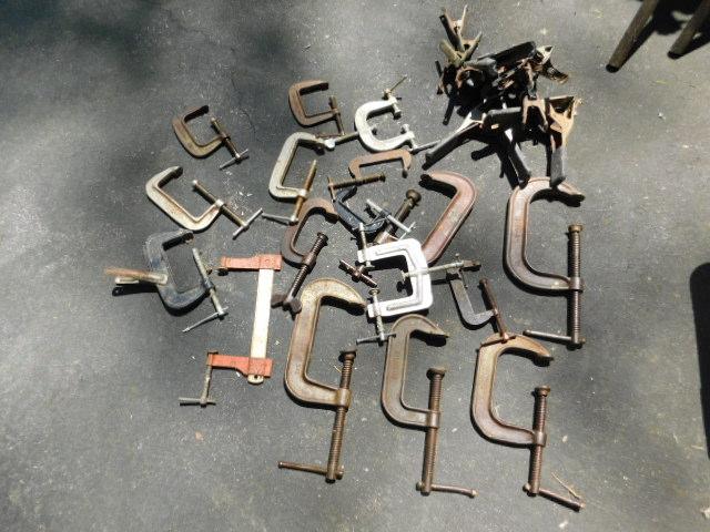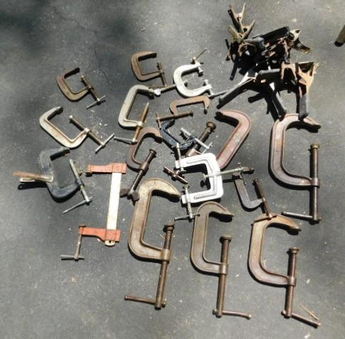 Large Collection of Metal C-Clamps and Wood Clamps (See All Pics)