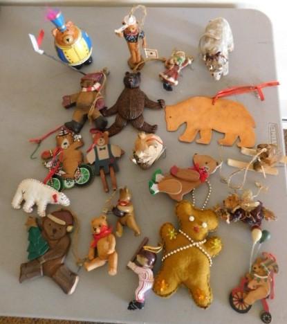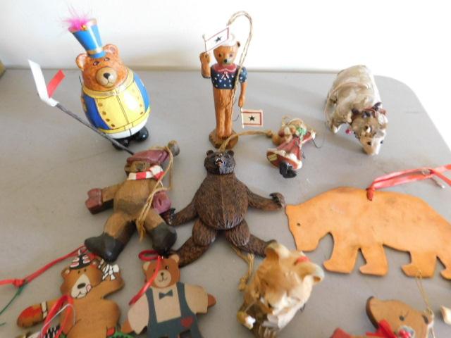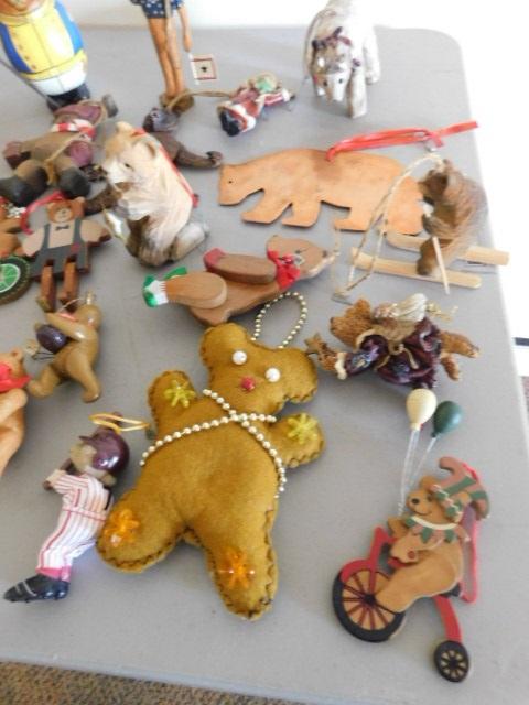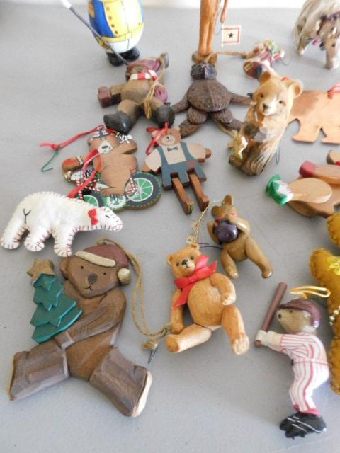 Large Collection of Over 60 Teddy Bear Christmas Ornaments Wood, Resin, Hand Crafted Etc.  (Sample of Lot)