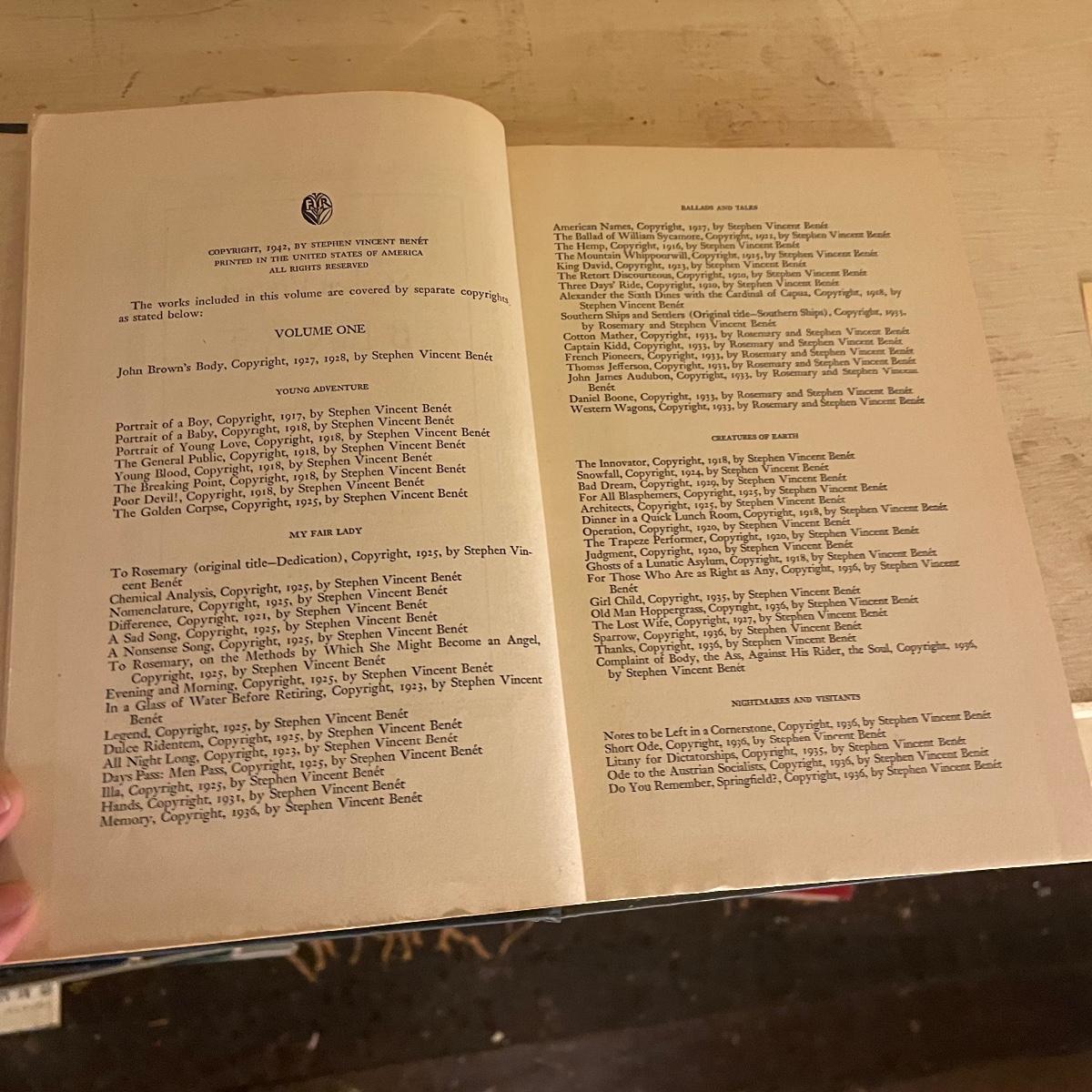 T.S Elliot and the two Stephen Vincent Benet are first edition books. In addition there is a large assortment of other poetry books to keep you occupied.
