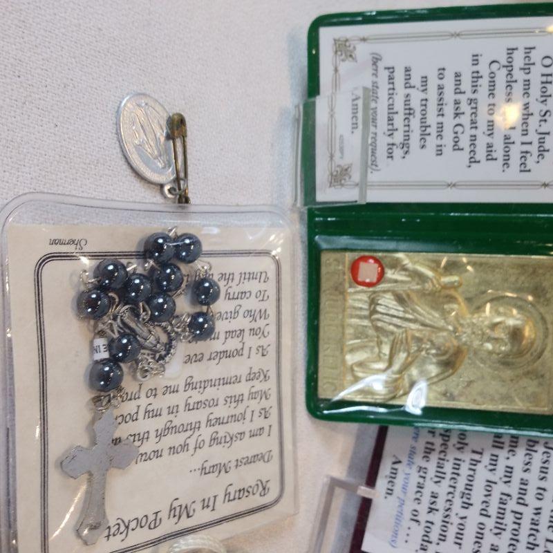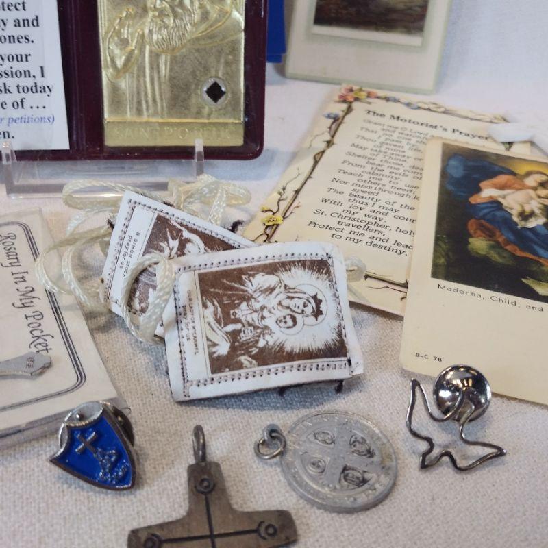 This offering is for a nice Collection of Religious Items. The collection includes holy cards, prayer cards, saints touched-to relics, metals and more.